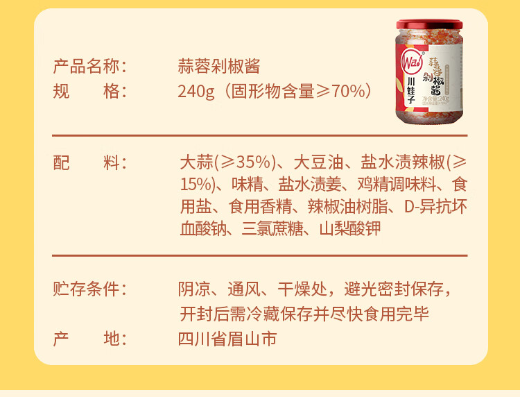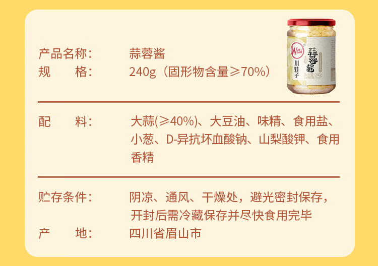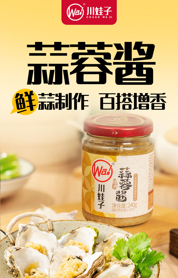 川娃子 蒜蓉酱 蒜泥酱 火锅烧烤蒜蓉小龙虾生蚝调味料 烤肉蘸料 240g