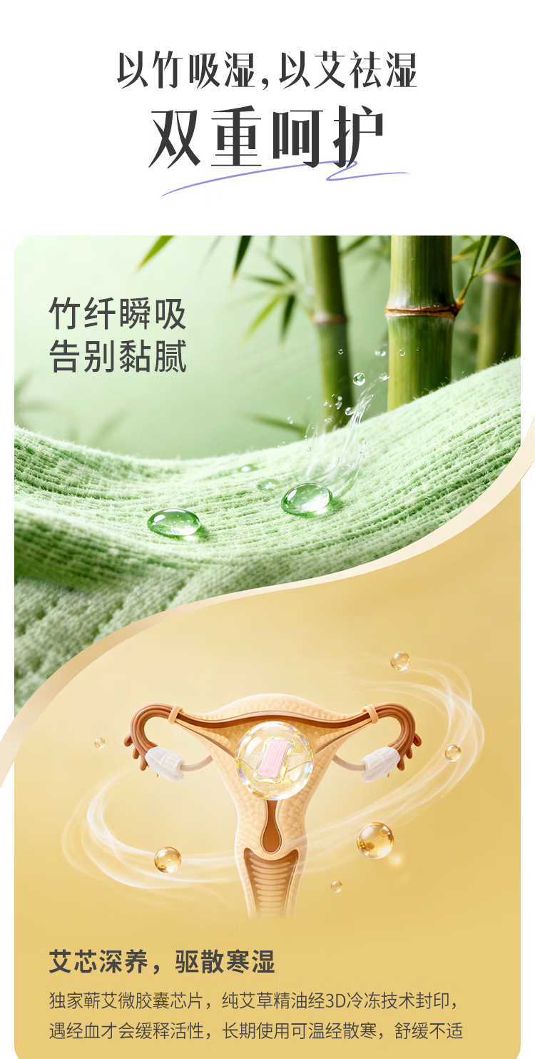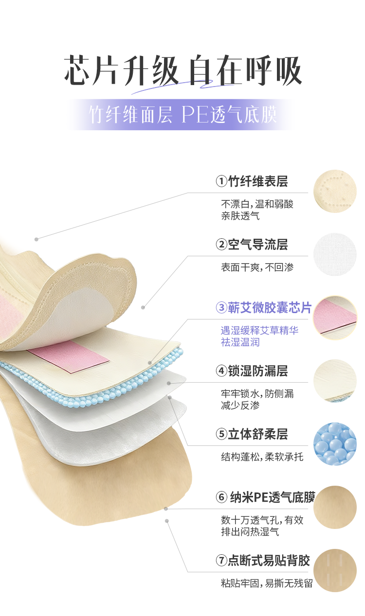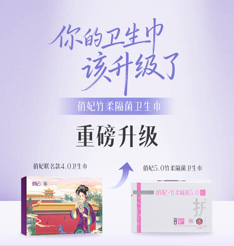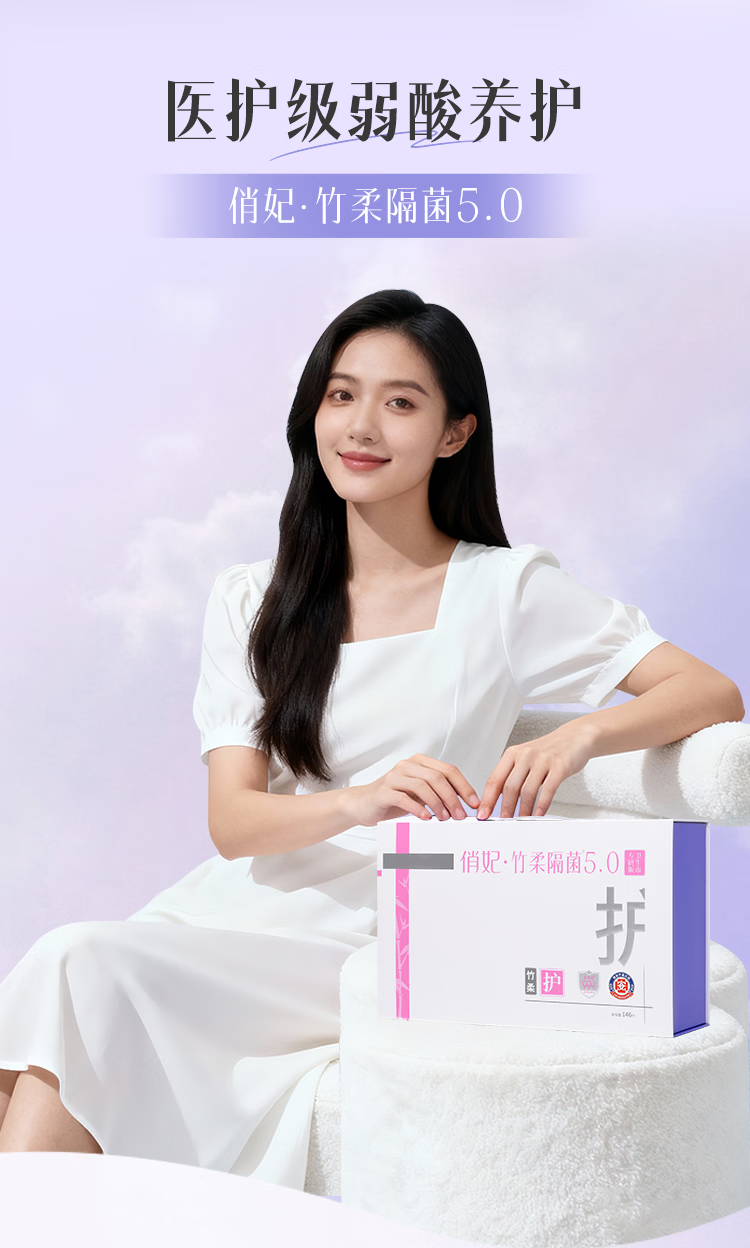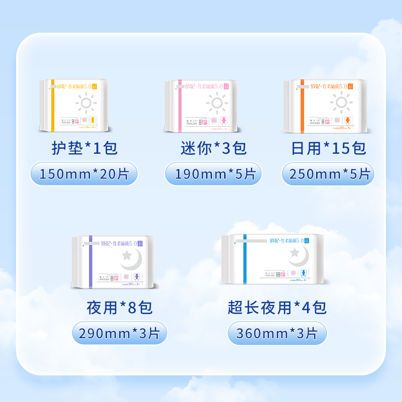 俏妃医护级超薄瞬吸透气竹纤维抑菌卫生巾 护垫155mm1包26片