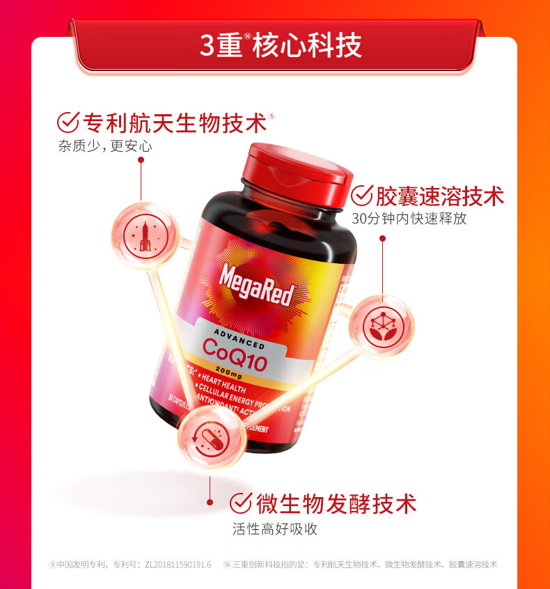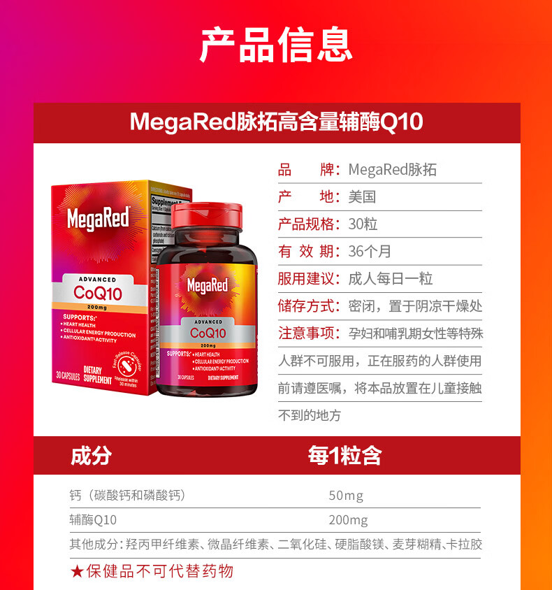 MegaRed脉拓辅酶q10胶囊 美国原装进口心脏coq10 高含量200mg 【尝鲜装】 30粒*1瓶