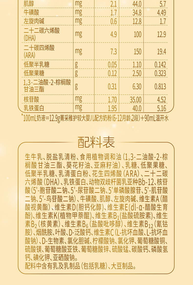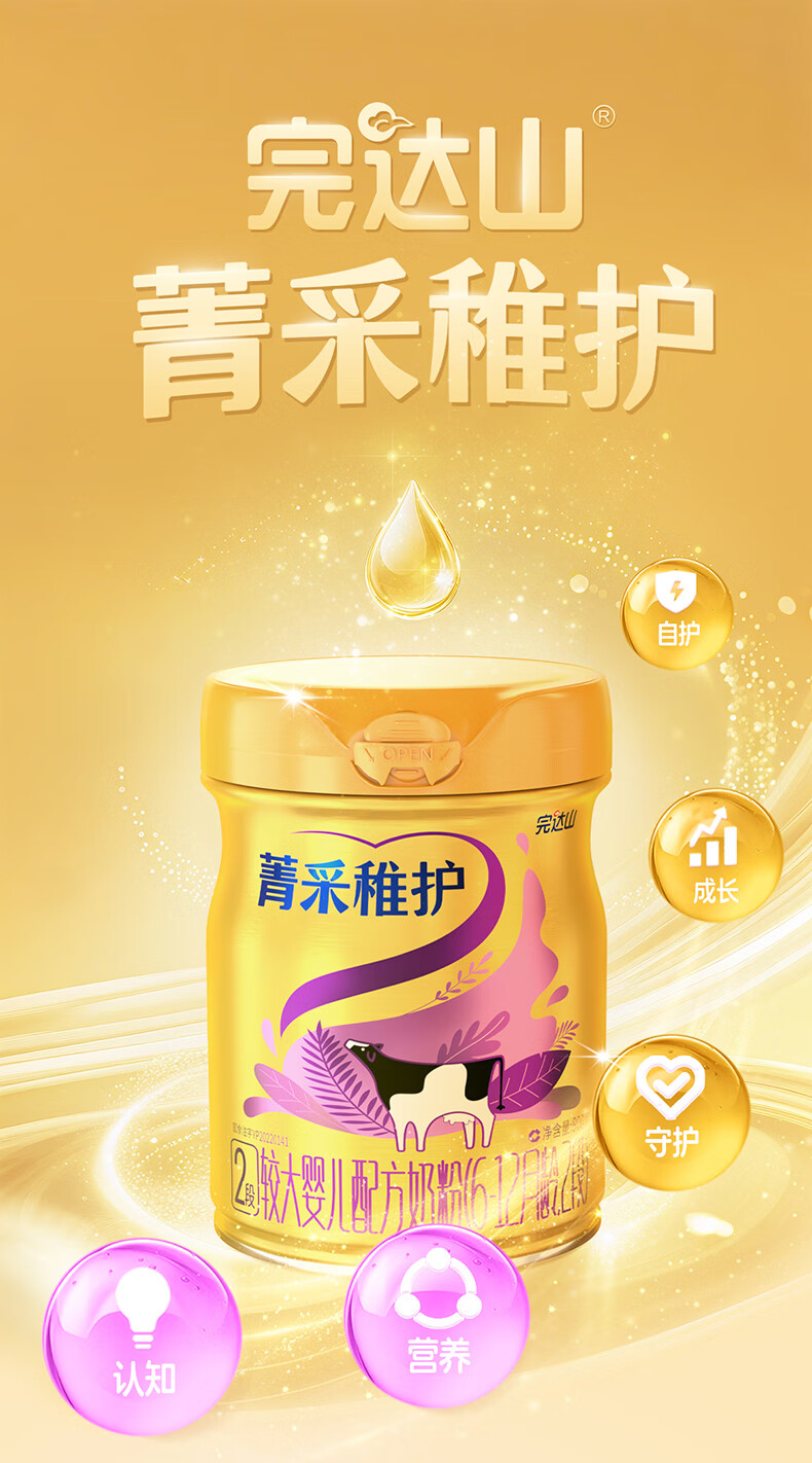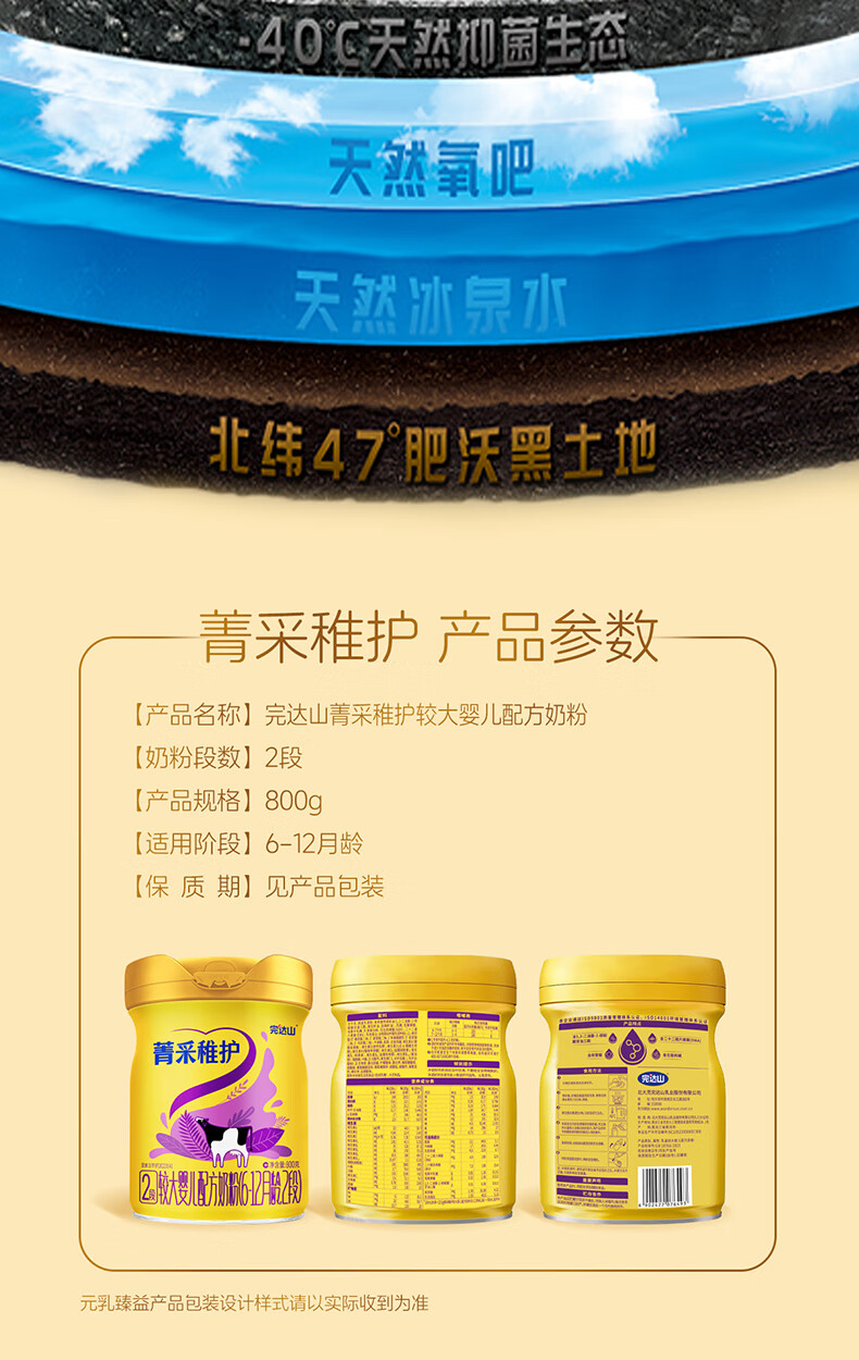 完达山菁采稚护较大婴儿配方奶粉2段800g(6-12个月)2.5倍OPO藻油DHA