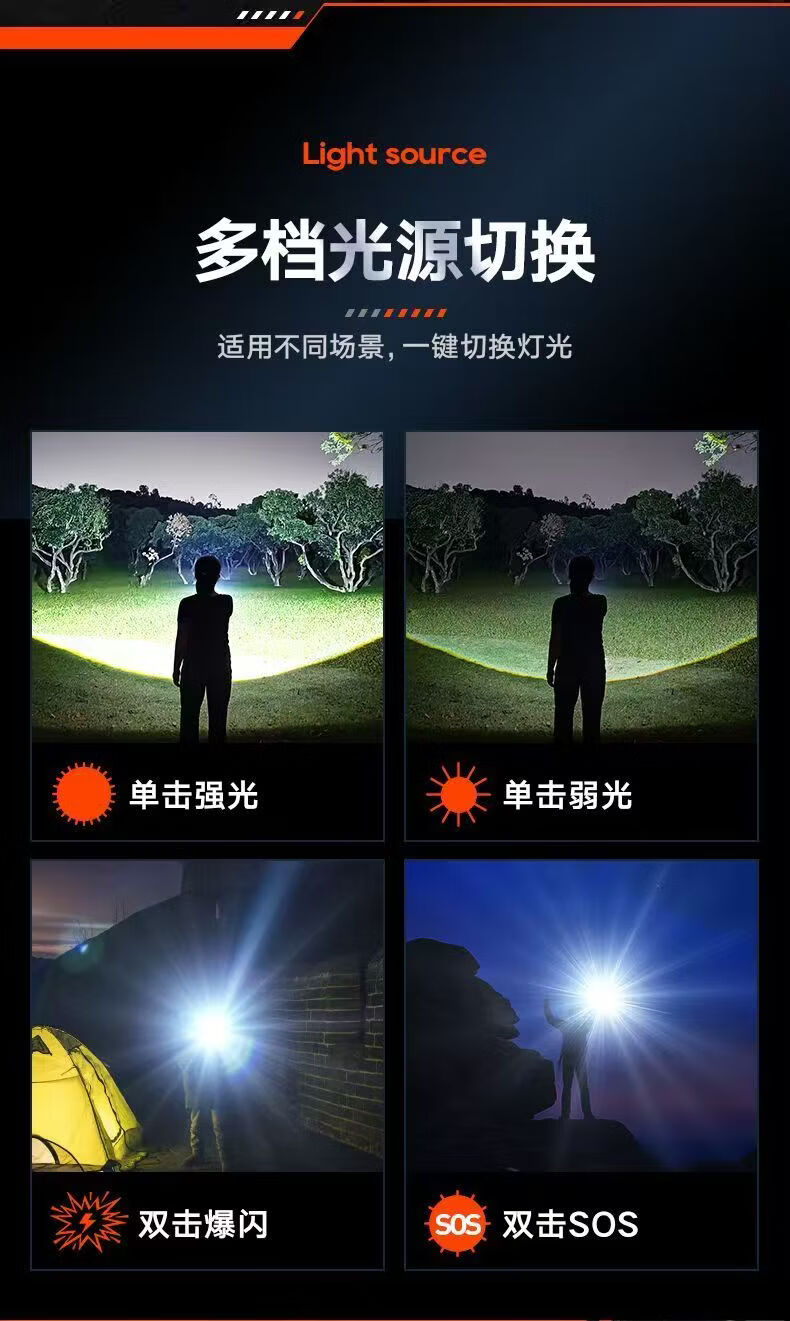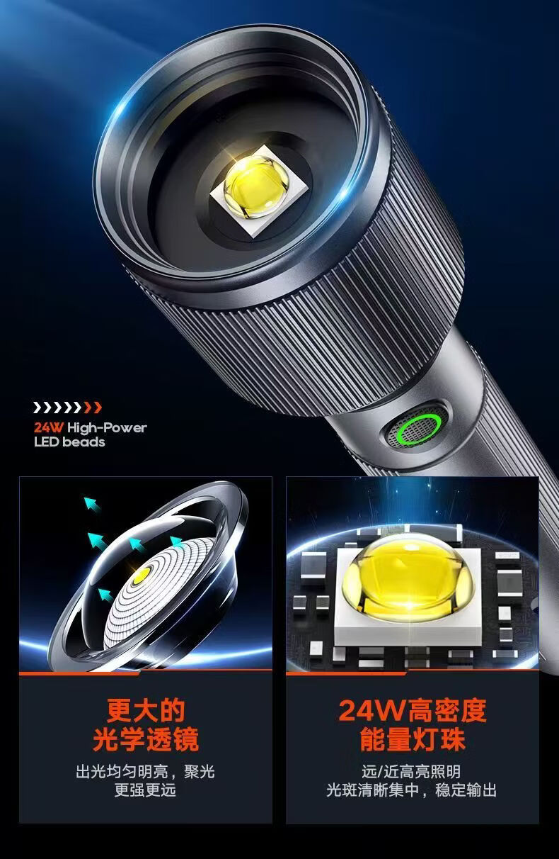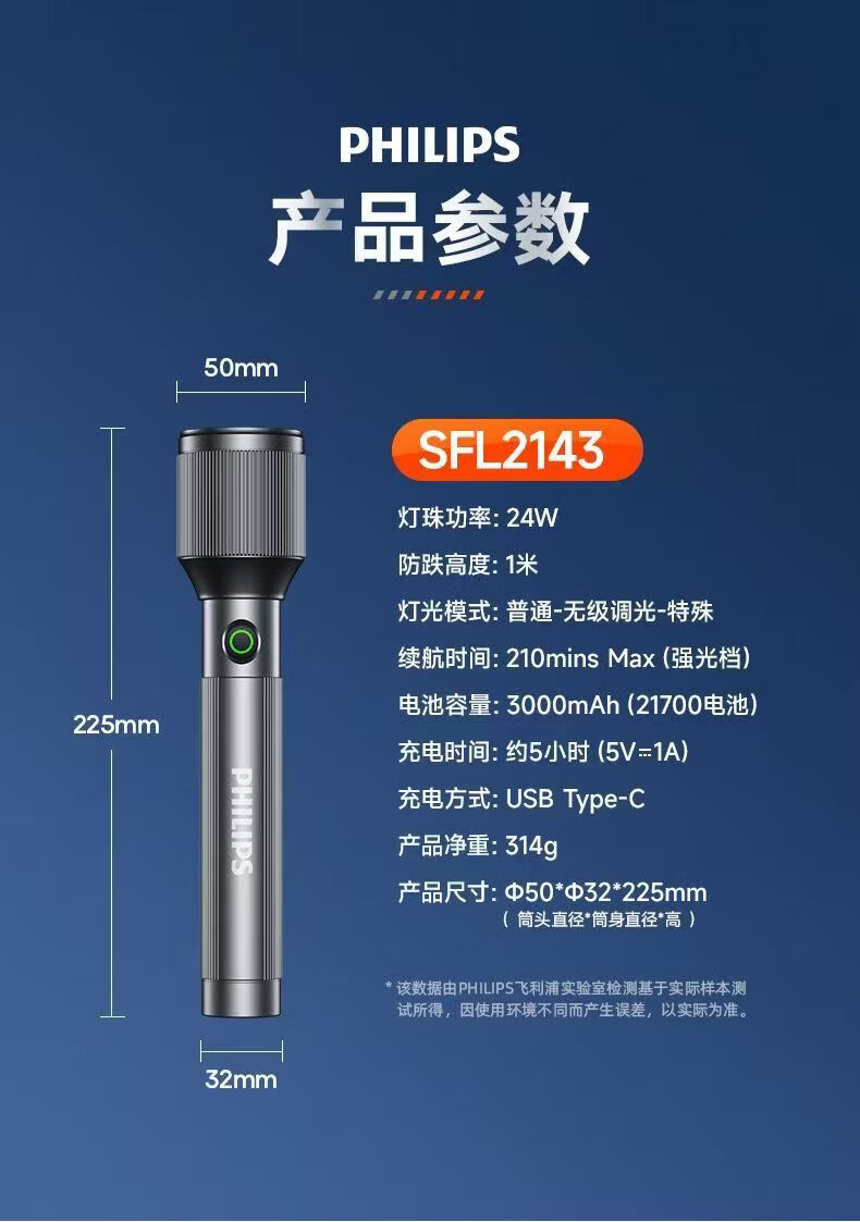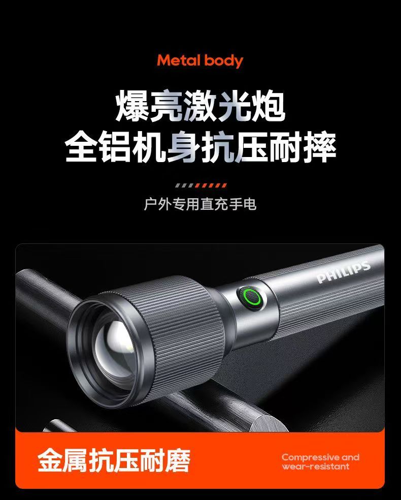 飞利浦(PHILIPS)强光手电筒可变焦远射超亮长续航户外大功率露营可充电便携SFL2143 24W/3000毫安/变焦/SFL2143