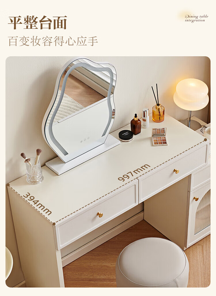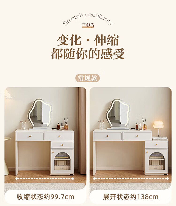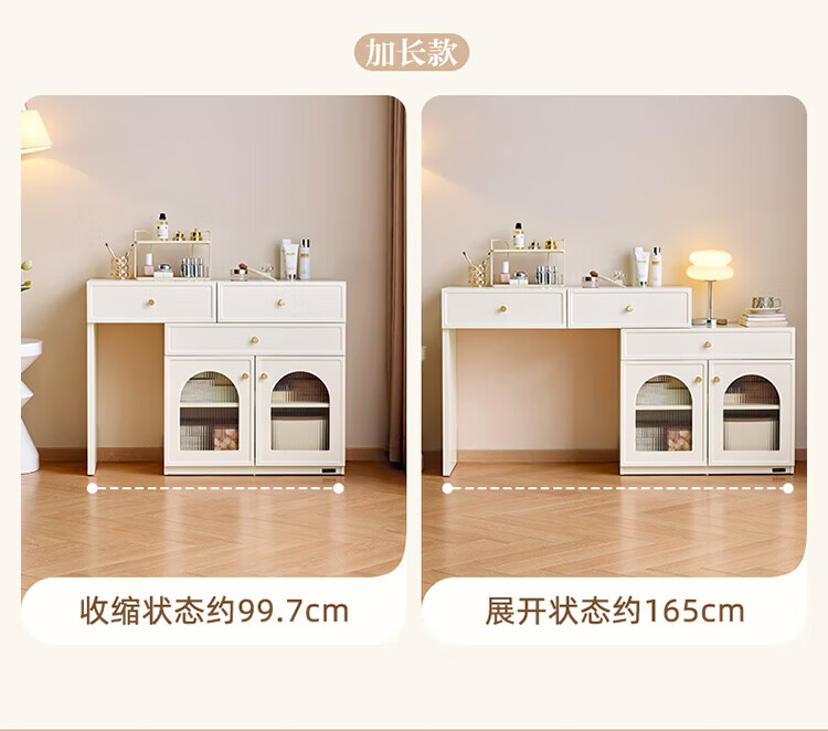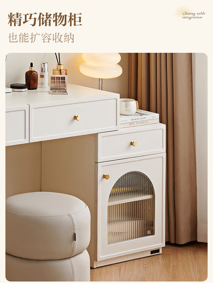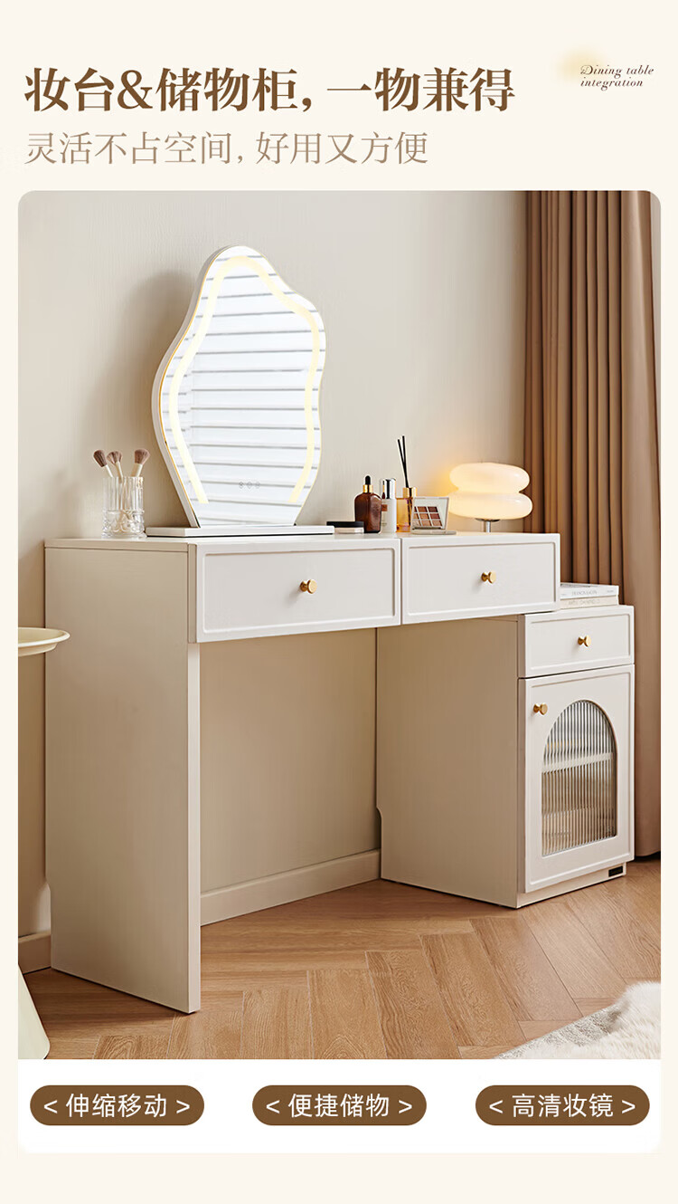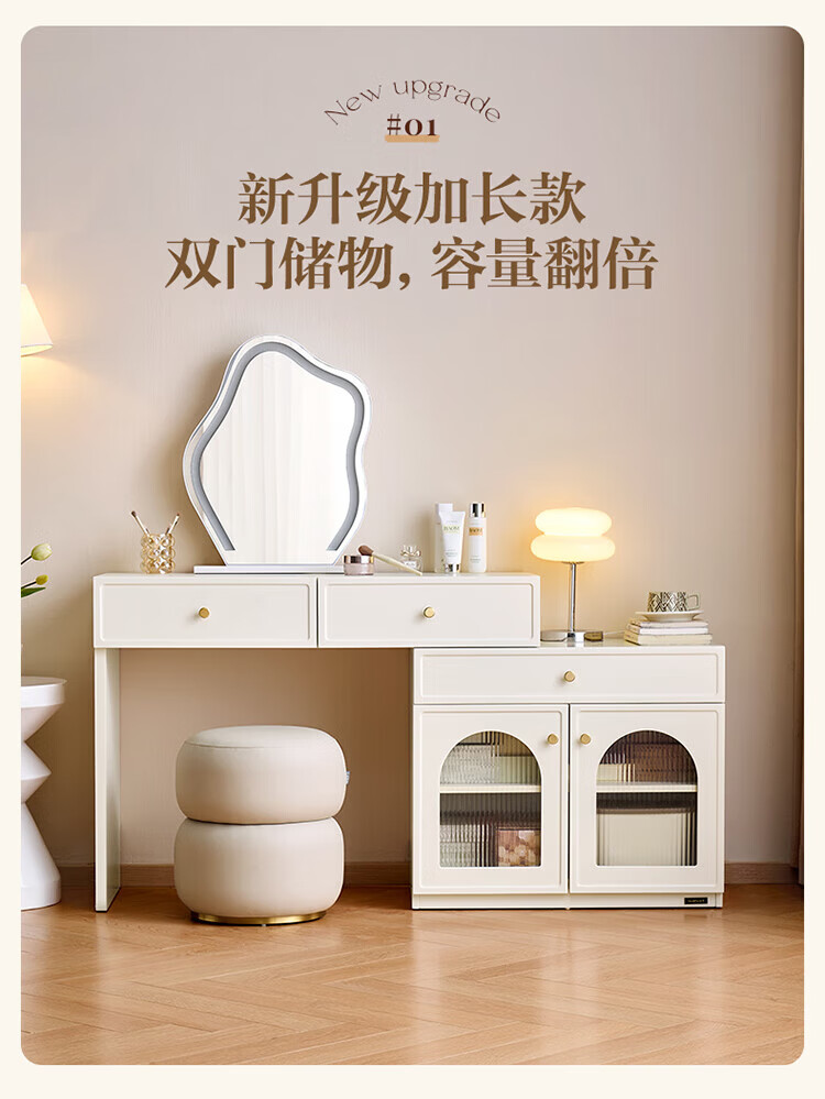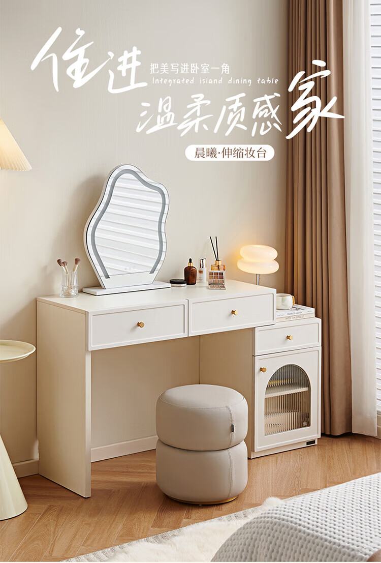 全友家居奶油风晨曦伸缩梳妆台一体卧室化妆桌轻奢收纳储物柜 【慕斯白 | 常规款】妆台(不含妆镜、妆凳) 伸缩移动+平整台面+台下双抽