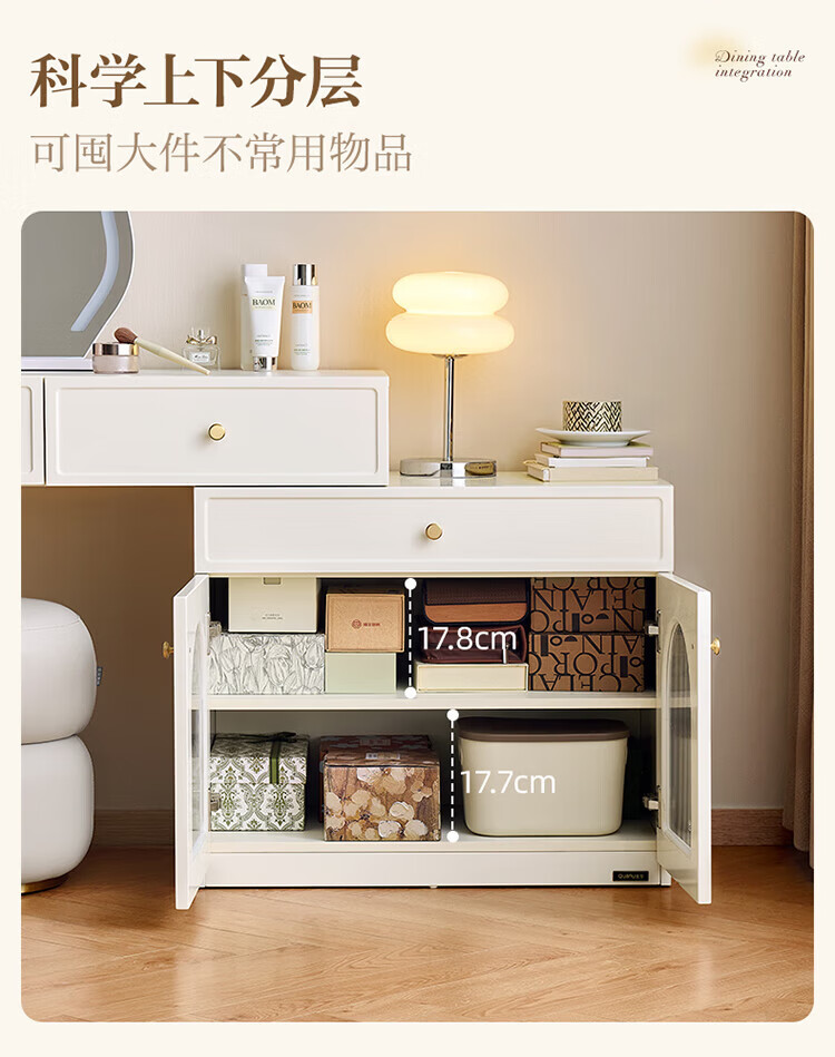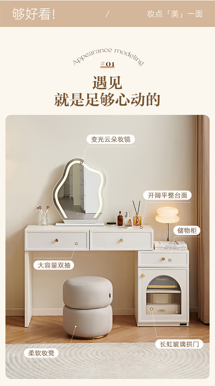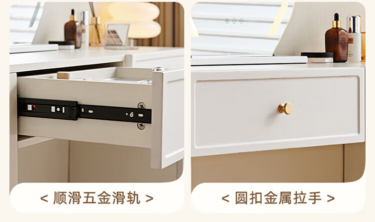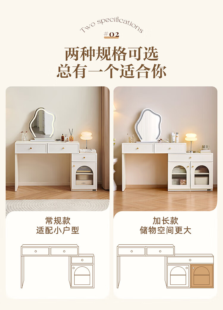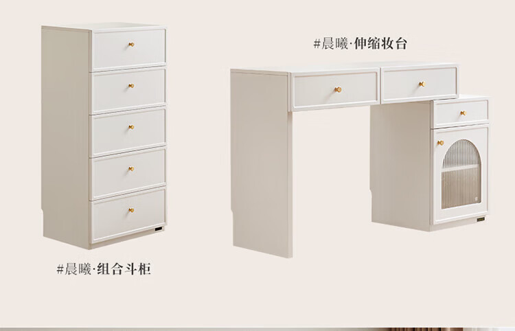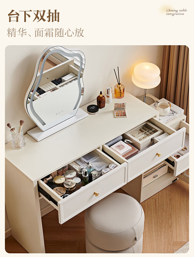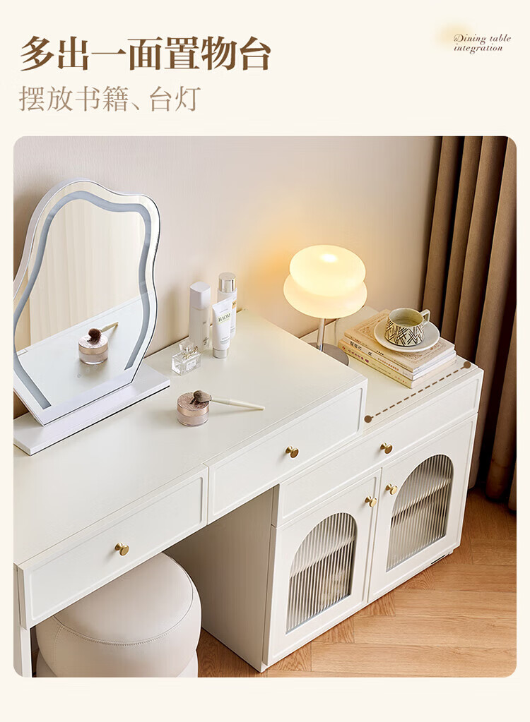 全友家居奶油风晨曦伸缩梳妆台一体卧室化妆桌轻奢收纳储物柜 【慕斯白 | 常规款】妆台(不含妆镜、妆凳) 伸缩移动+平整台面+台下双抽