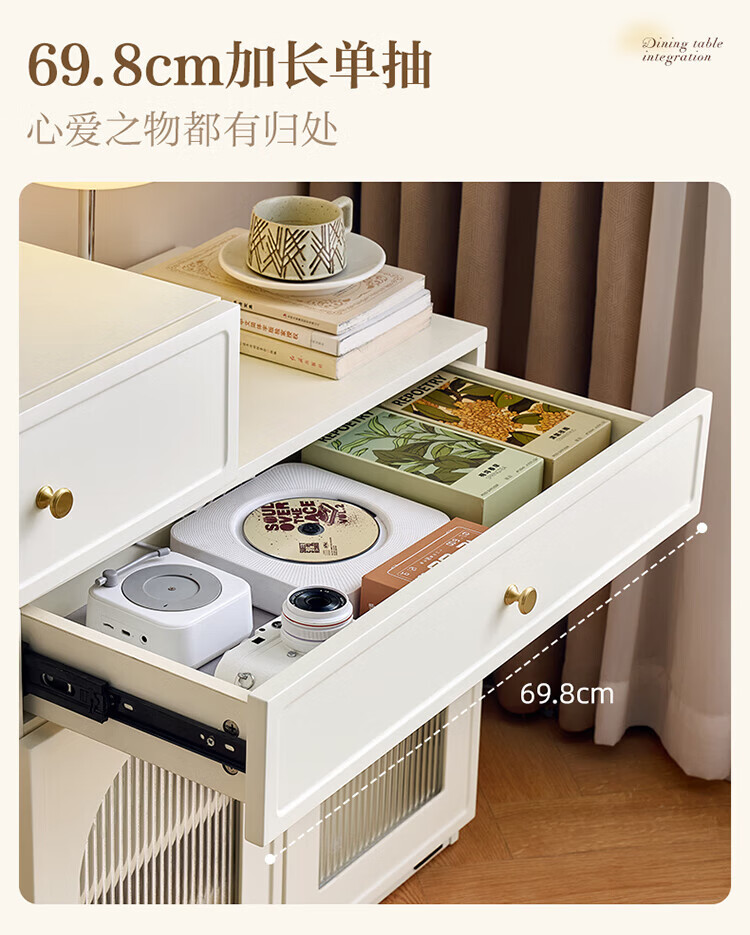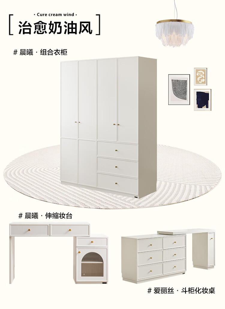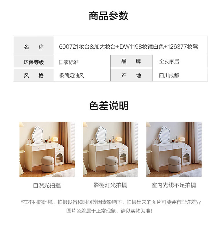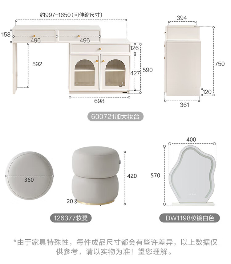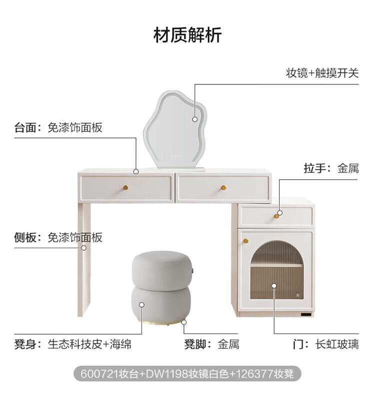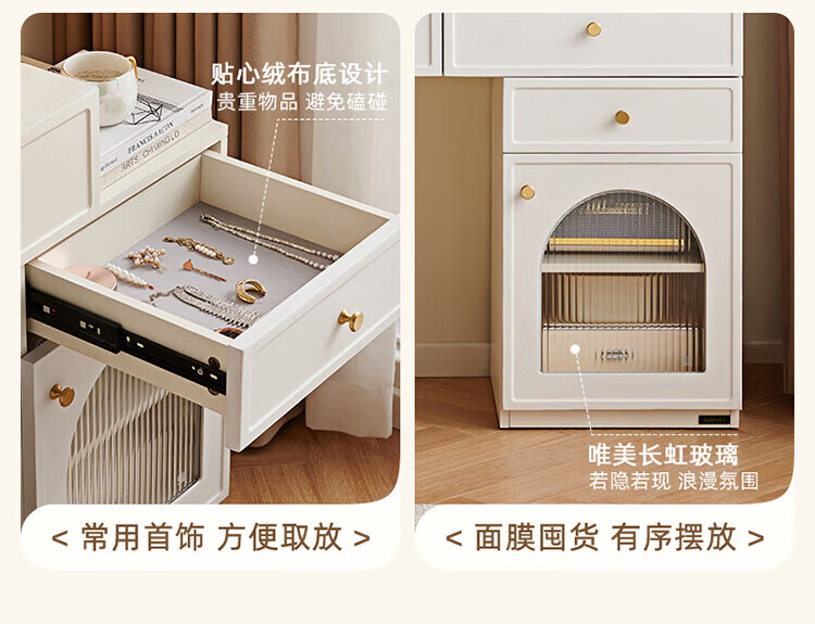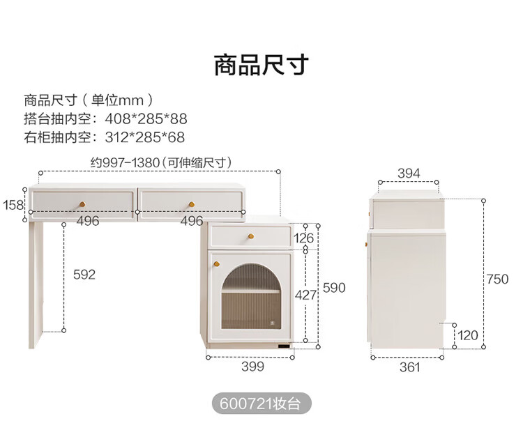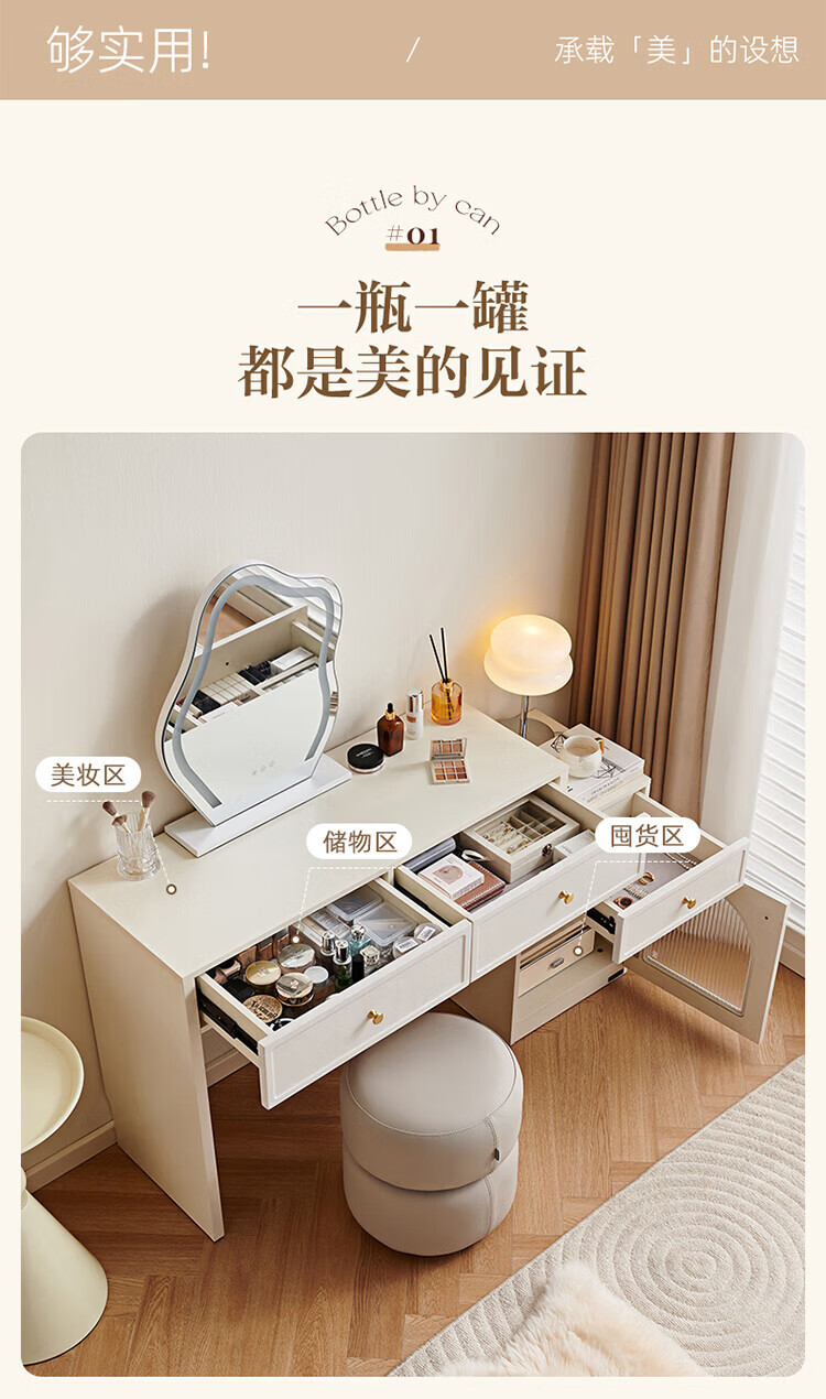 全友家居奶油风晨曦伸缩梳妆台一体卧室化妆桌轻奢收纳储物柜 【慕斯白 | 常规款】妆台(不含妆镜、妆凳) 伸缩移动+平整台面+台下双抽