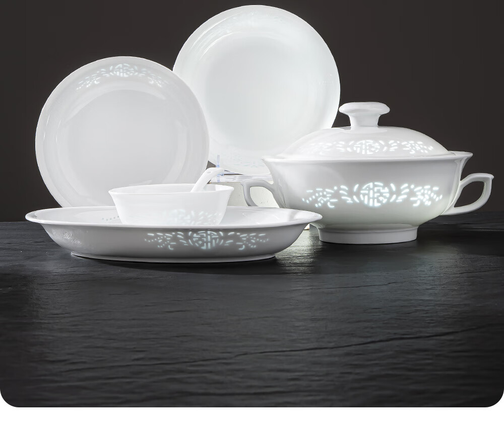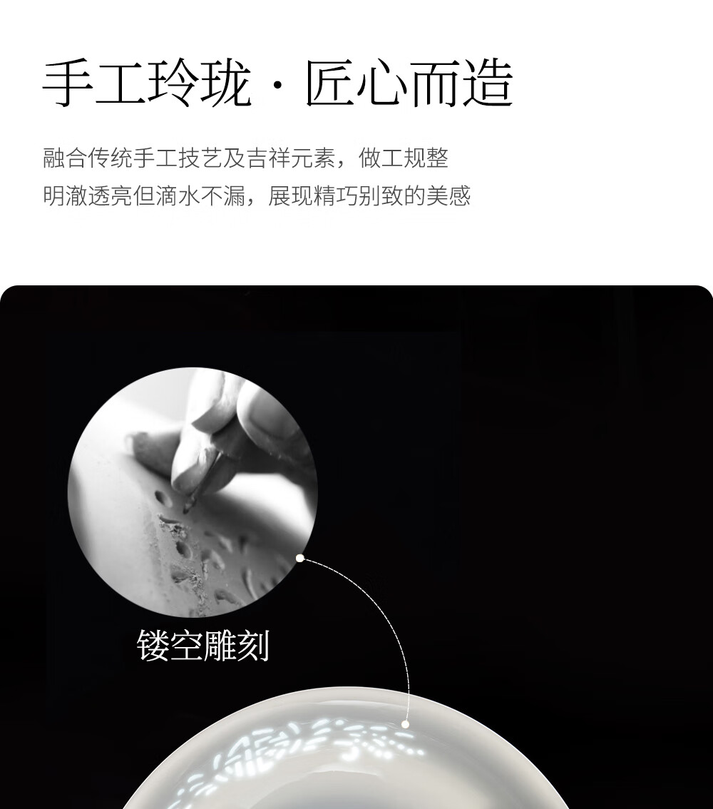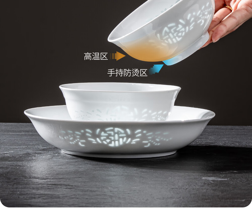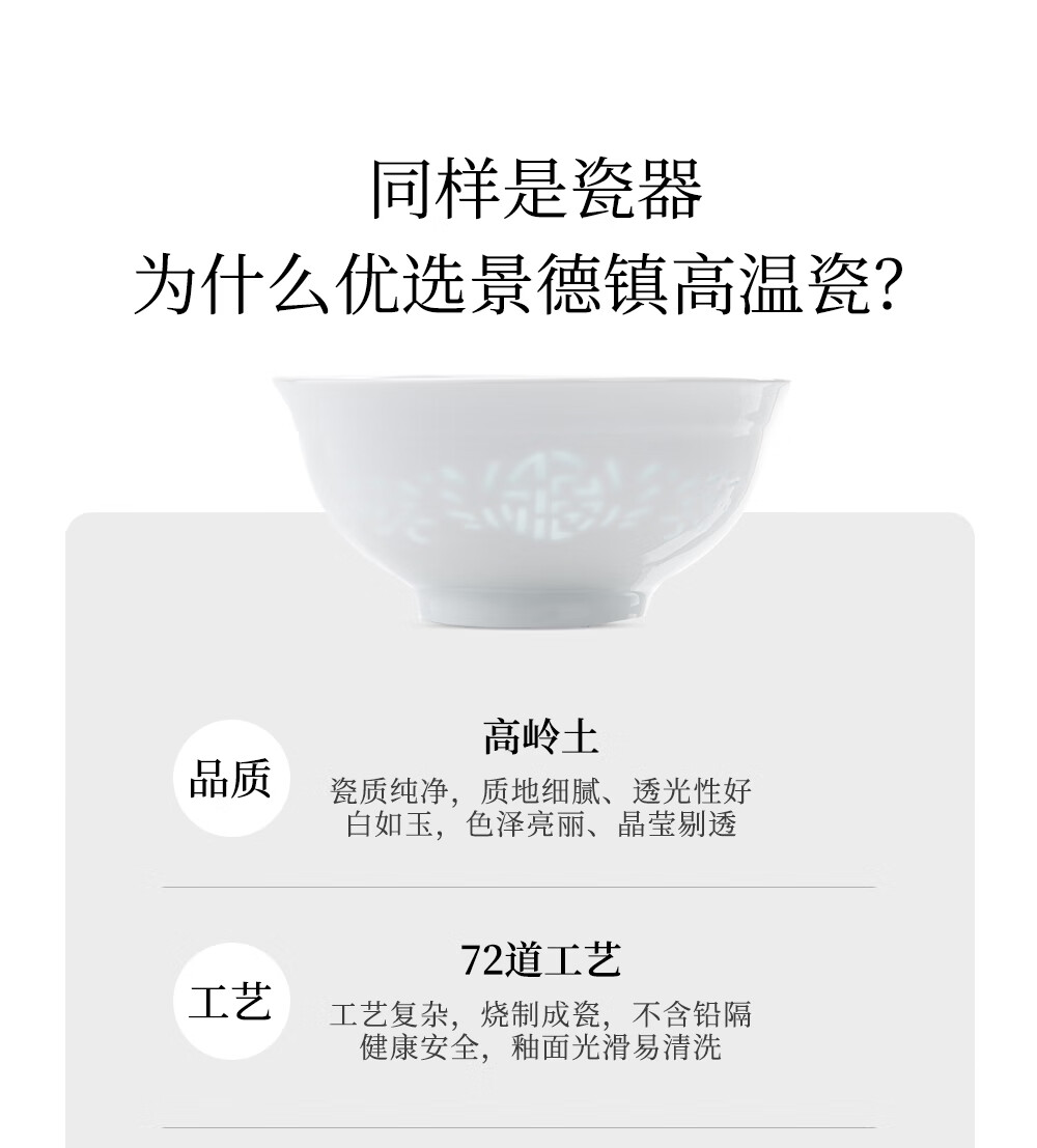 韵之和陶瓷米饭碗家用景德镇玲珑瓷碗碟盘个人专用高颜值陶瓷碗筷餐具 玲珑福.4.75英寸饭碗