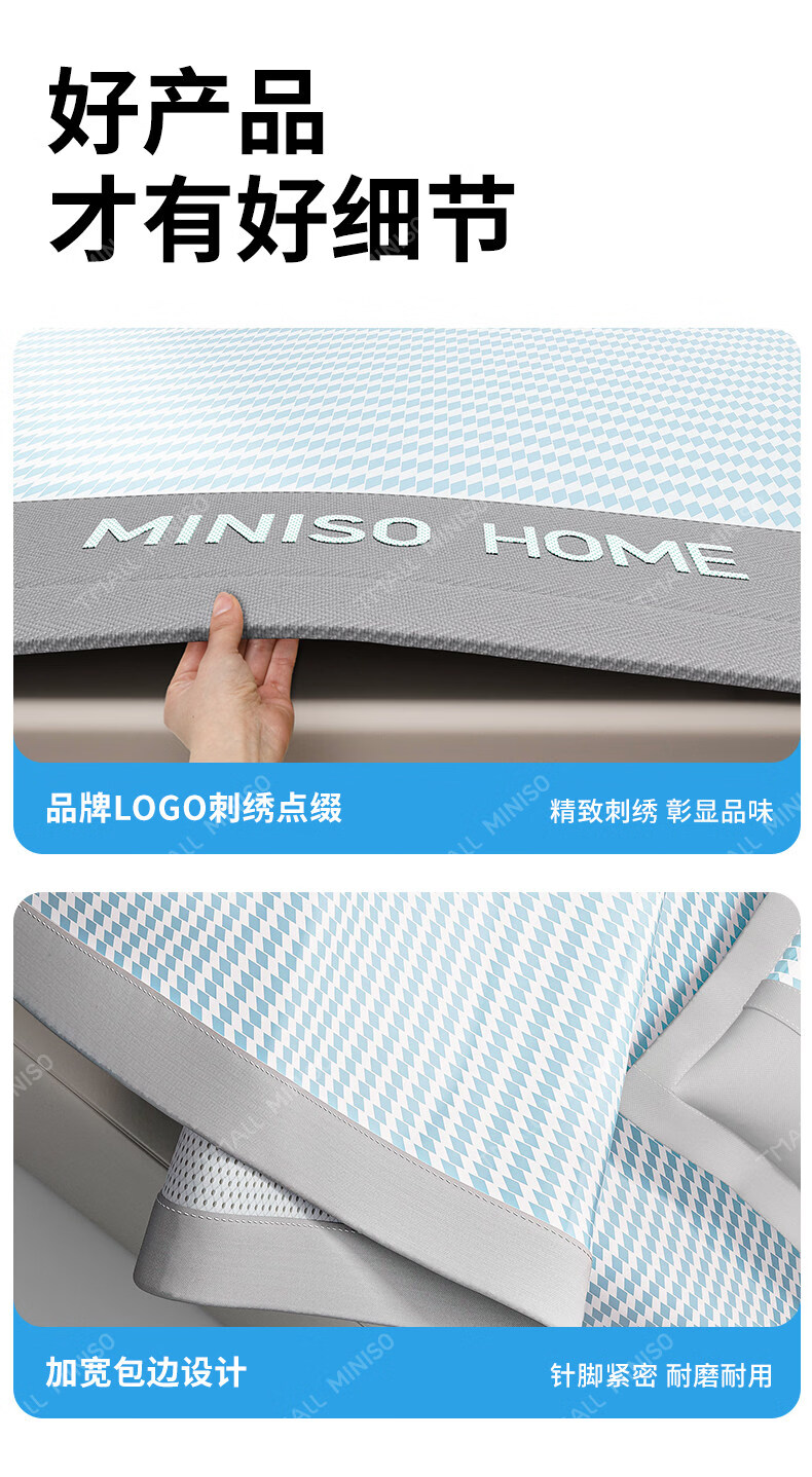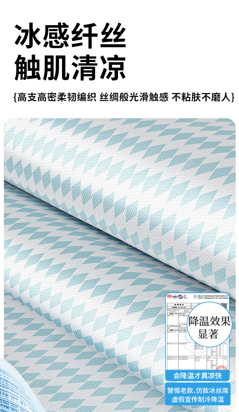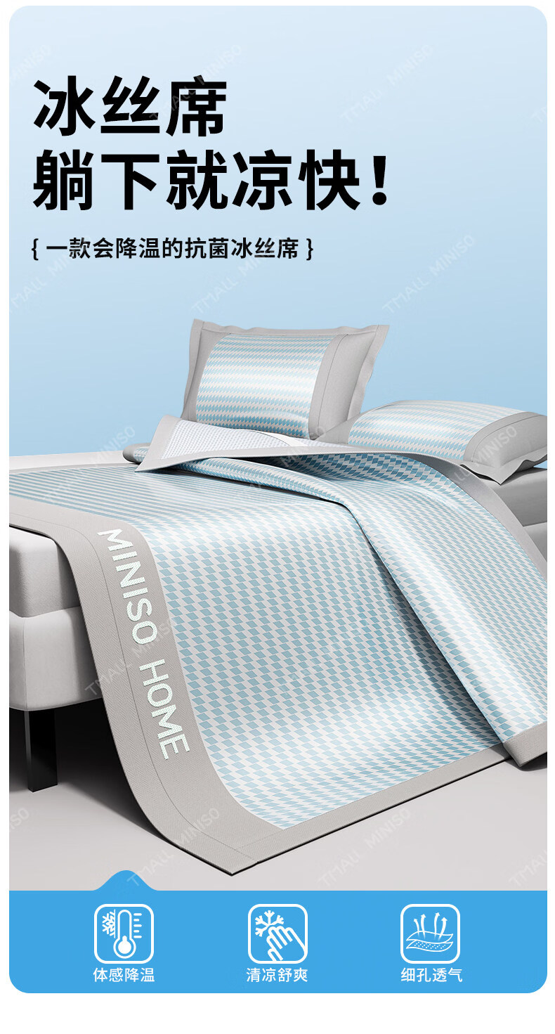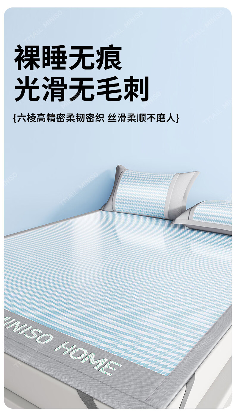 名创优品(MINISO)冰丝凉席1.8米x2米 学生宿舍单人可折叠席子夏天床凉垫软垫 菱格床席款-蓝色 90cm*200cm