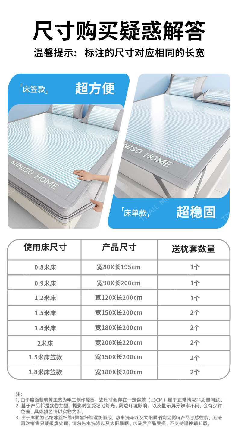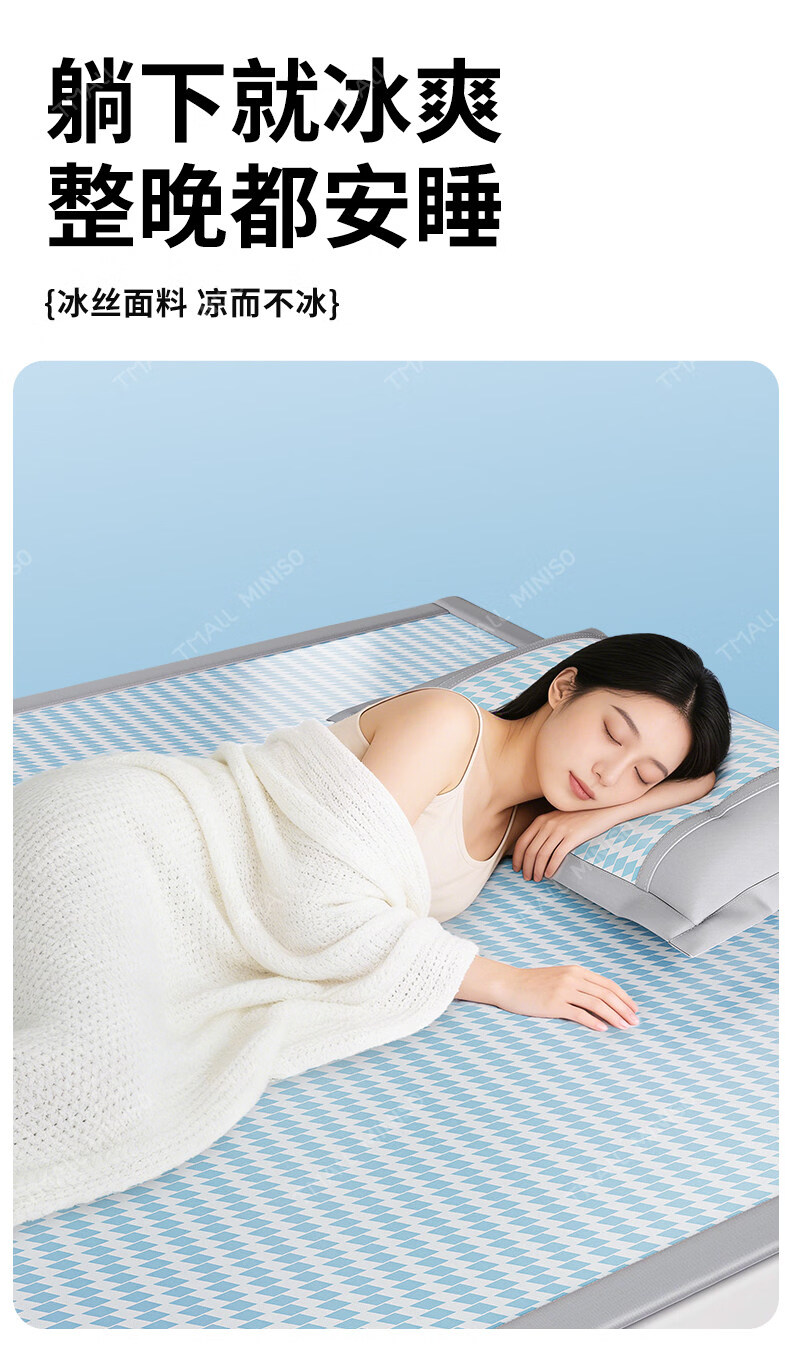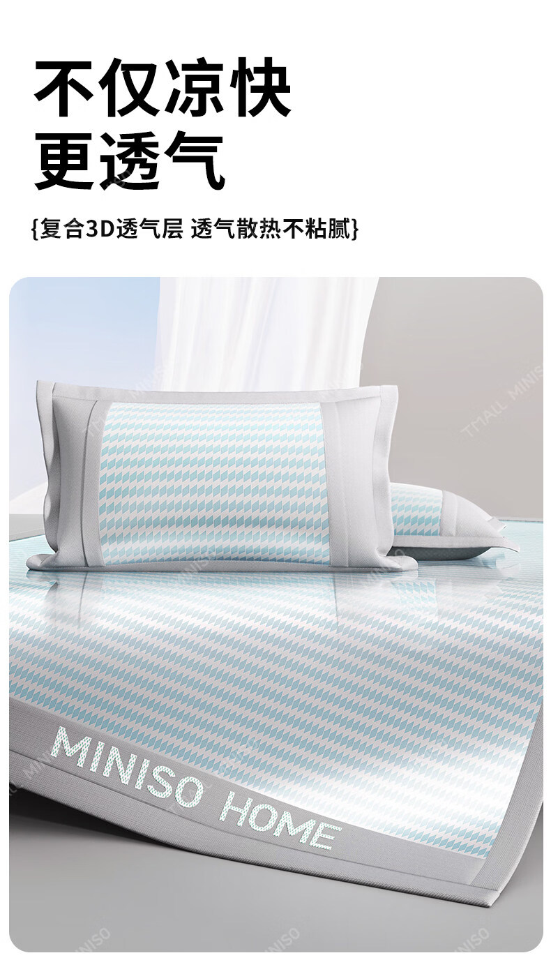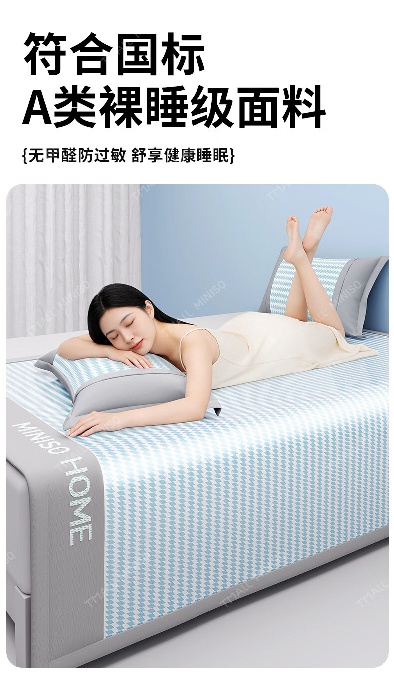 名创优品(MINISO)冰丝凉席1.8米x2米 学生宿舍单人可折叠席子夏天床凉垫软垫 菱格床席款-蓝色 90cm*200cm