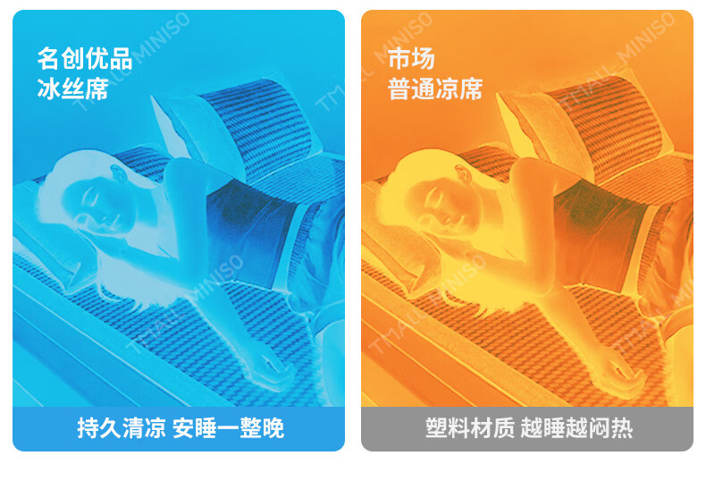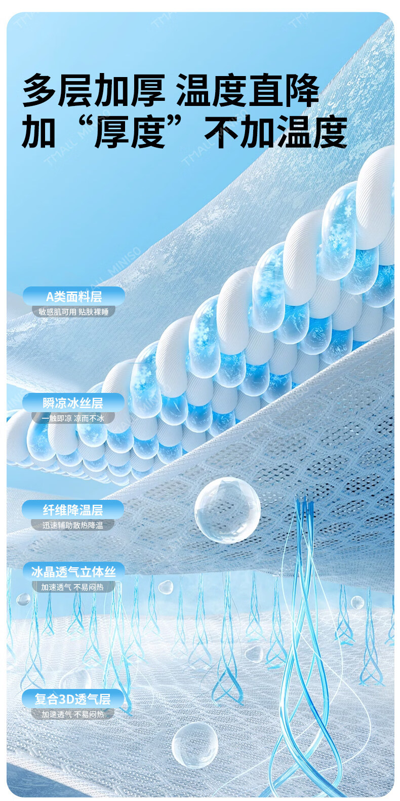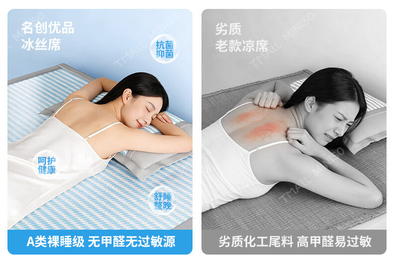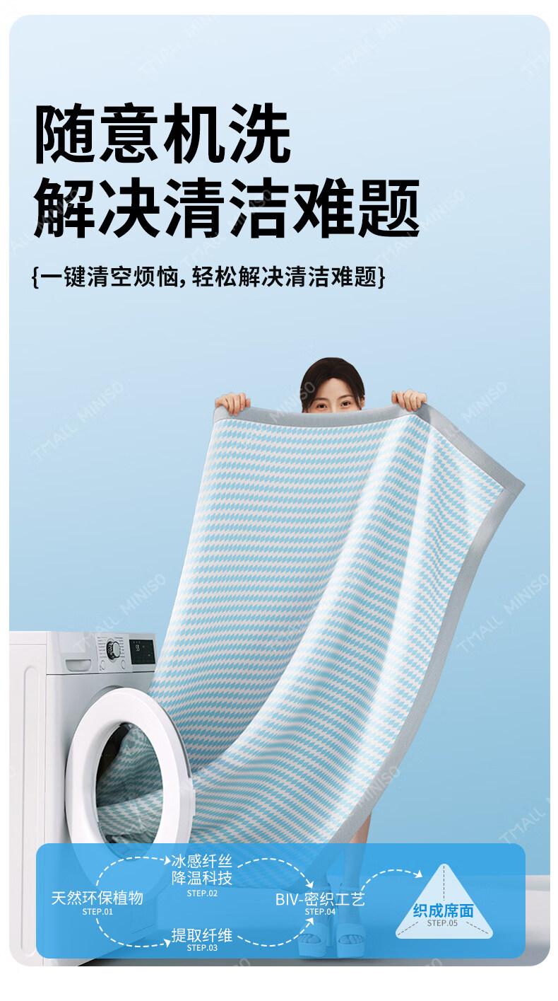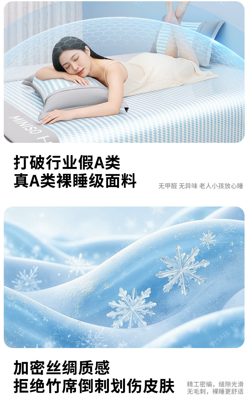 名创优品(MINISO)冰丝凉席1.8米x2米 学生宿舍单人可折叠席子夏天床凉垫软垫 菱格床席款-蓝色 90cm*200cm