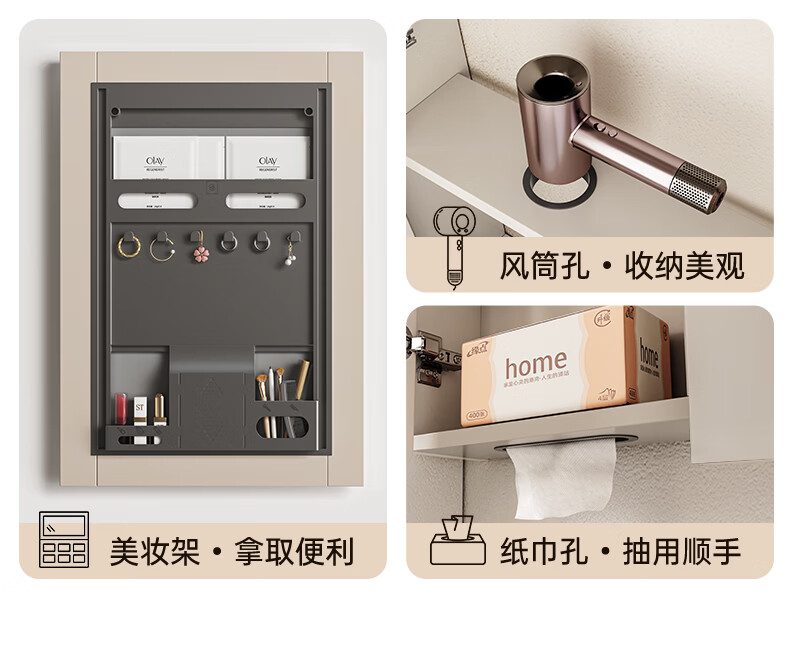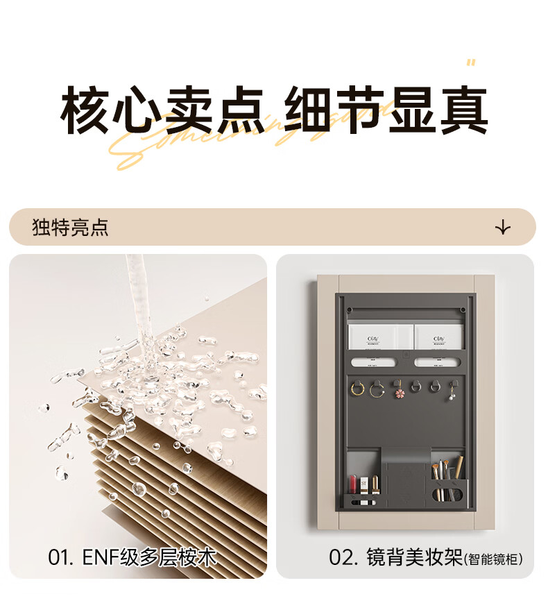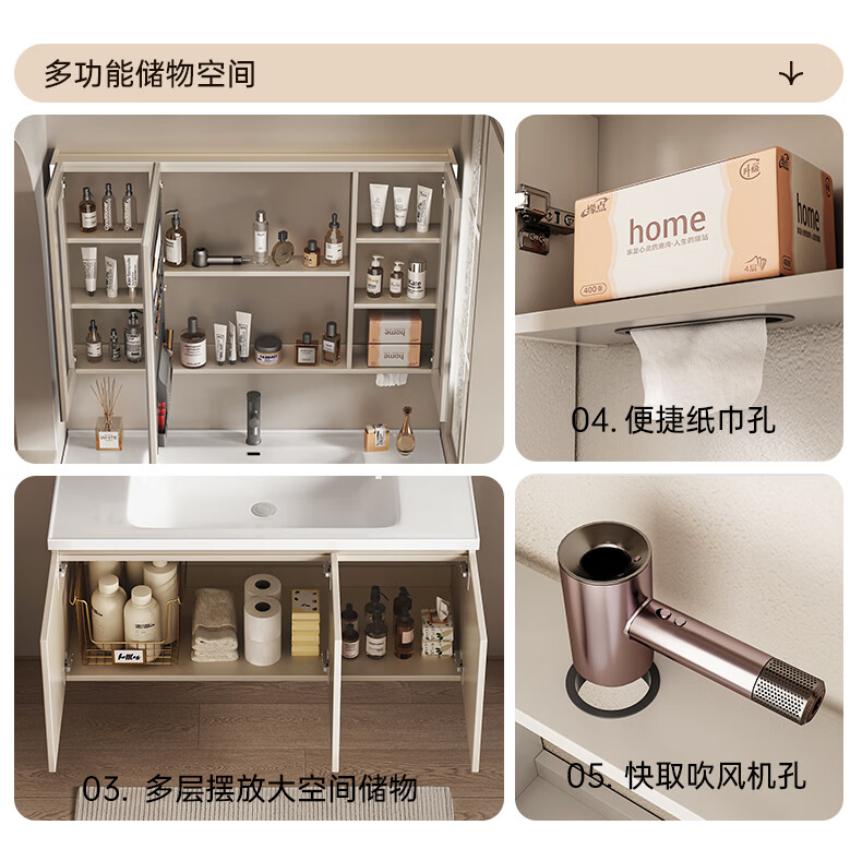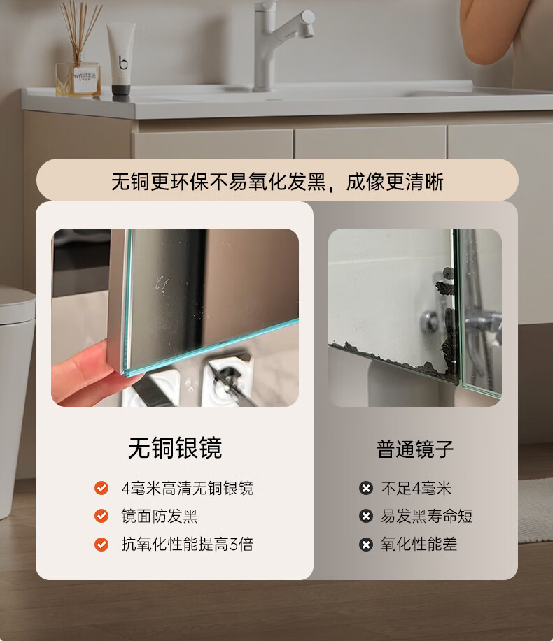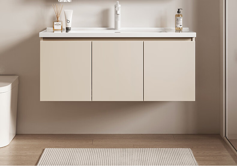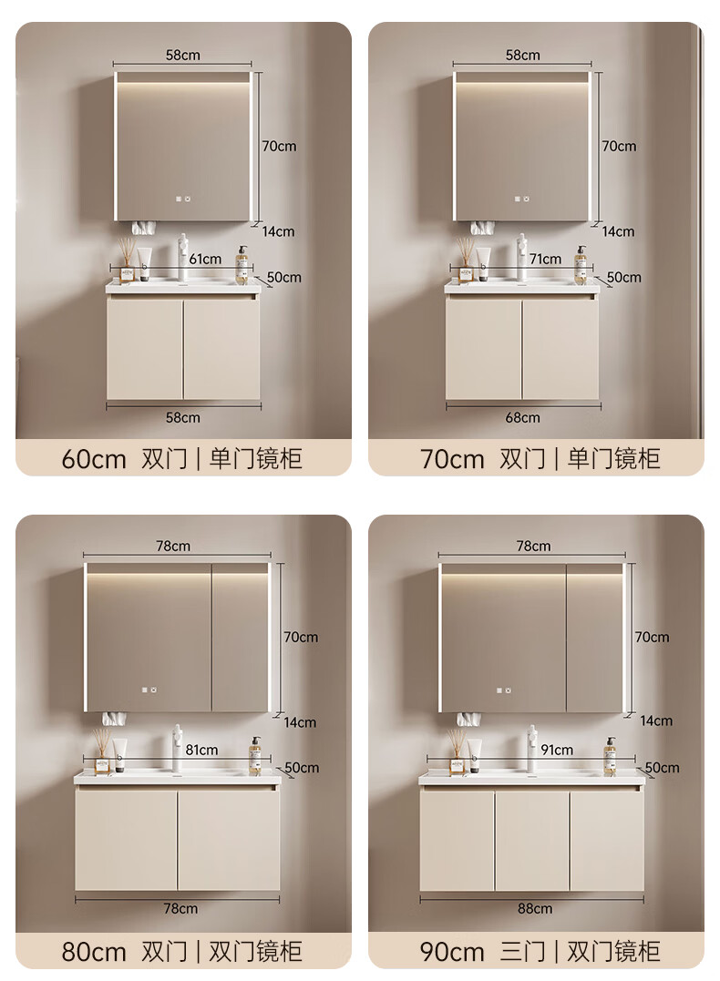 浪鲸(SSWW)浴室柜奶油风陶瓷一体盆小户型洗手盆柜组合卫生间洗漱台实木浴柜 奶油咖 80cm|美妆镜柜