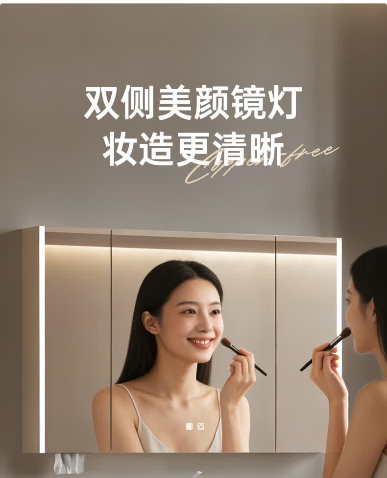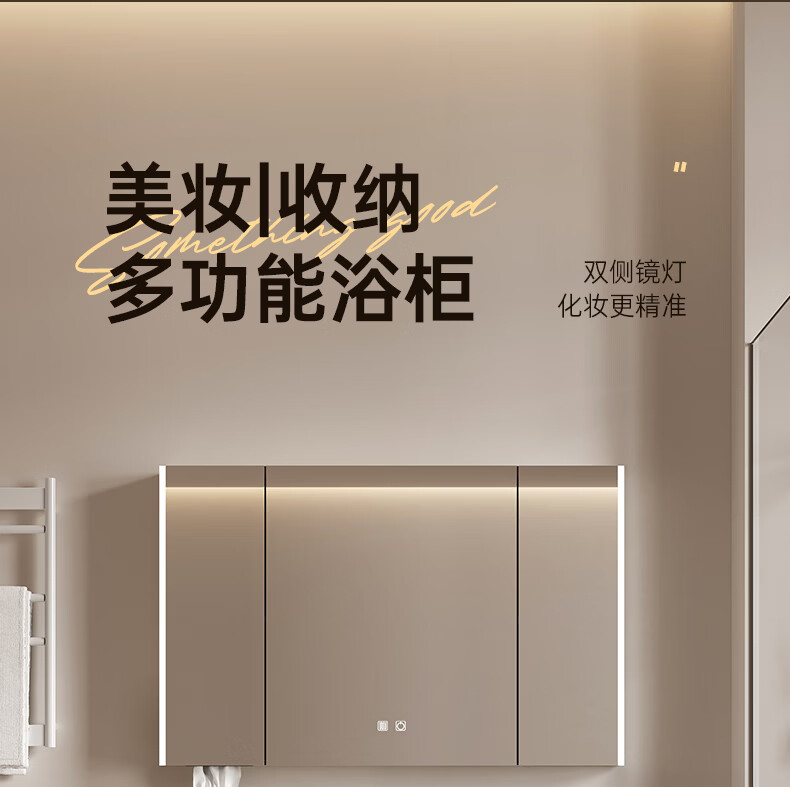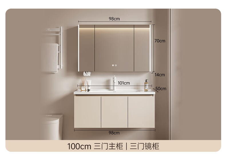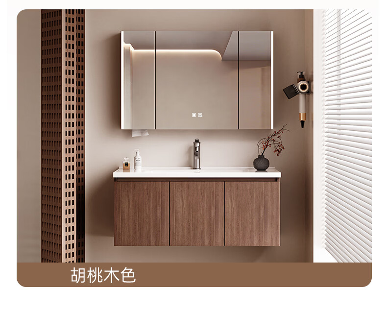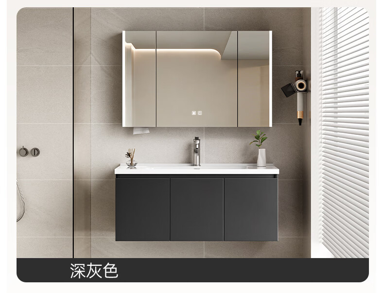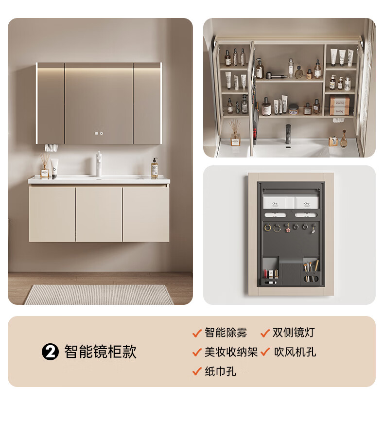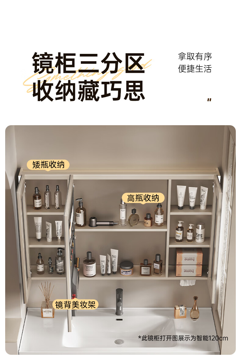 浴美优品洗衣机柜一体水盆组合阳台卫生间智能洗漱洗脸岩板洗手台盆定制 120cm智能圆镜+侧边柜+岩板陶瓷盆 【送安装】
