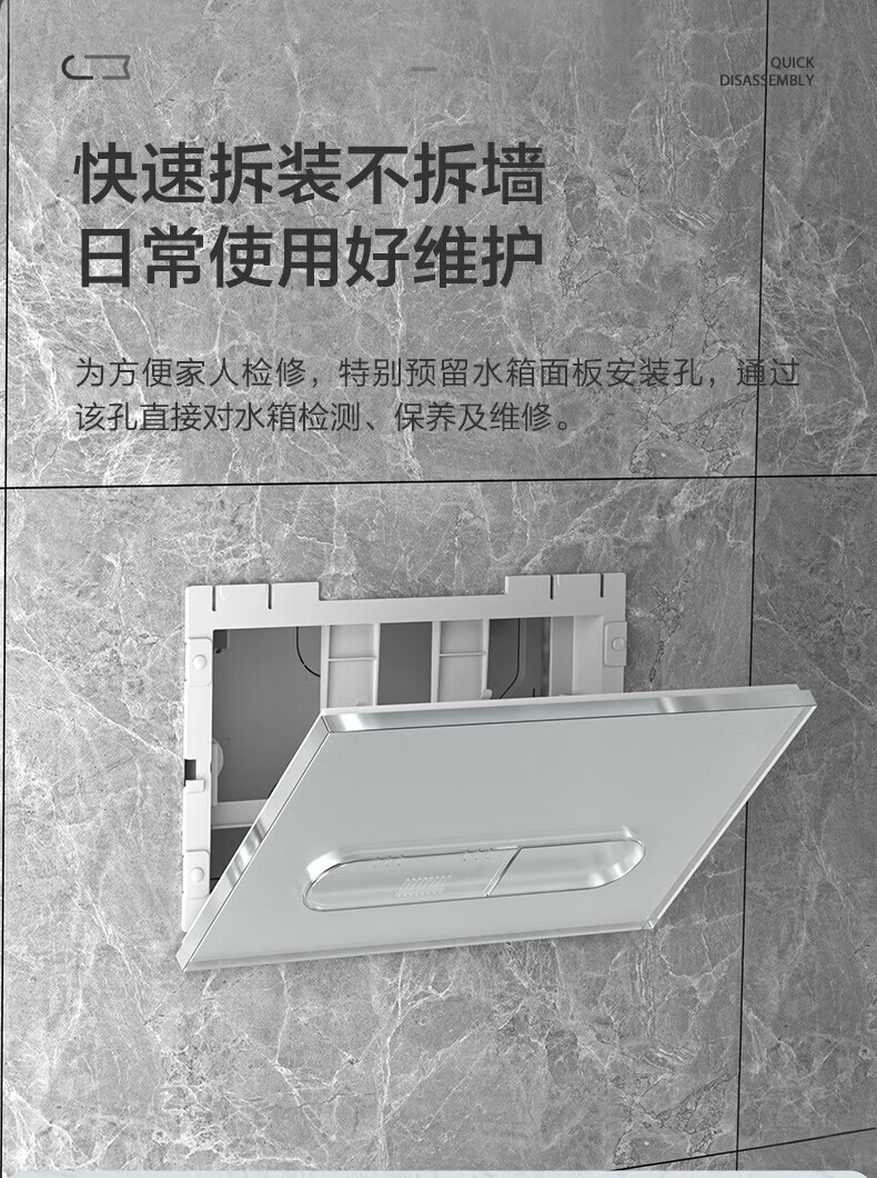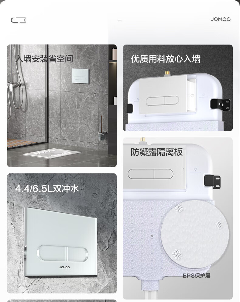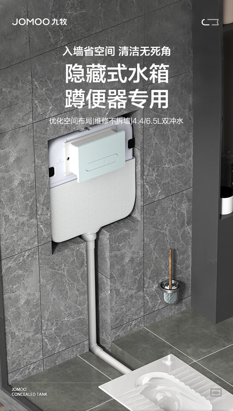 九牧(JOMOO)隐藏式水箱蹲便器套装入墙式节水后进前排蹲便器组合-SP不包安装 【拉丝面板】加长前排蹲便套装