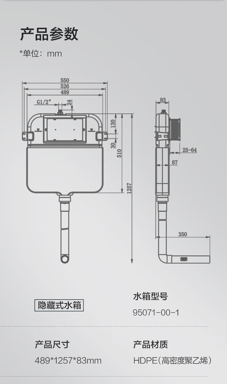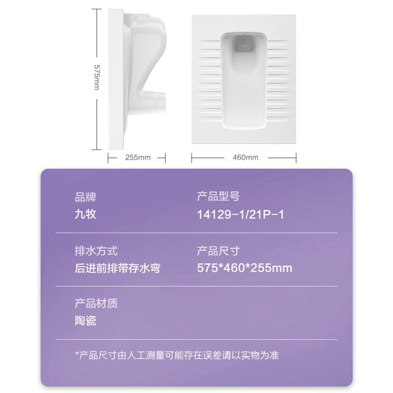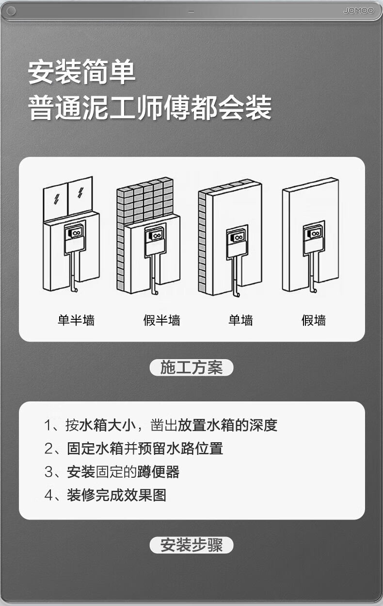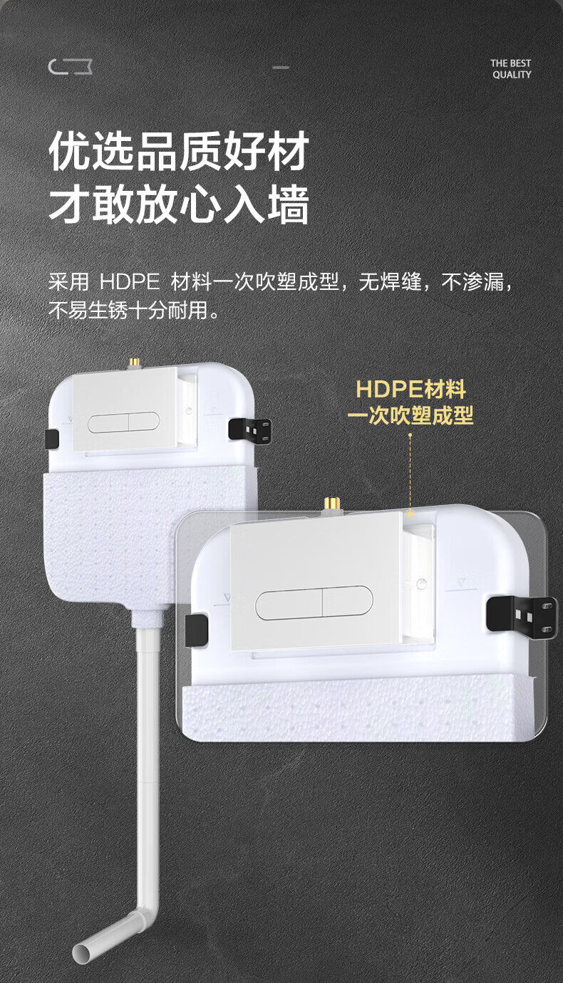 九牧(JOMOO)隐藏式水箱蹲便器套装入墙式节水后进前排蹲便器组合-SP不包安装 【拉丝面板】加长前排蹲便套装