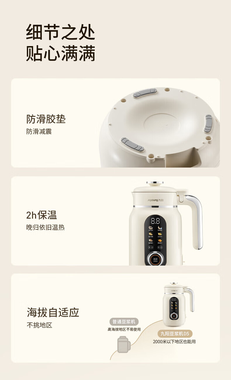 九阳25年新款1L豆浆机变频轻音1-4人用古法浆免过滤自清洁家用全自动多功能榨汁破壁机D5