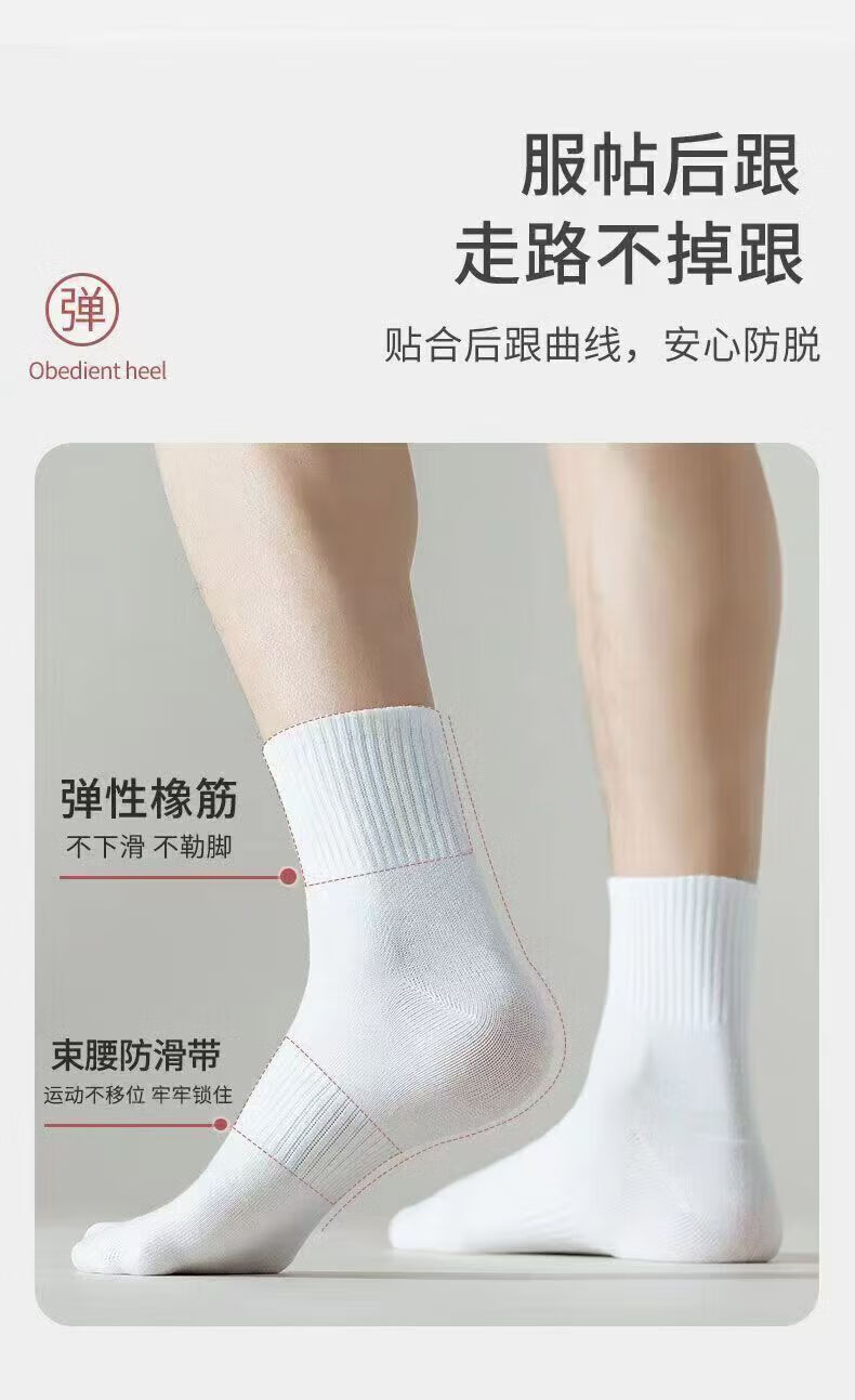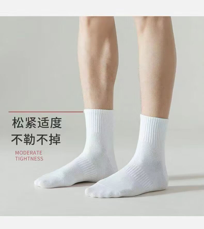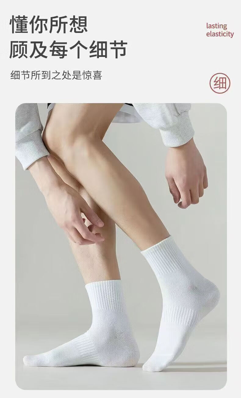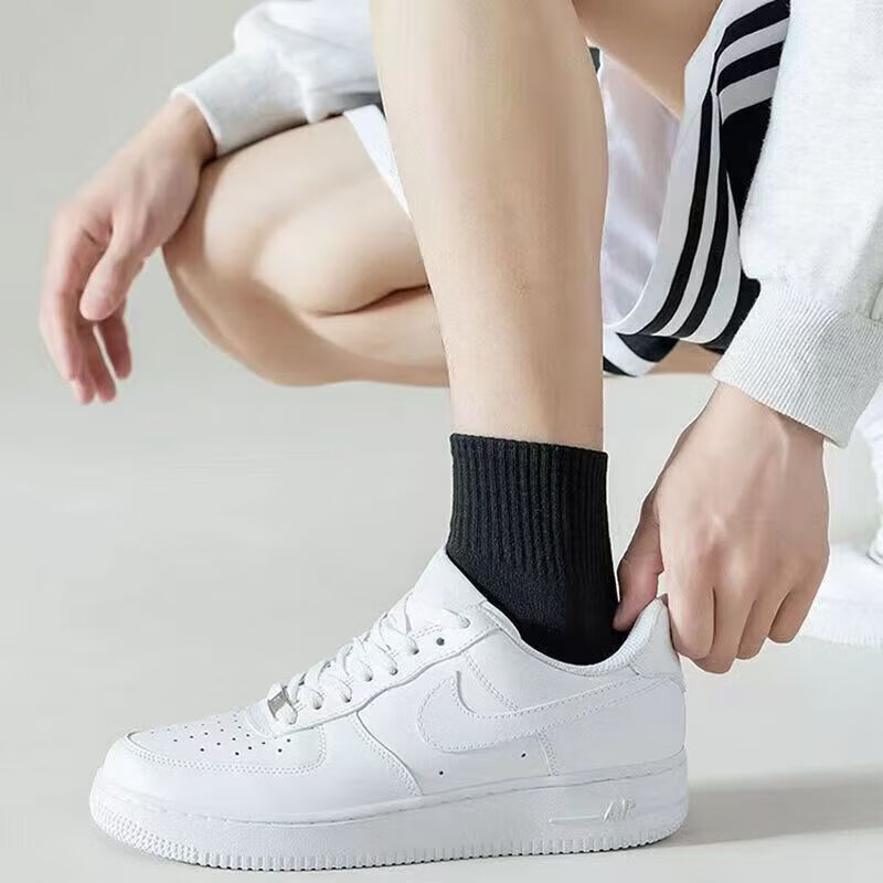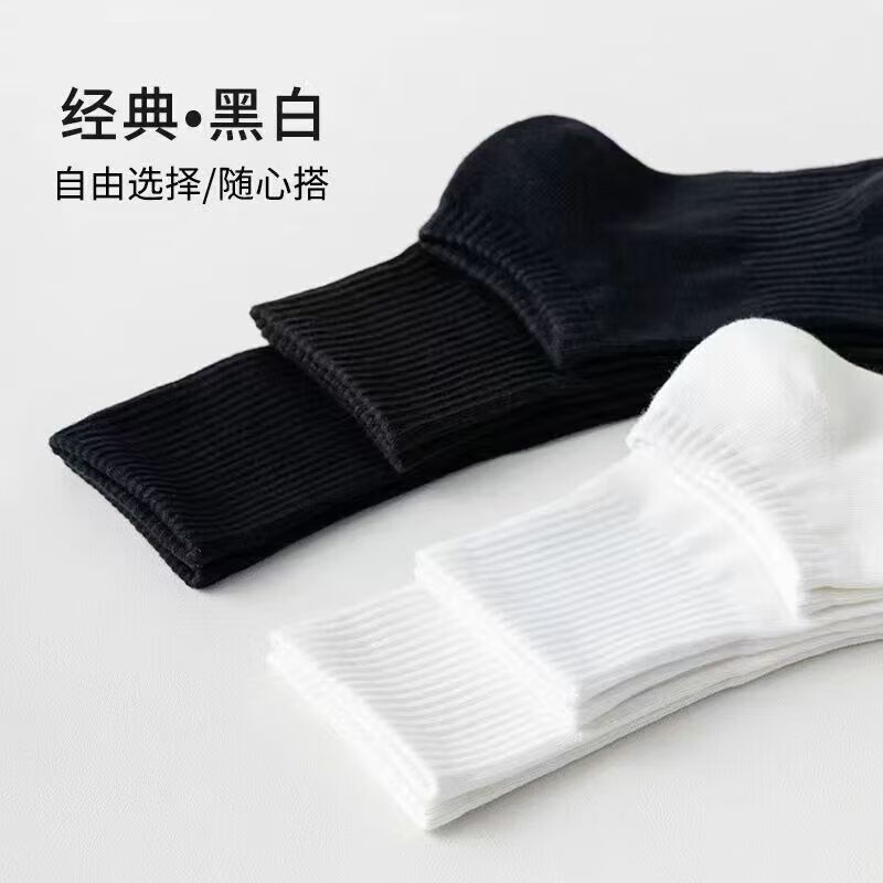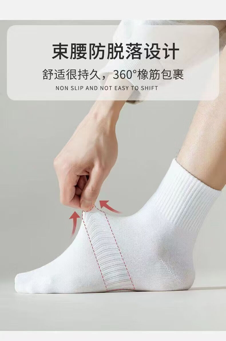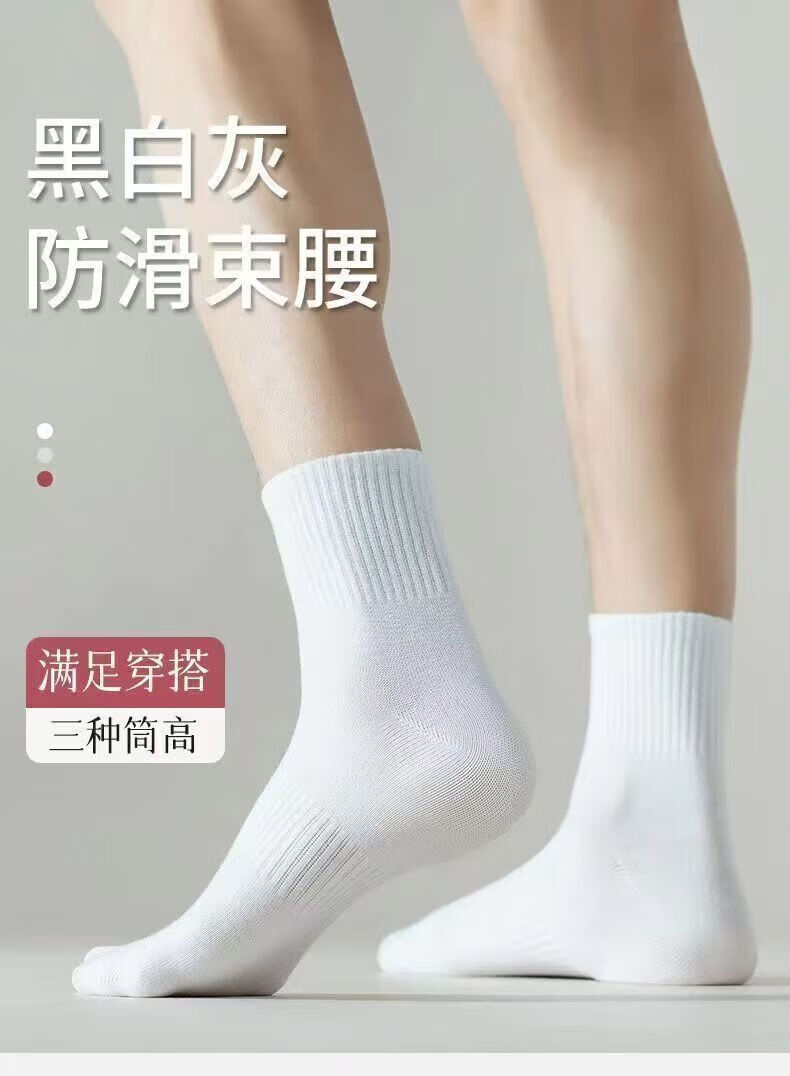 宜而爽新疆长绒棉袜子男士7A抗菌防臭吸汗短袜透气纯色中筒袜秋冬长筒袜 白色【新疆长绒棉】5双 均码 短筒 抗起球
