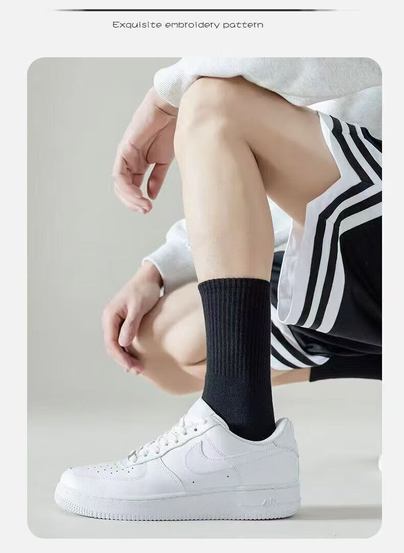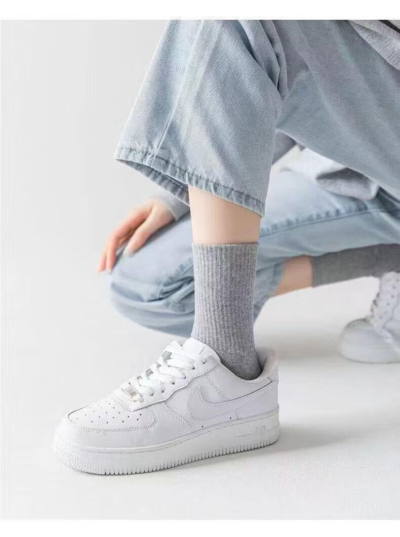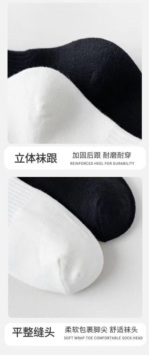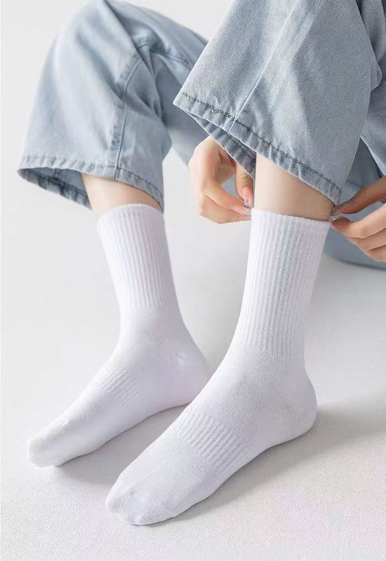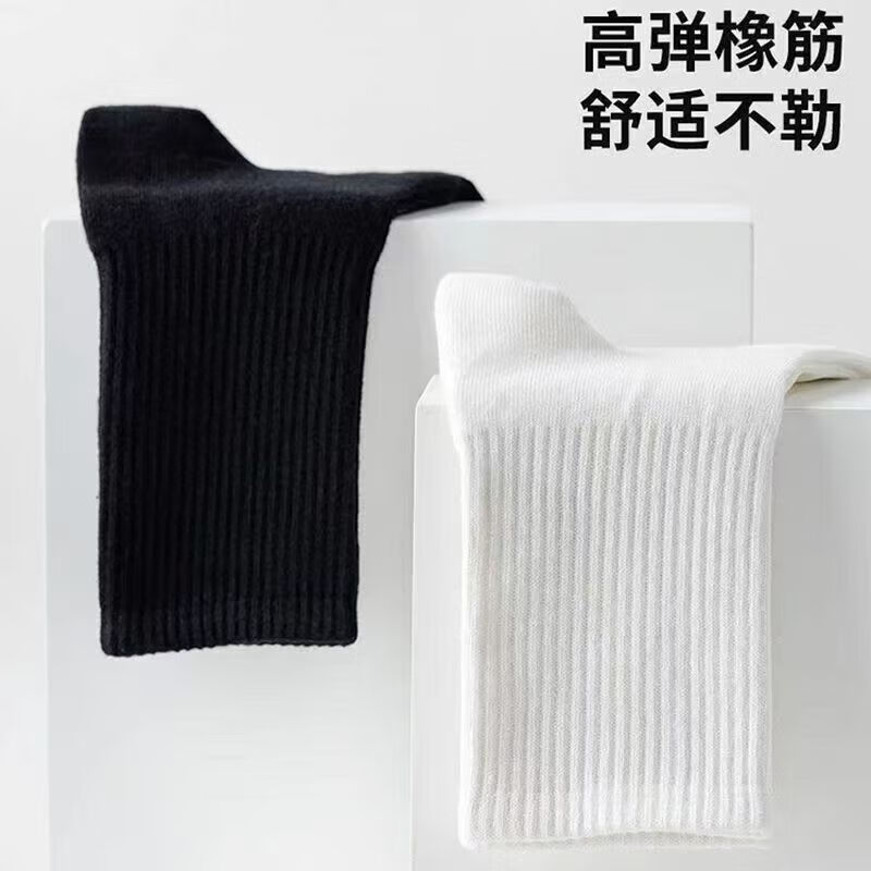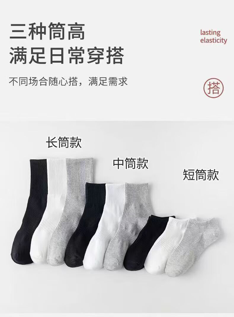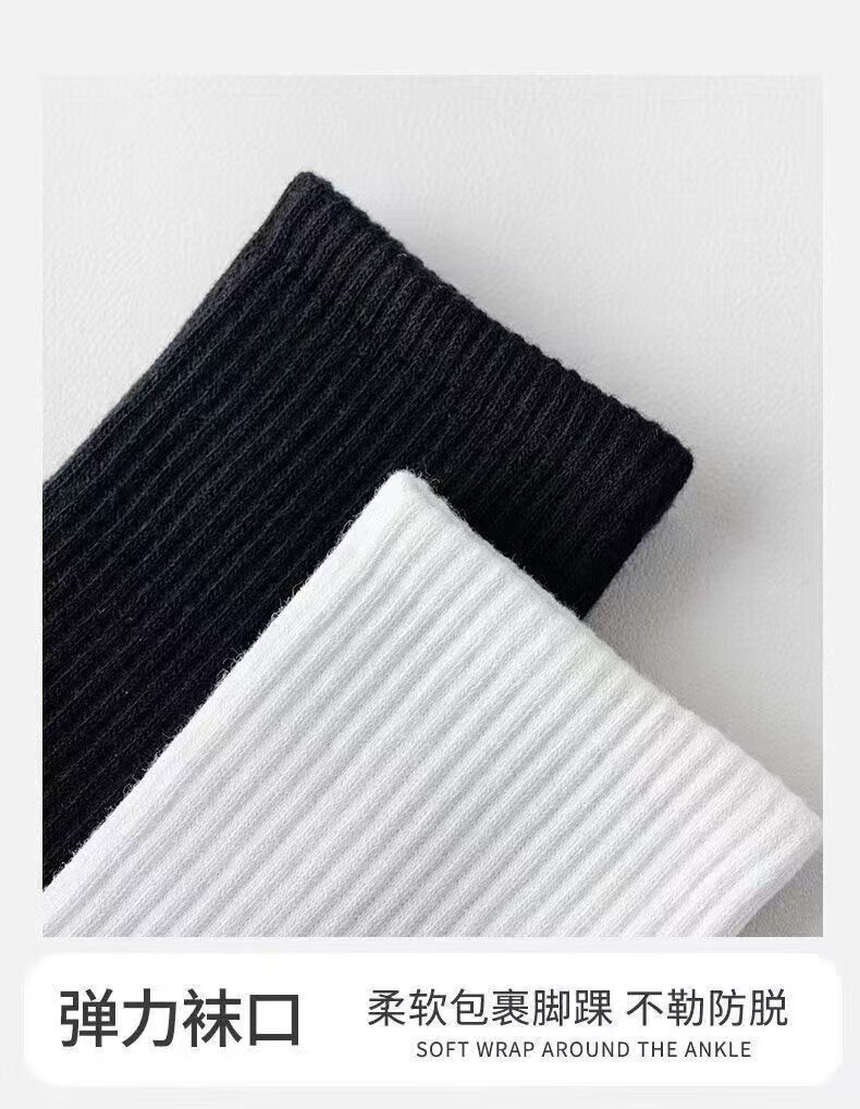 宜而爽新疆长绒棉袜子男士7A抗菌防臭吸汗短袜透气纯色中筒袜秋冬长筒袜 白色【新疆长绒棉】5双 均码 短筒 抗起球