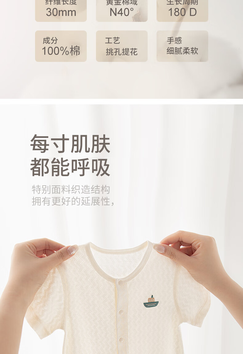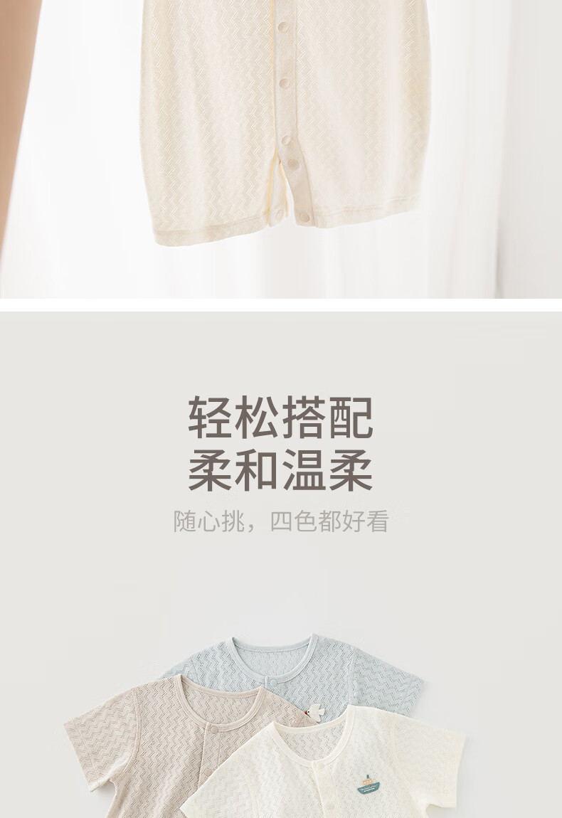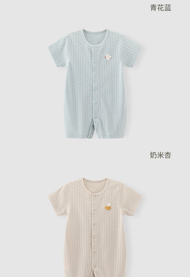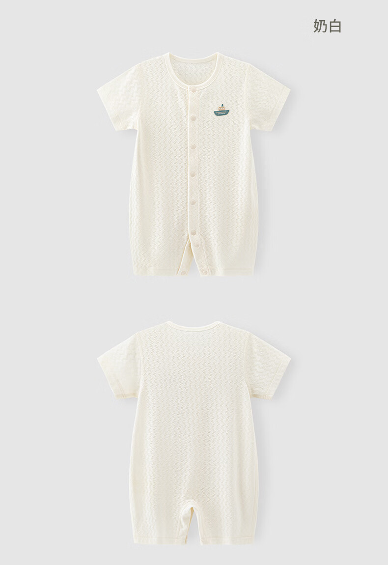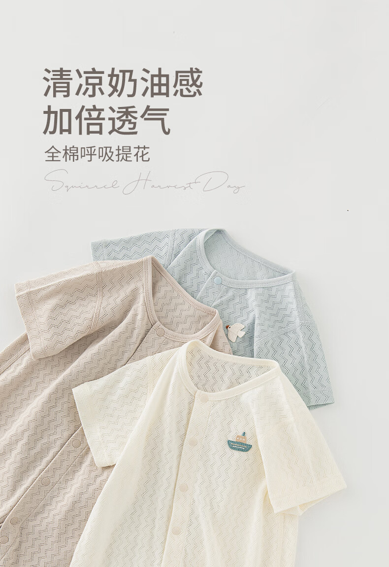 乖奇熊宝宝夏季短袖连体衣薄款透气婴儿纯棉睡衣贴身居家哈衣新生儿爬服