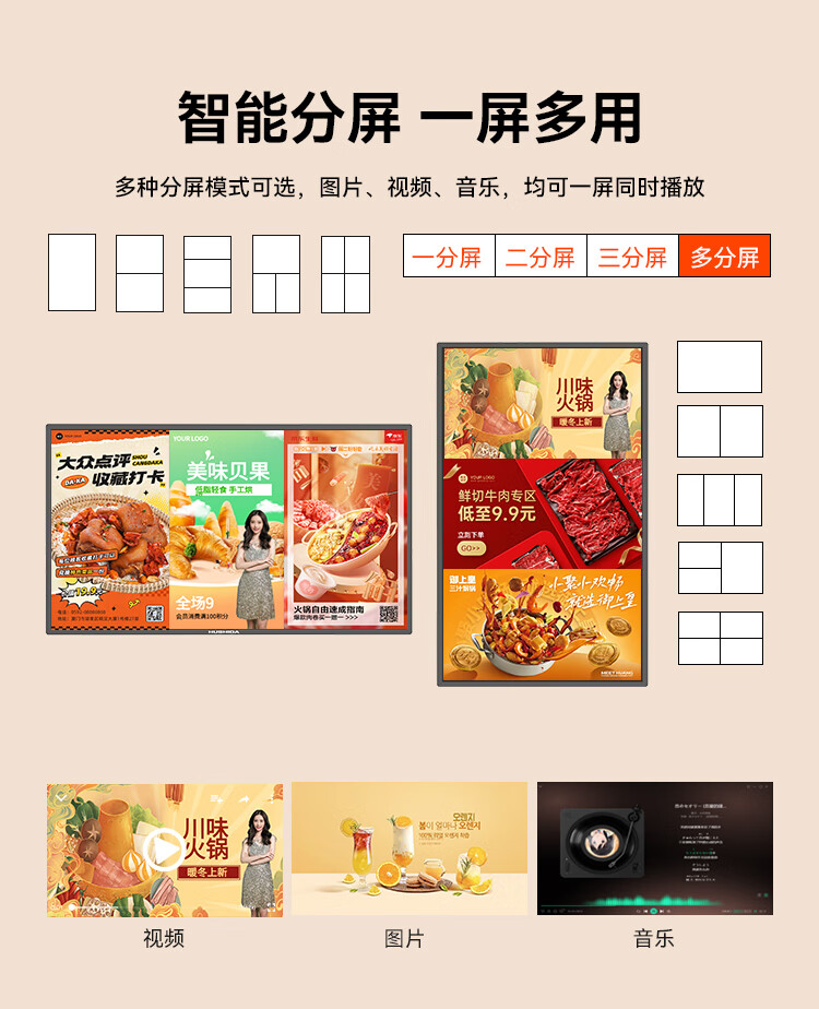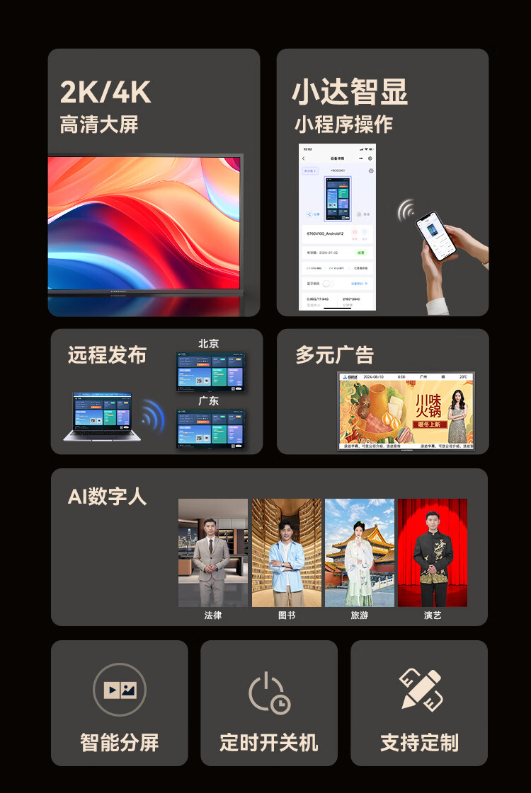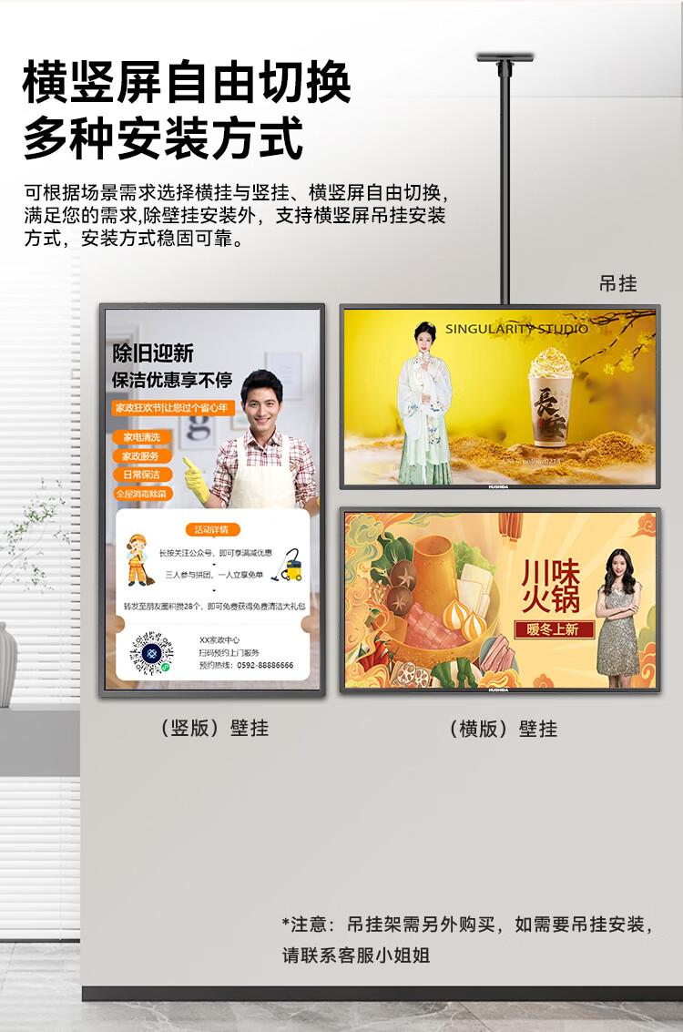 互视达(HUSHIDA)广告机壁挂55英寸显示屏电子水牌高清液晶信息视窗广告屏显示器非触摸LY-55
