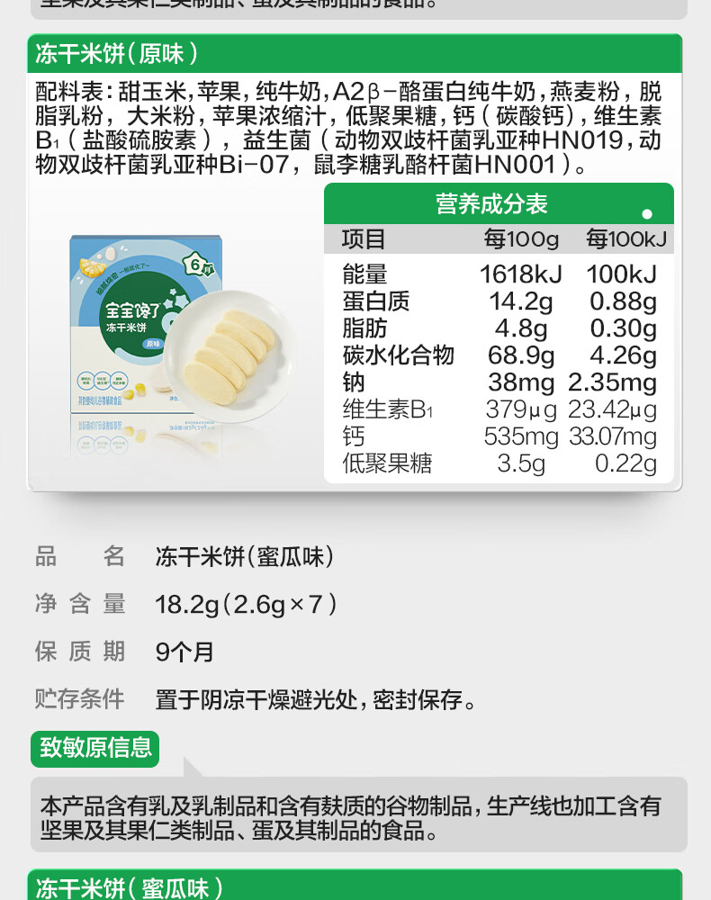 宝宝馋了冻干米饼婴儿原味零食无添加白糖宝宝辅食婴幼儿磨牙饼干6月+