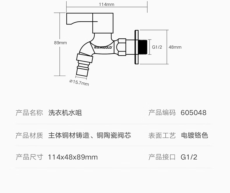 悍高(HIGOLD)阳台户外室内花园龙头 洗衣机龙头铜主体水龙头 通用4分水嘴头