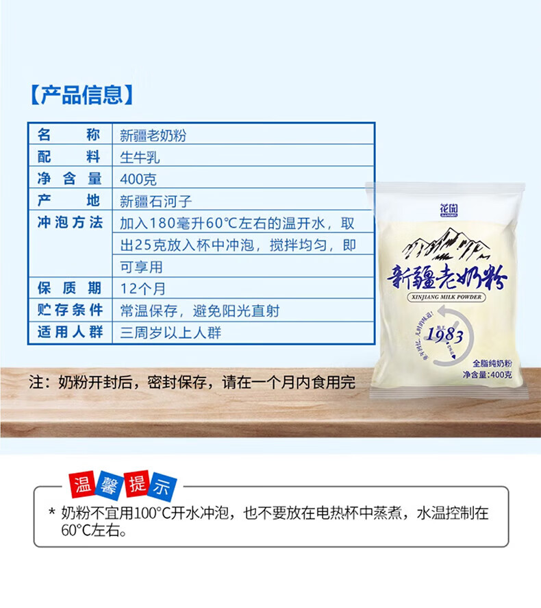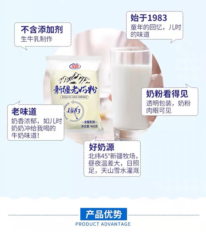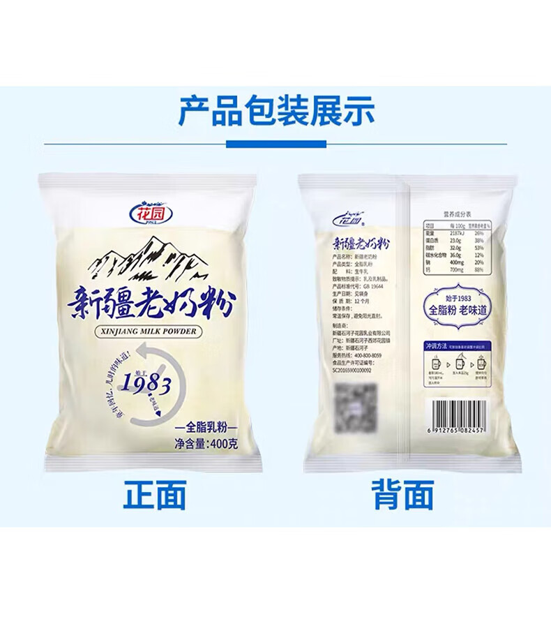花园新疆老奶粉400g生牛乳配方高钙高蛋白中老年成人学生奶粉营养品