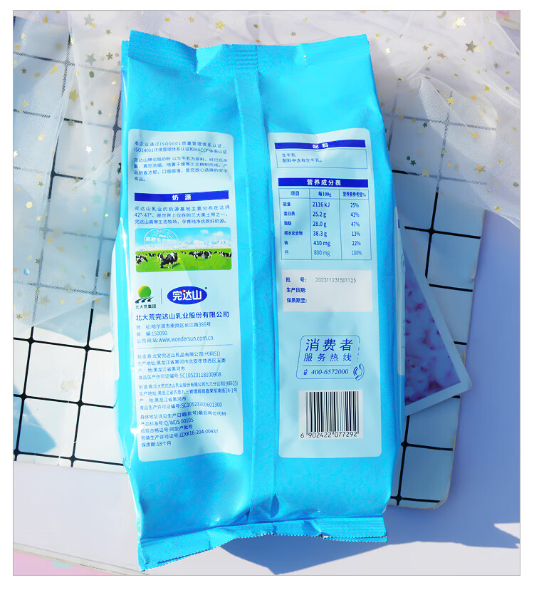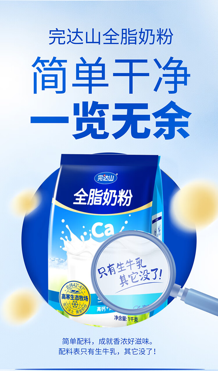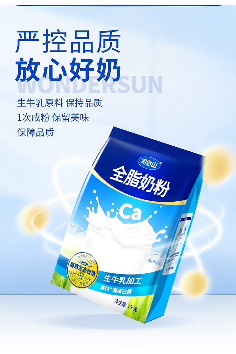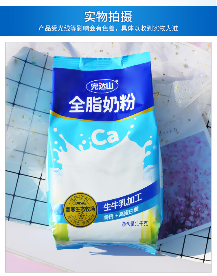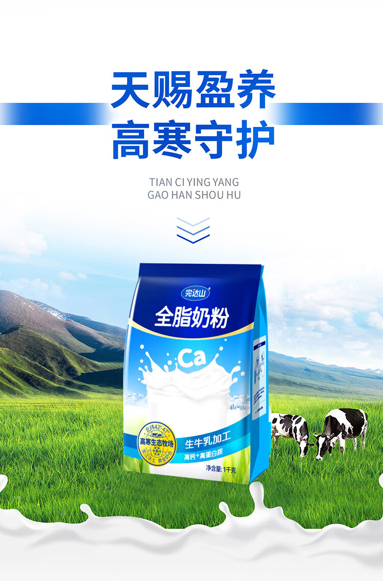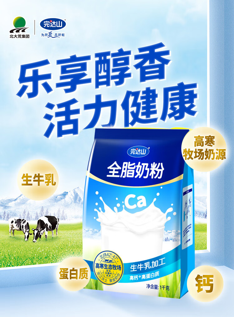 完达山全脂奶粉1kg成人奶粉高钙高蛋白0添加白砂糖学生全家奶粉冲饮烘焙