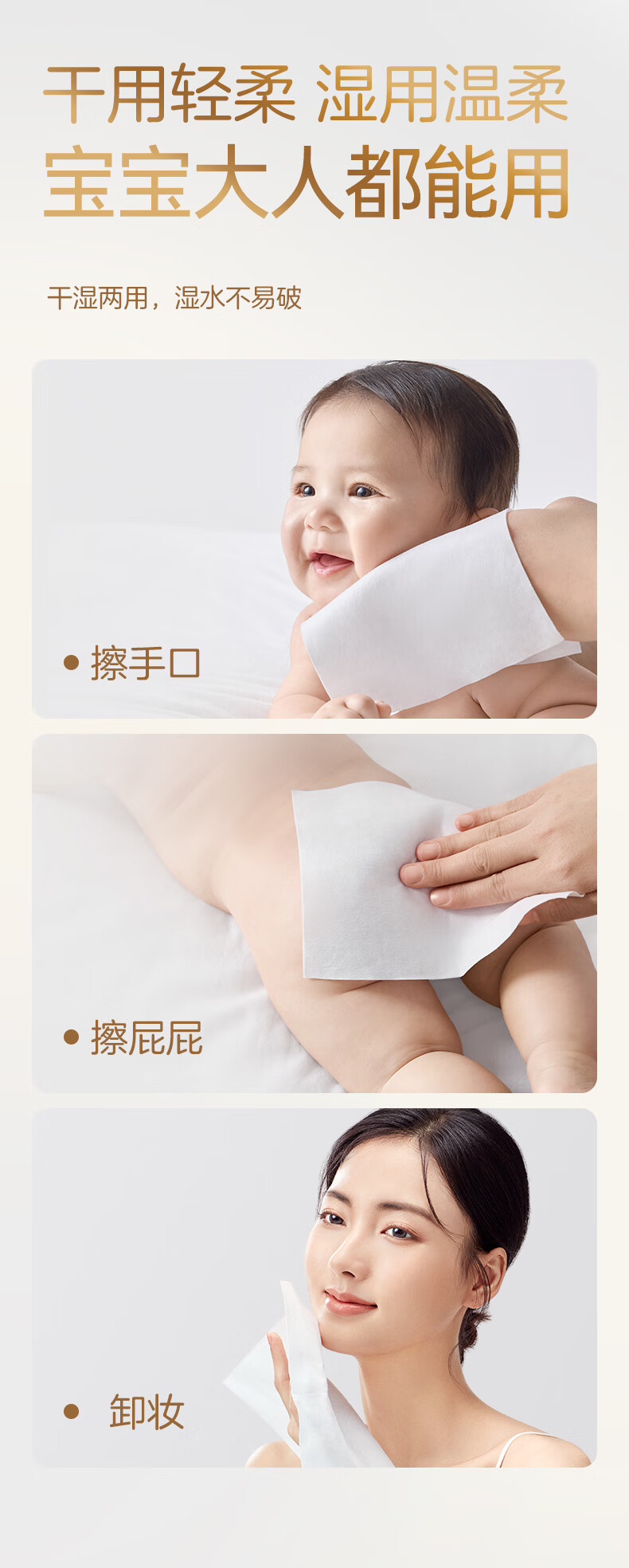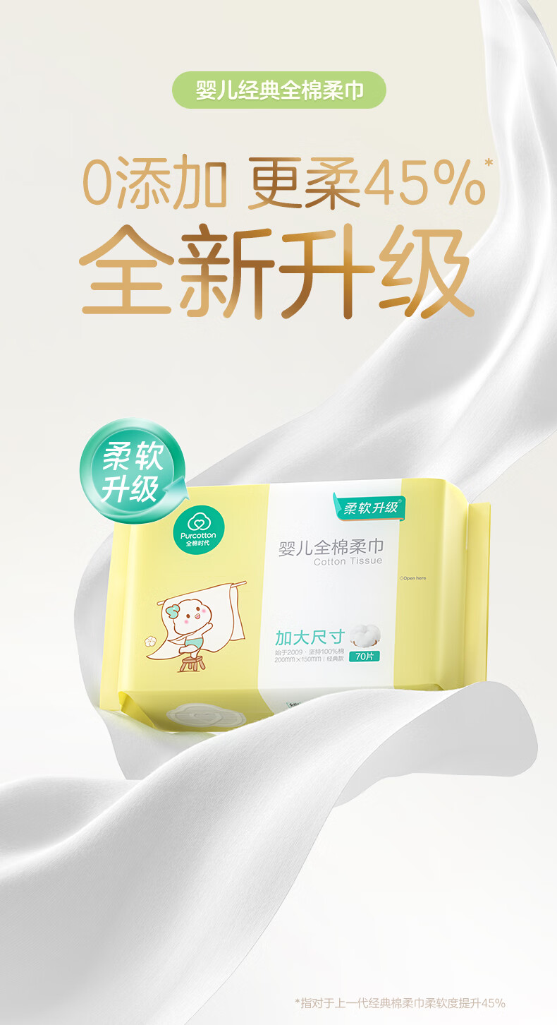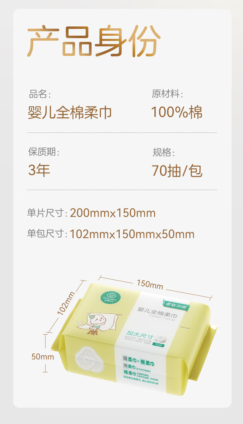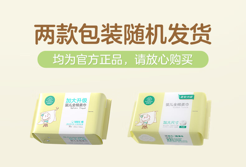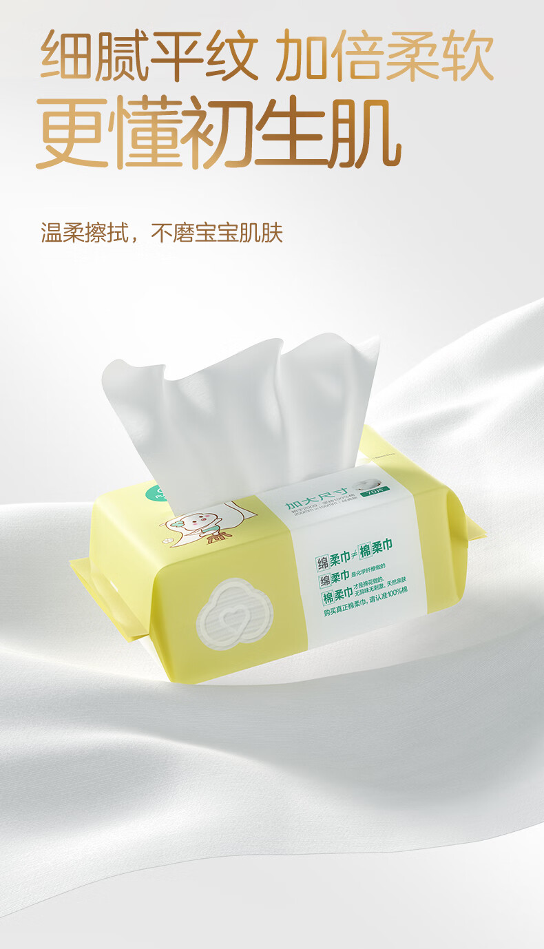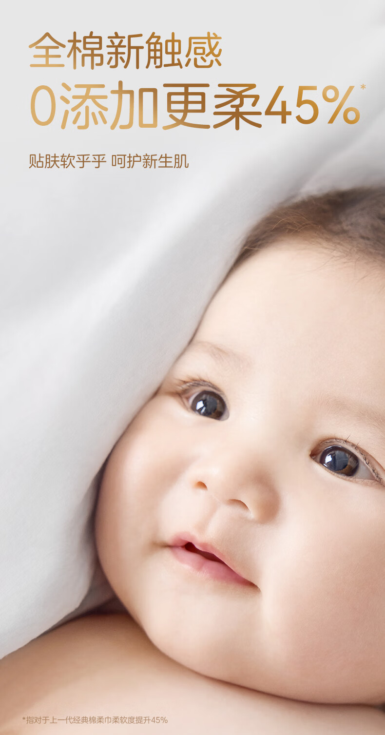 全棉时代棉柔巾婴儿升级加大宝宝干湿两用巾新生儿一次性洗脸巾15*20cm 70抽 12包 【经典升级】