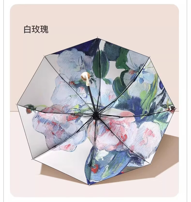 知临双层遮阳伞防晒防紫外线女手动折叠晴雨两用黑胶三折高颜值太阳伞 白玫瑰【双层黑胶双面双花丨防紫外线】赠拎包