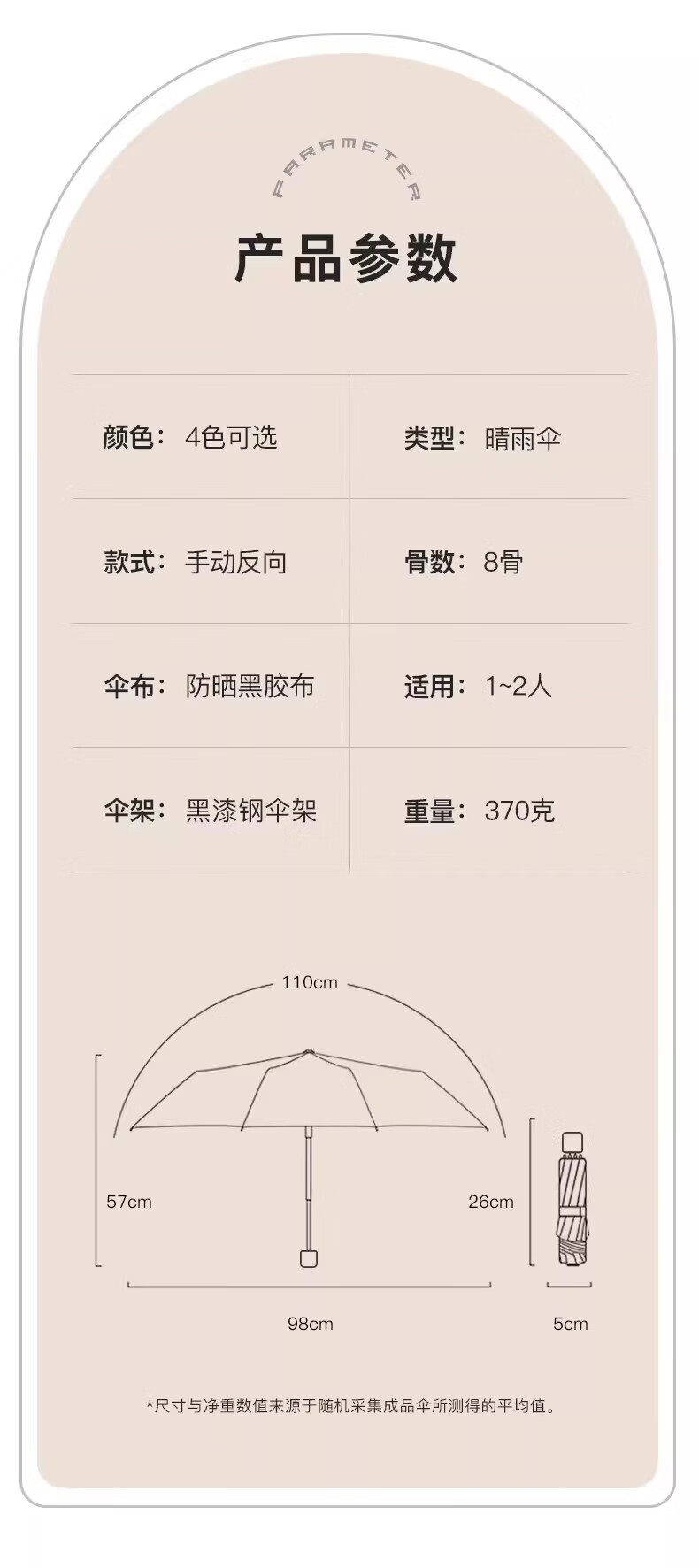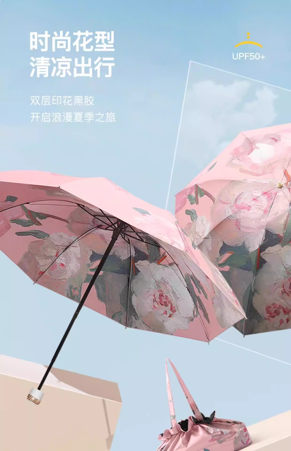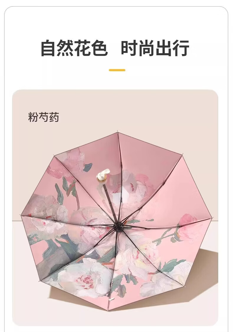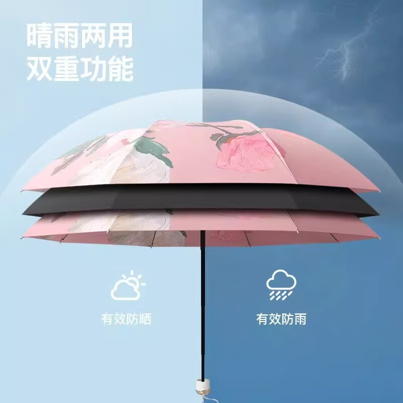 蕉下(beneunder)防紫外线遮阳伞三折倍护黑胶晴雨伞防晒伞野花BM398岚山浮月