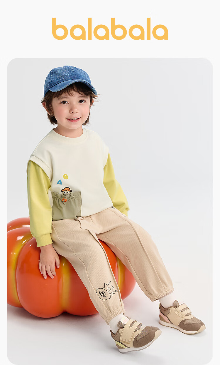 巴拉巴拉balaOne宝宝长裤宽松针织裤男童秋新款裤子卡通印花 浅花灰00205 110