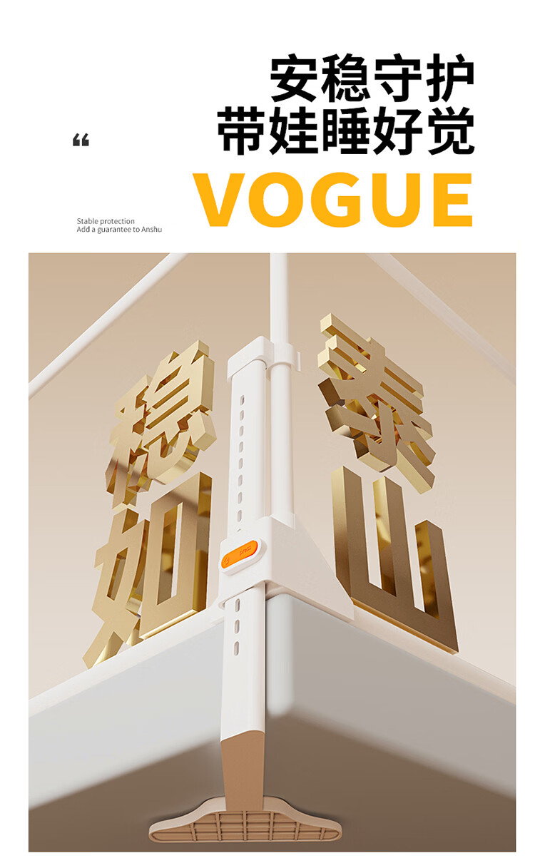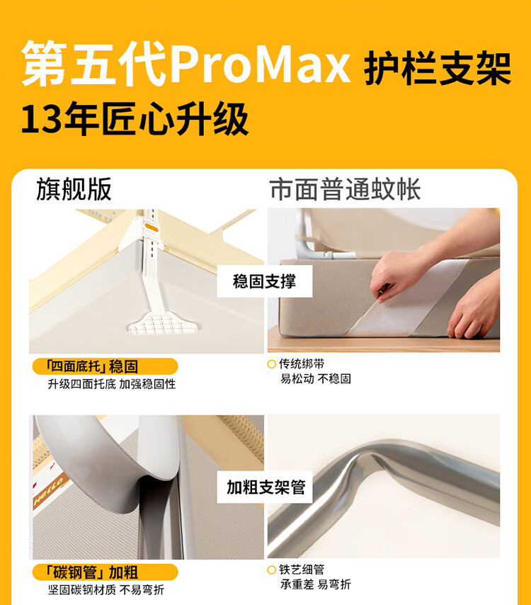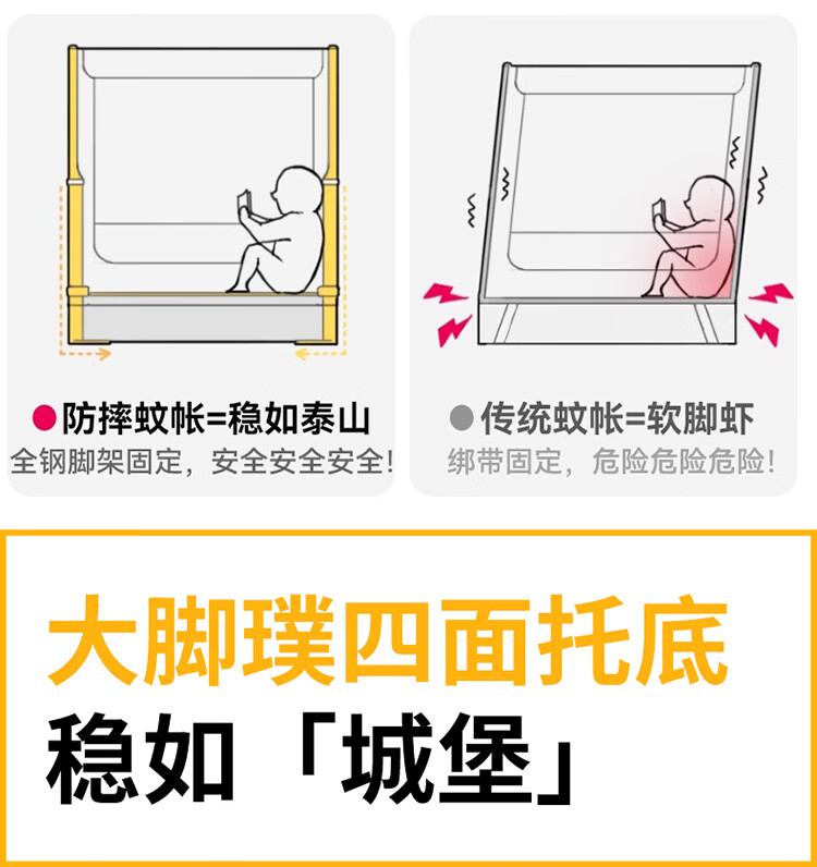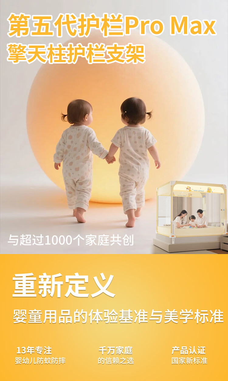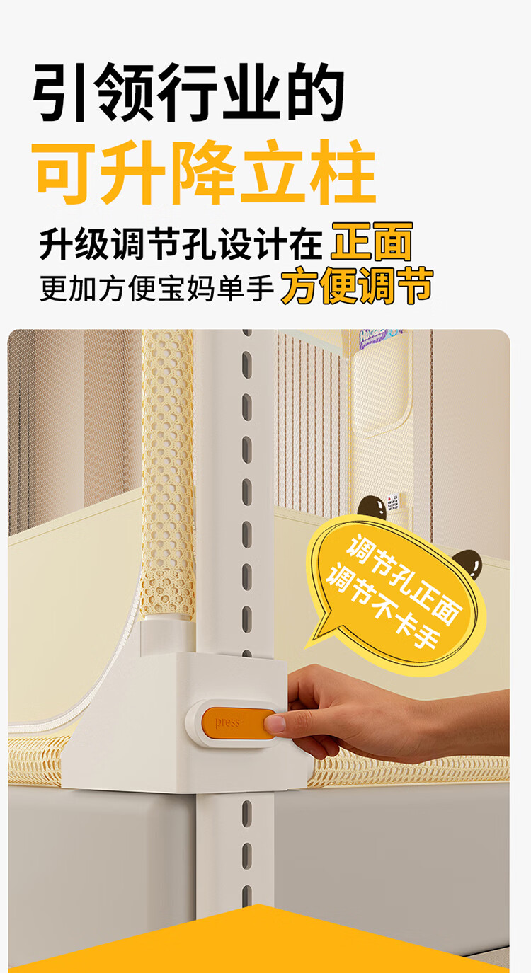 无印良品A类家用蚊帐1.5米x2米全底可升降蚊帐架卧室儿童一体式防摔床围栏 Lucky星宝【加密帐纱 防摔防蚊】 120cm*200cm*170cm 【围栏支架】
