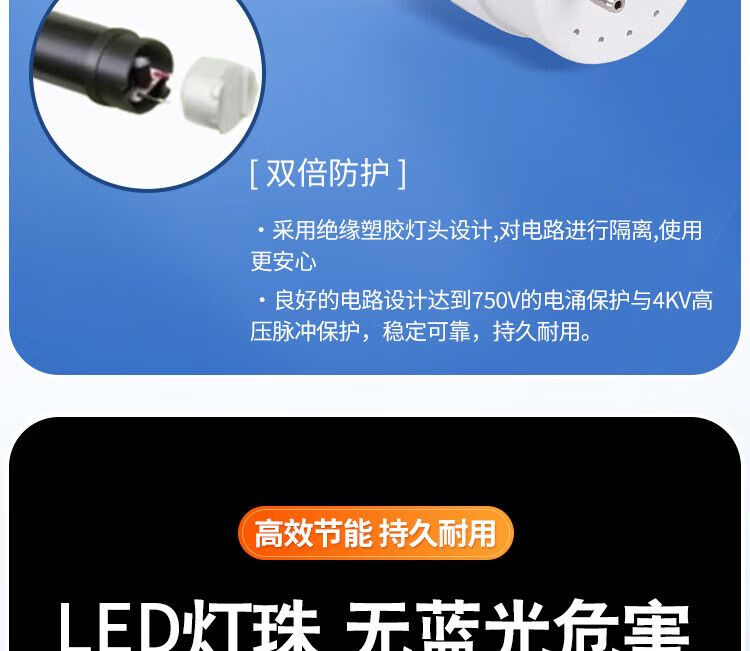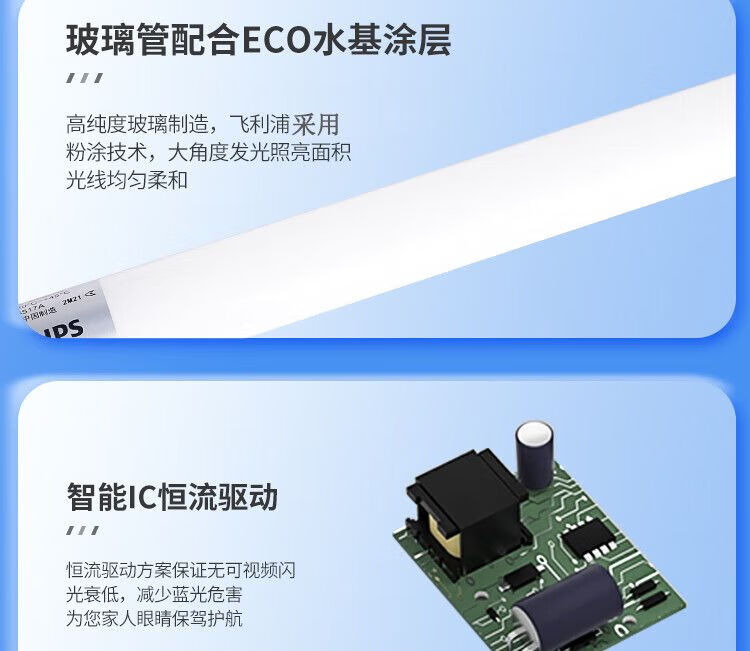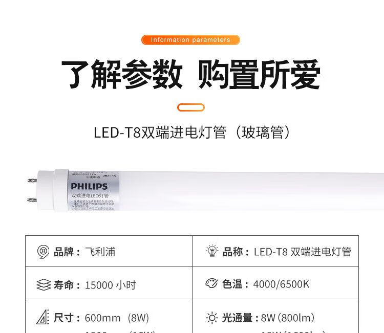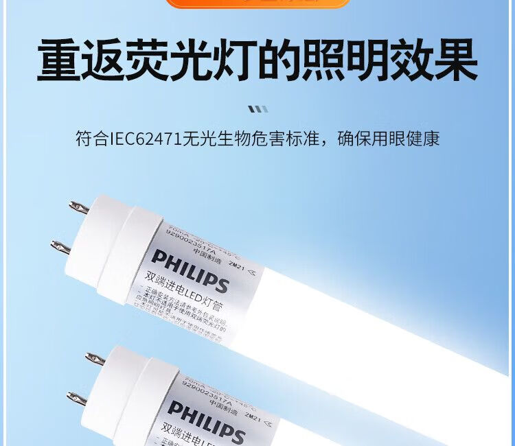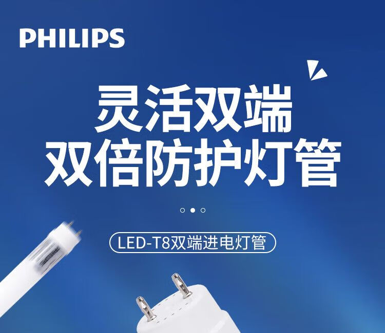 飞利浦(PHILIPS) led灯管T8日光灯管节能光管标准直管格栅灯LED灯管t8双端供电长条灯 T8双端供电1.2米22W白光6500K 300支