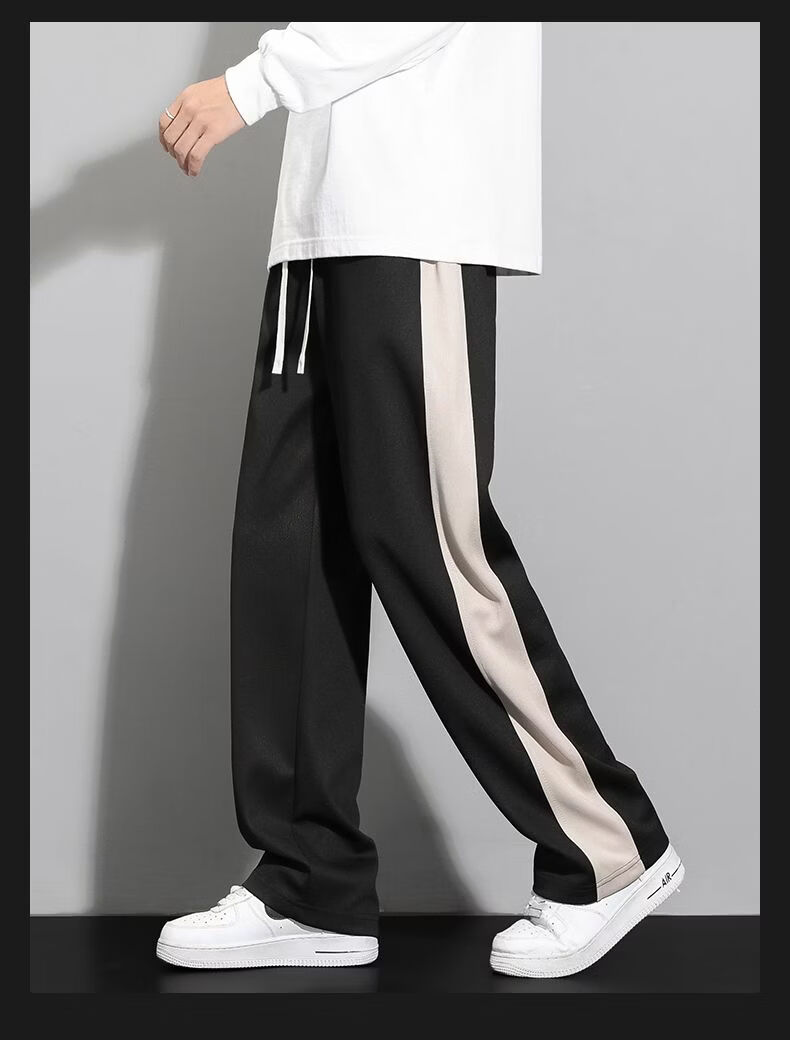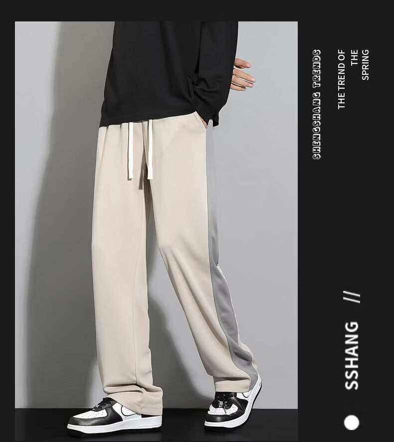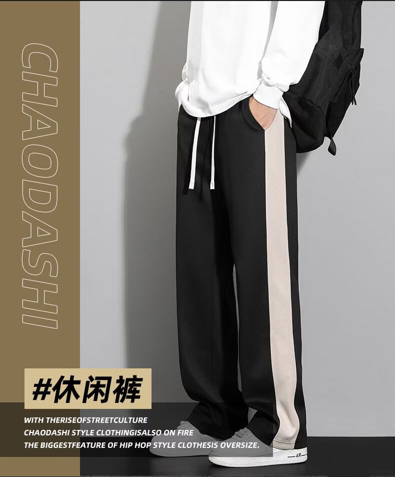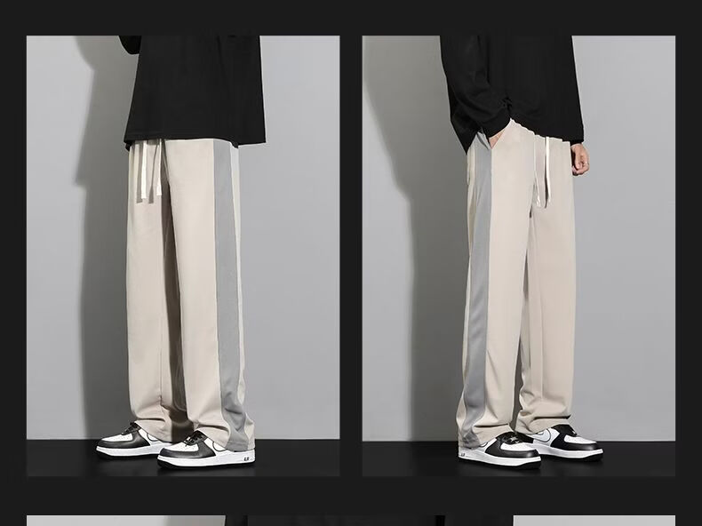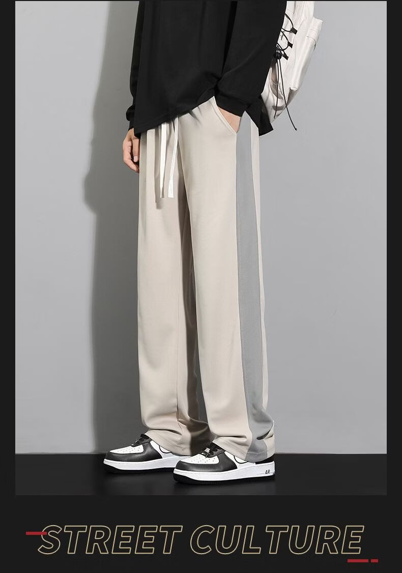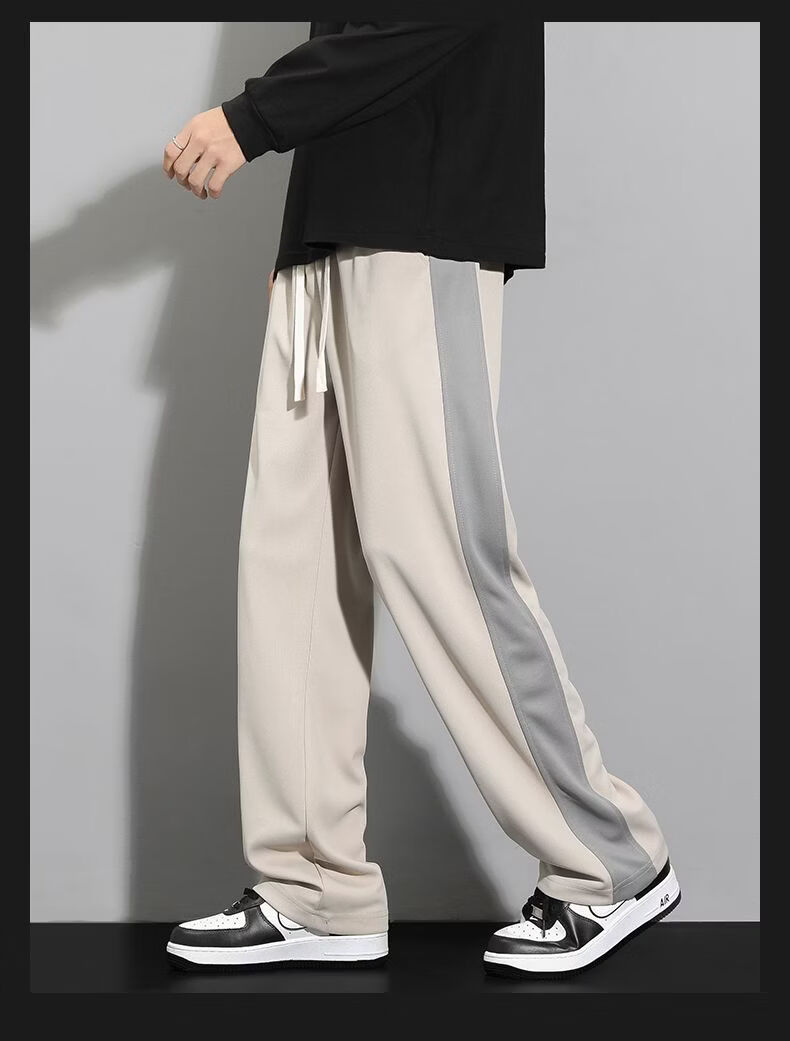 真维斯(Jeanswest)条纹显高休闲裤男士2026新款夏季宽松直筒运动舒适长裤子男 712杏色 M