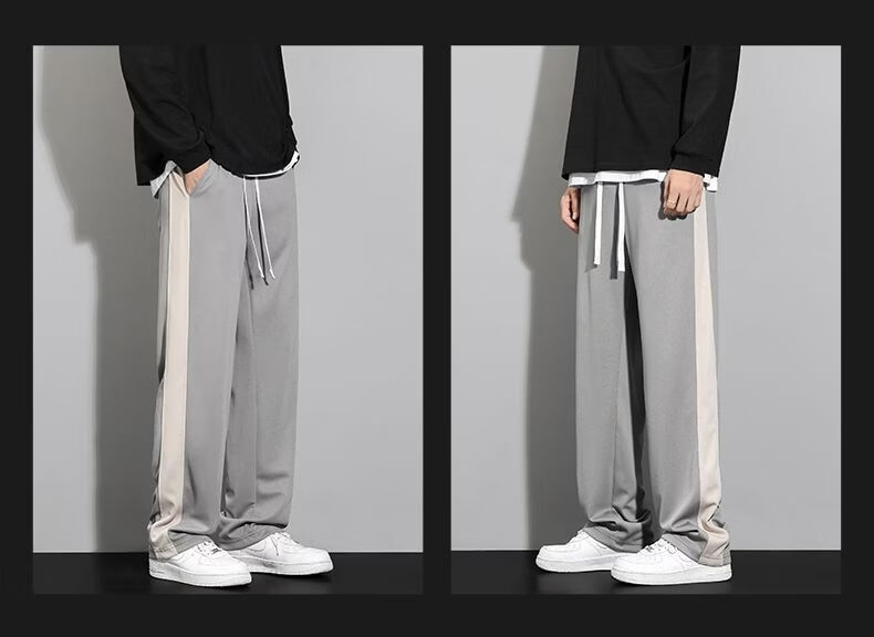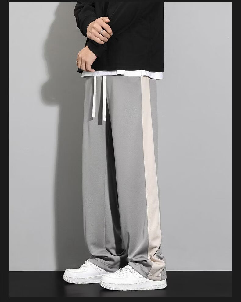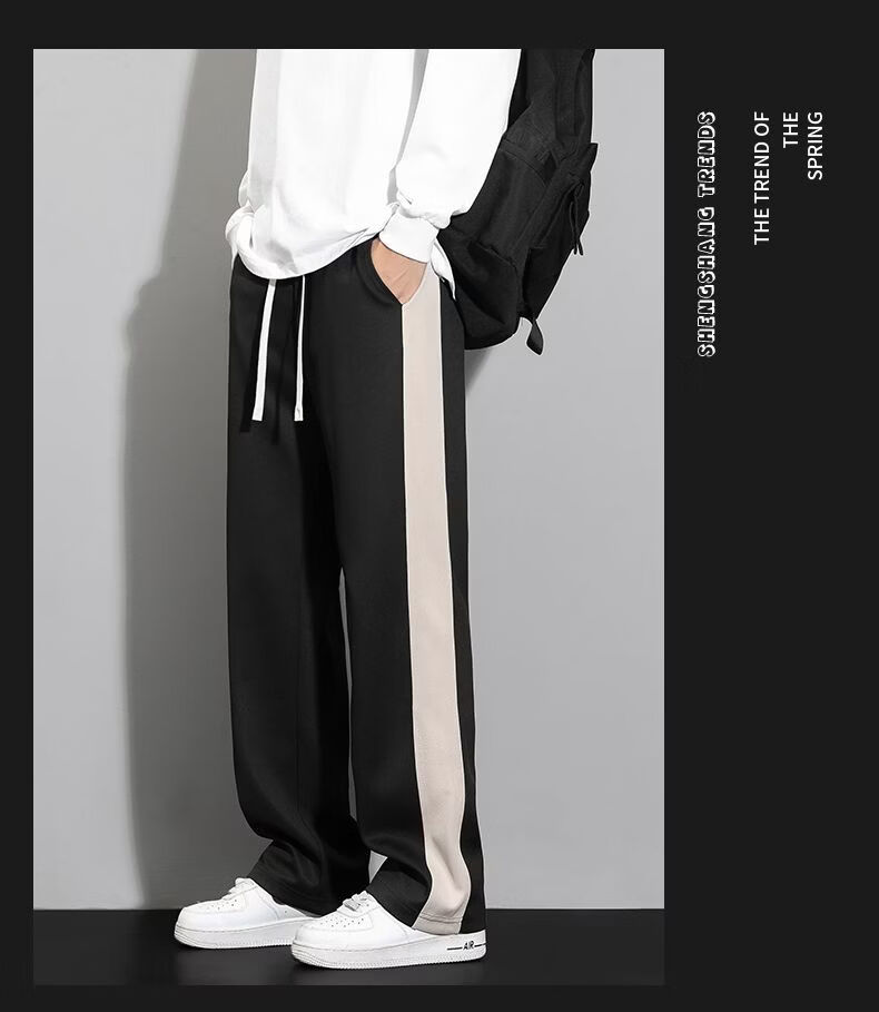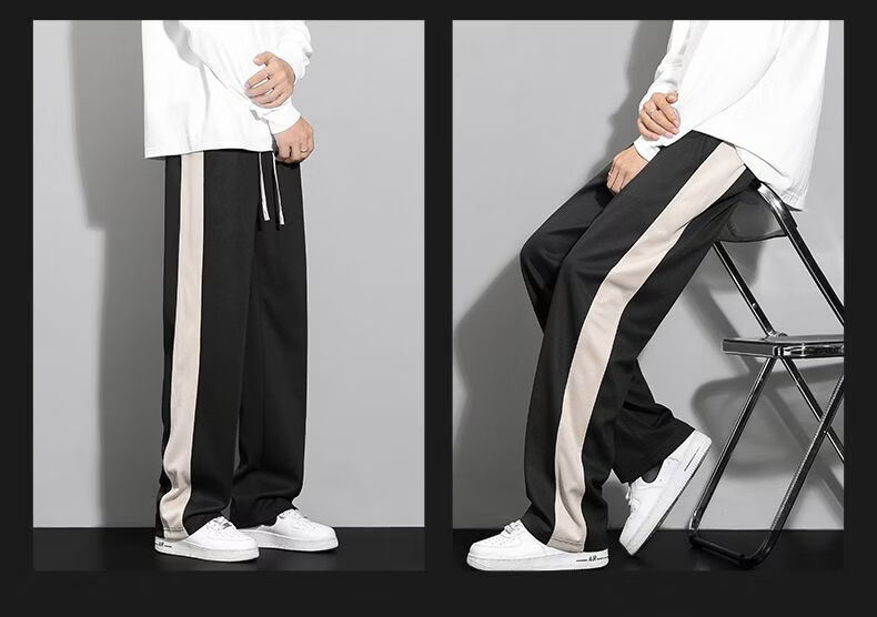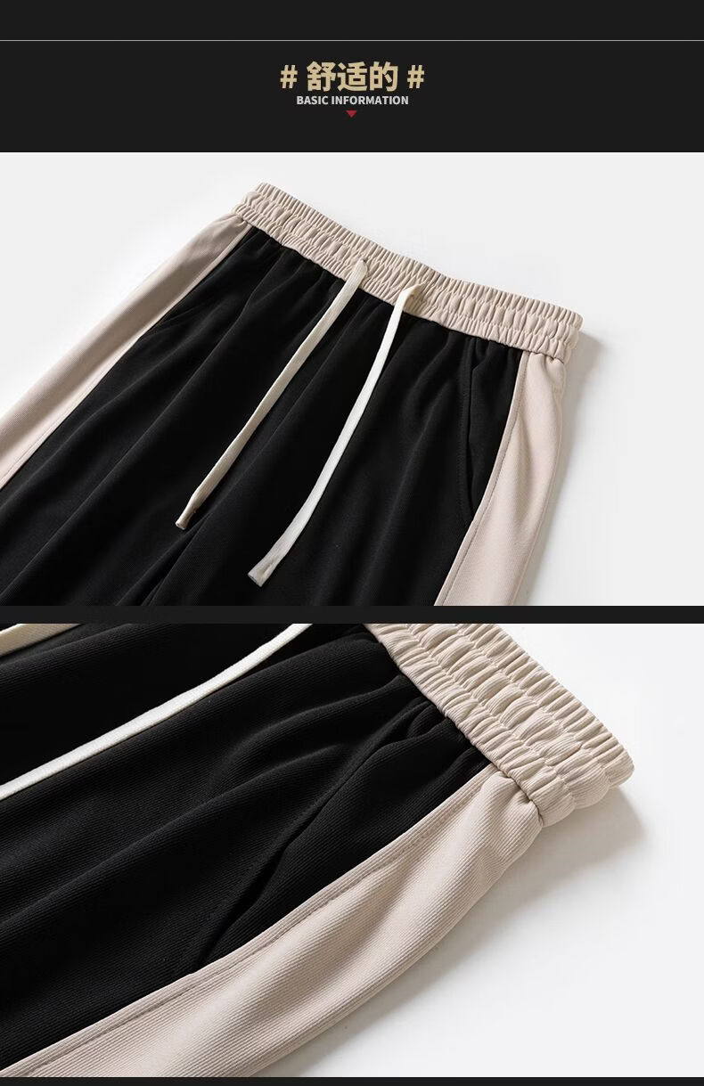 真维斯(Jeanswest)条纹显高休闲裤男士2026新款夏季宽松直筒运动舒适长裤子男 712杏色 M