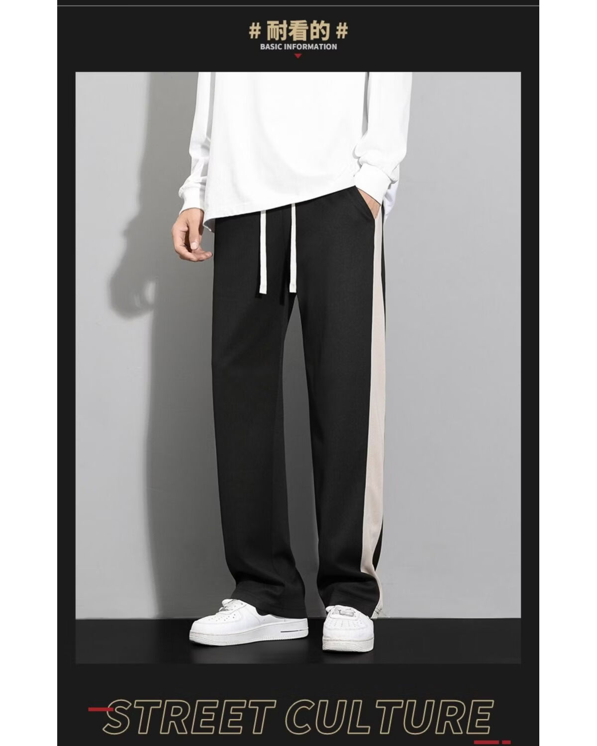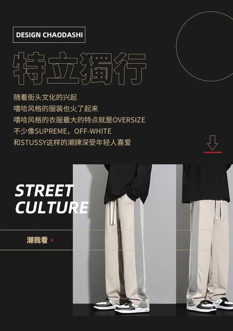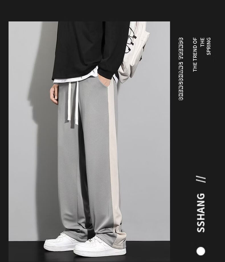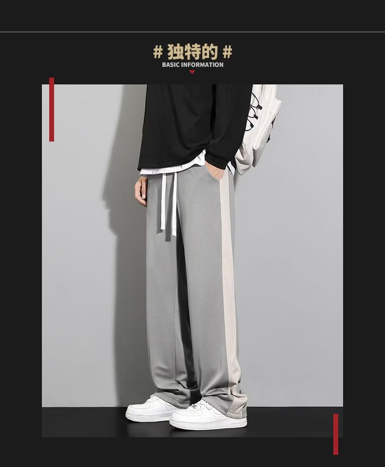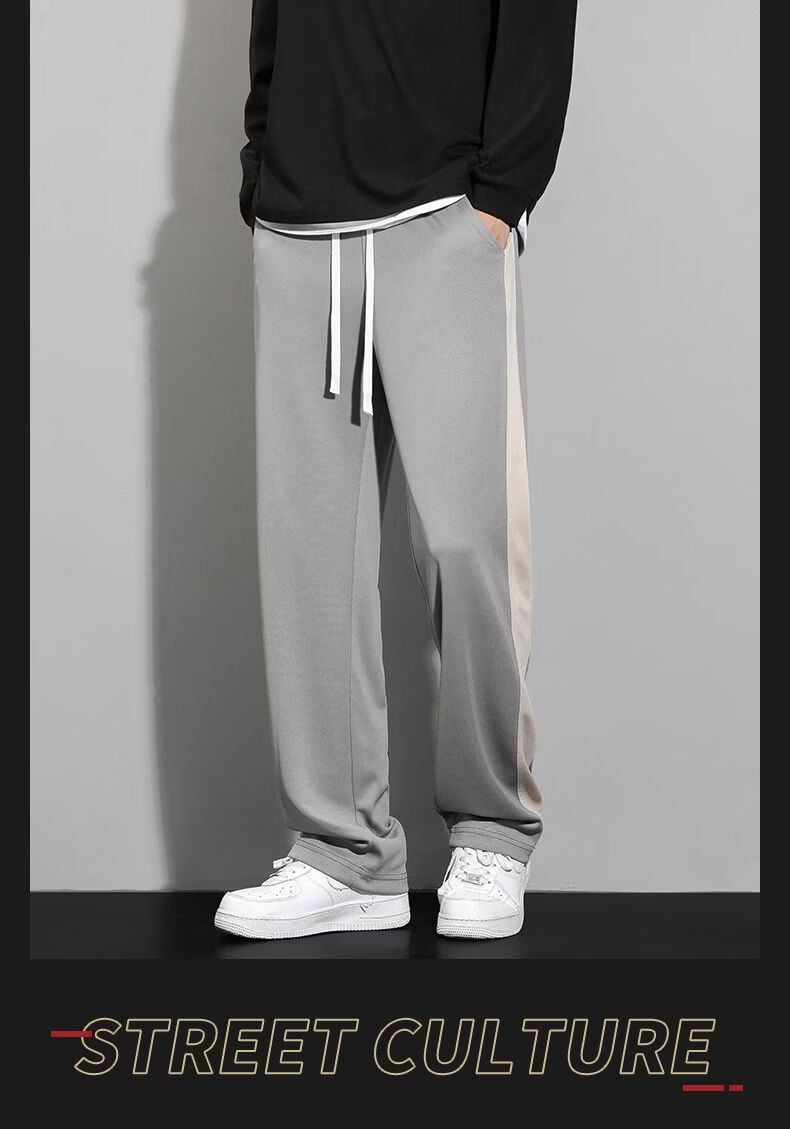 真维斯(Jeanswest)条纹显高休闲裤男士2026新款夏季宽松直筒运动舒适长裤子男 712杏色 M