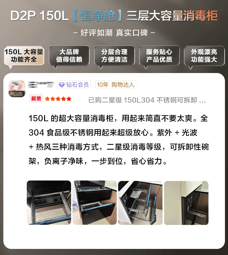 老板【顶配大容量】D2P消毒碗柜嵌入式150L不锈钢母婴奶瓶家用碗柜收纳烘干消毒一体三门三抽政府补贴