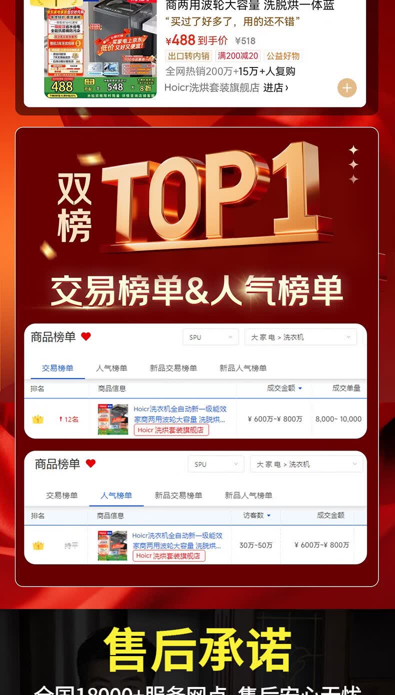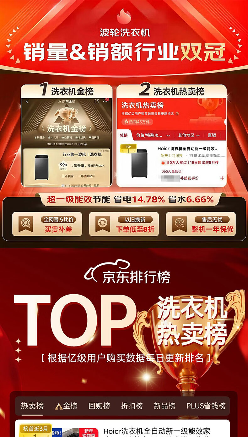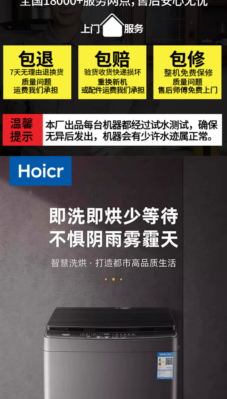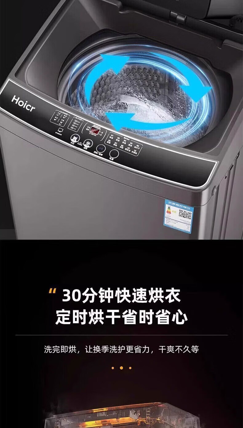 Hoicr海洗衣机全自动新一级能效家商两用波轮大容量 洗脱烘一体蓝光洗护防缠绕 12KG【升级节能+蓝光风干+强劲动力】 波轮