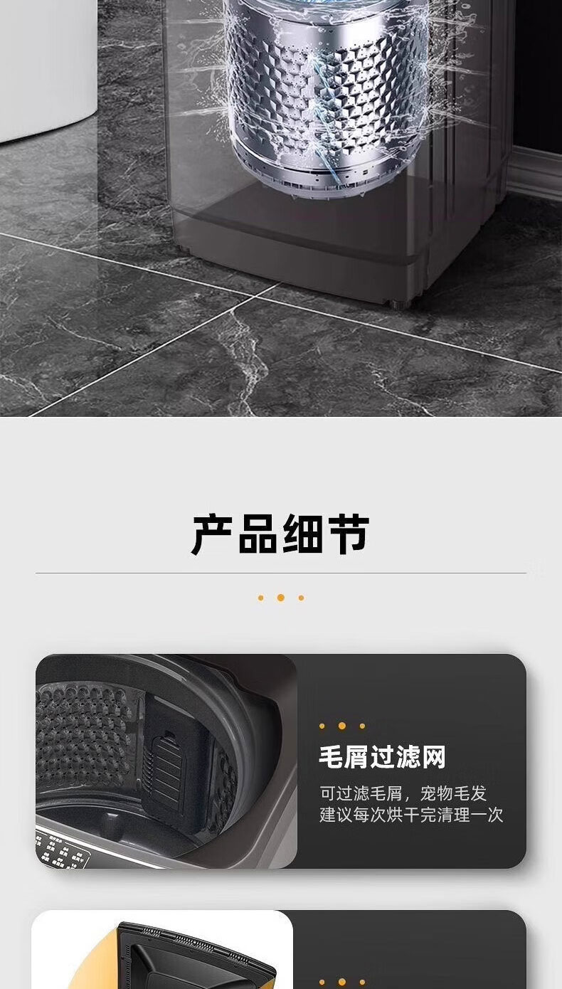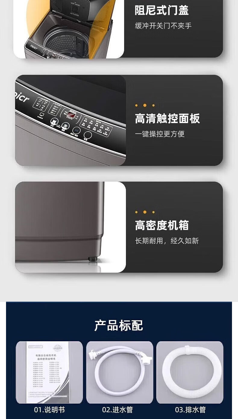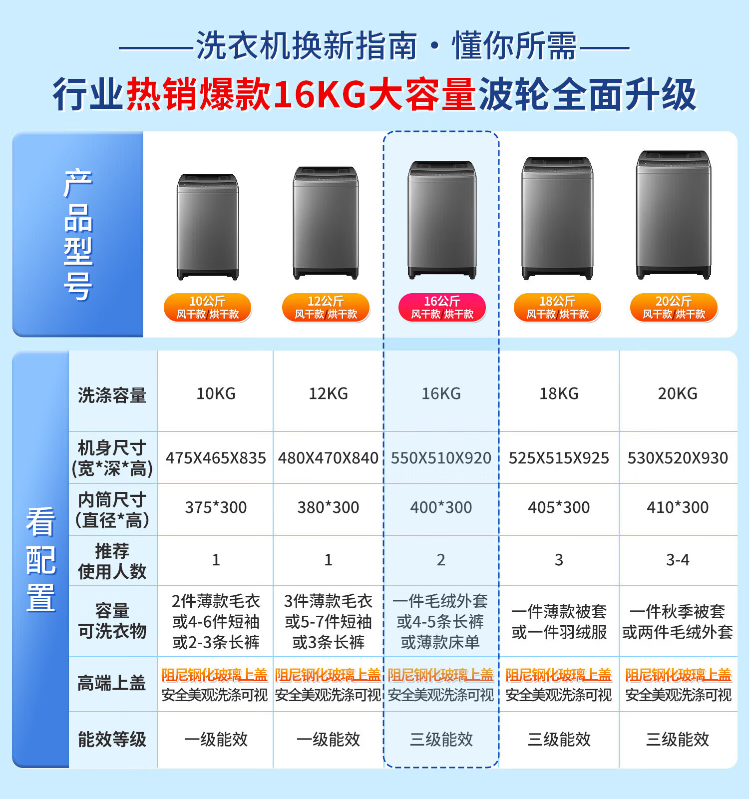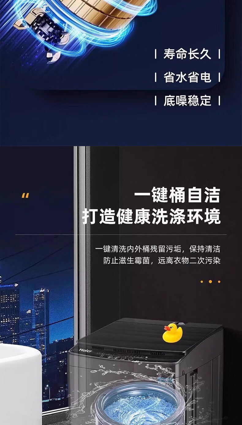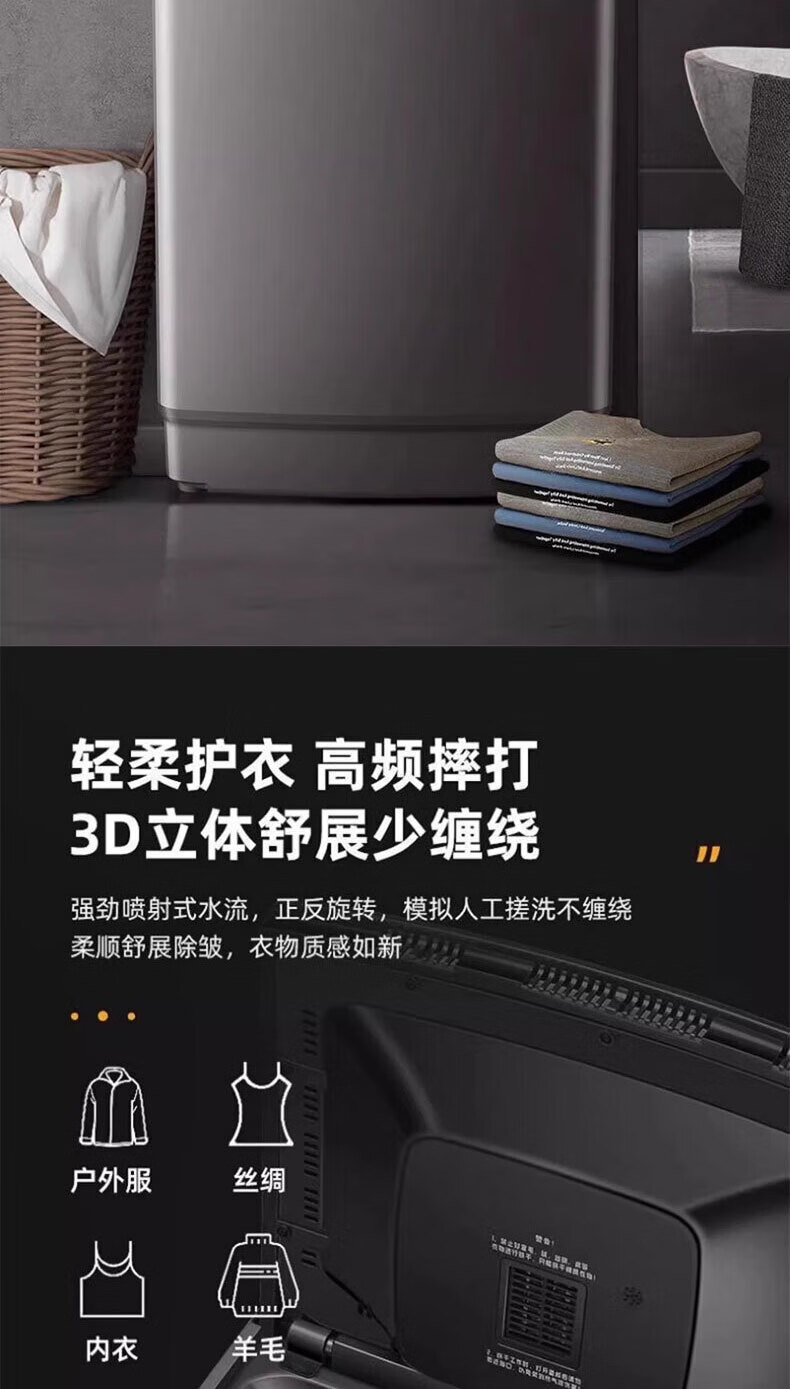 Heiai洗衣机全自动一级能效家商两用双蓝光波轮洗护防缠绕智能除菌洗脱烘一体机直排式大容量 16KG【双蓝光风干+旋涡风暴洗+防缠绕内桶】 波轮