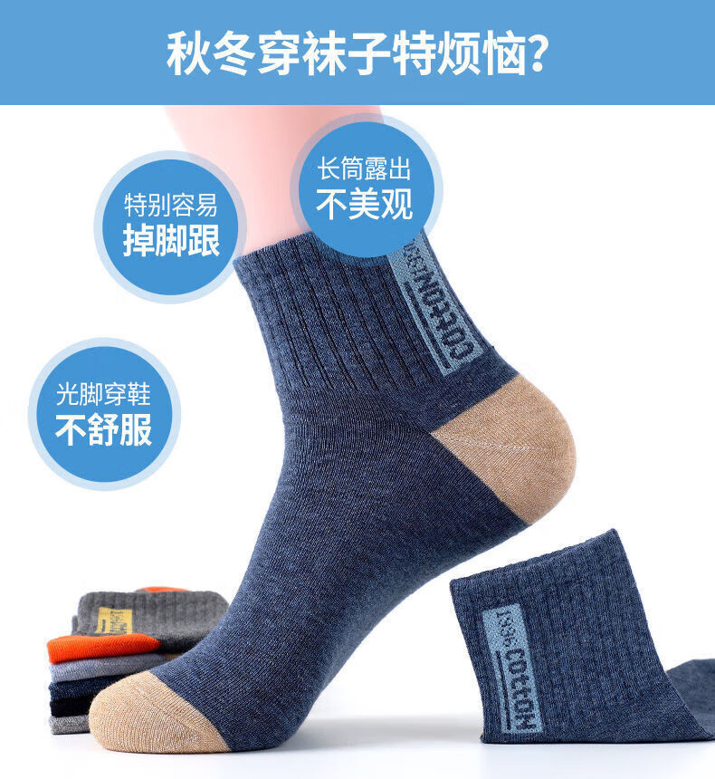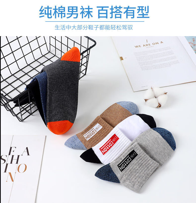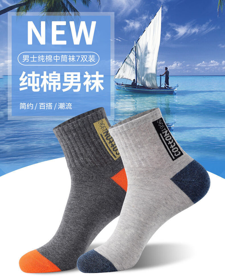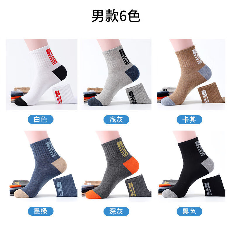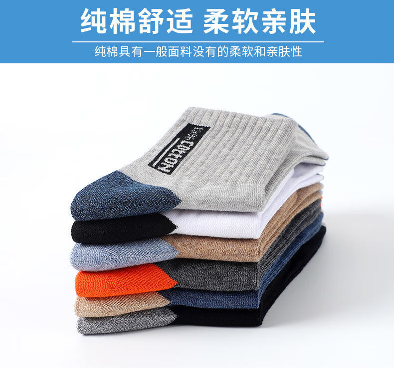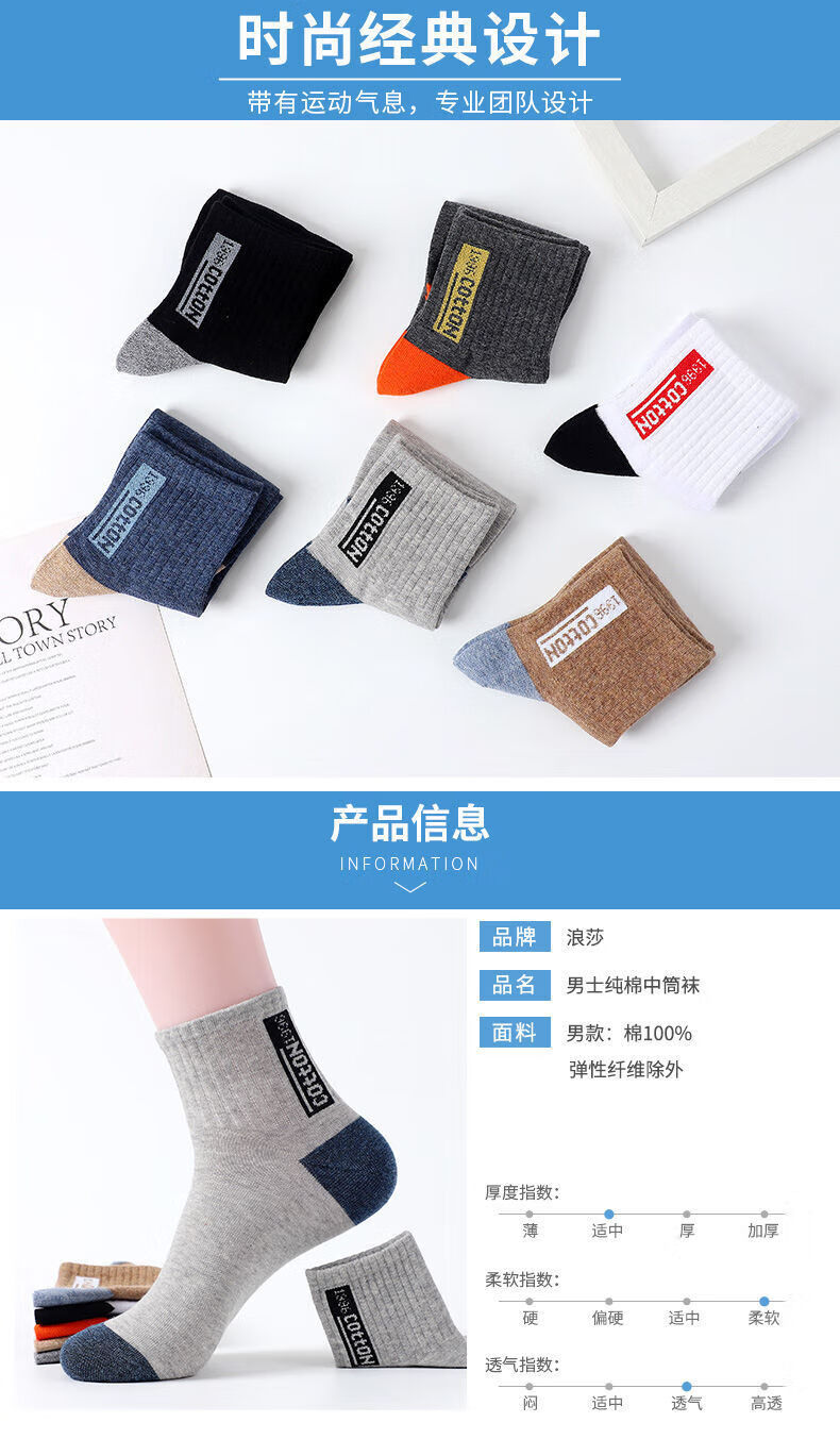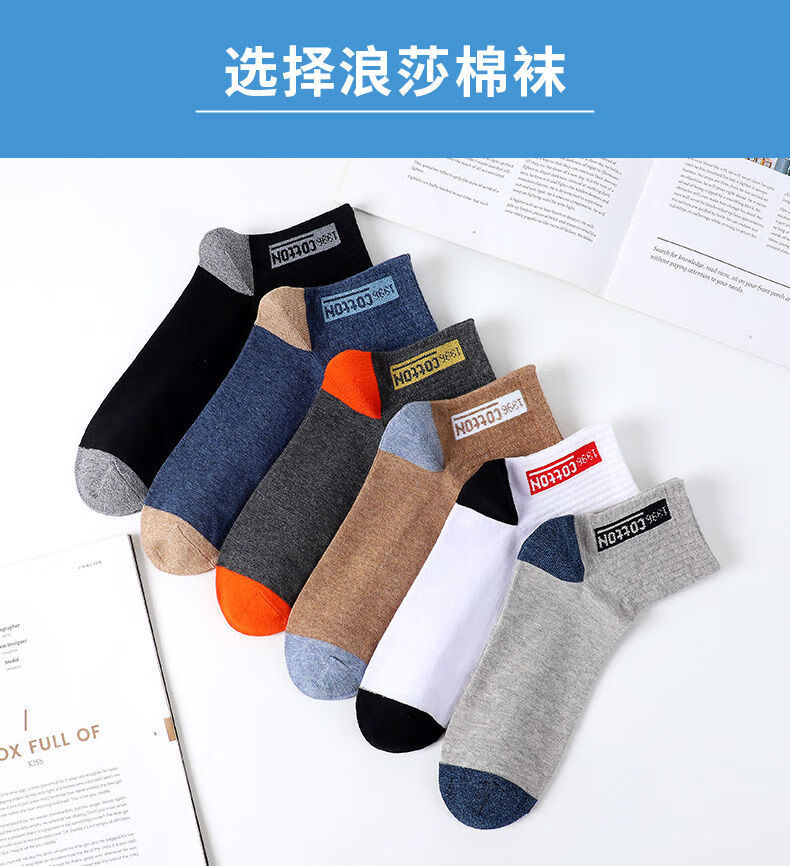 浪莎袜子男100%纯棉夏季男士袜子吸汗透气抗菌中筒棉袜防臭抗起球男袜 混色7双装(抗菌防臭纯棉男袜) 均码