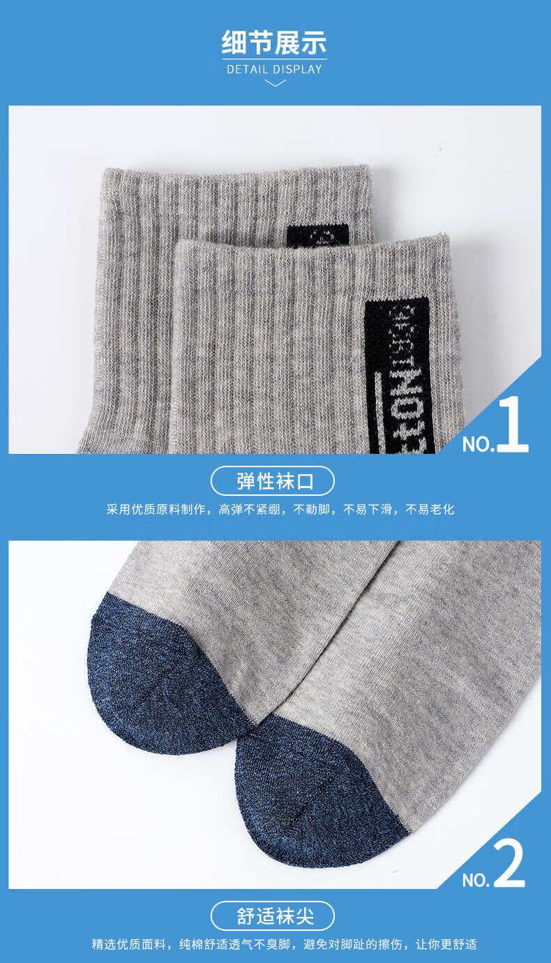 加大码老年人男女松口袜子秋冬厚中筒100%棉宽松口月子袜不勒腿9 男灰色40-46码 5双 均码 薄棉 加肥纯棉松口
