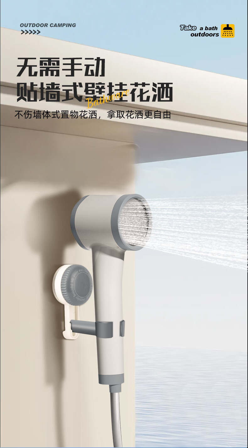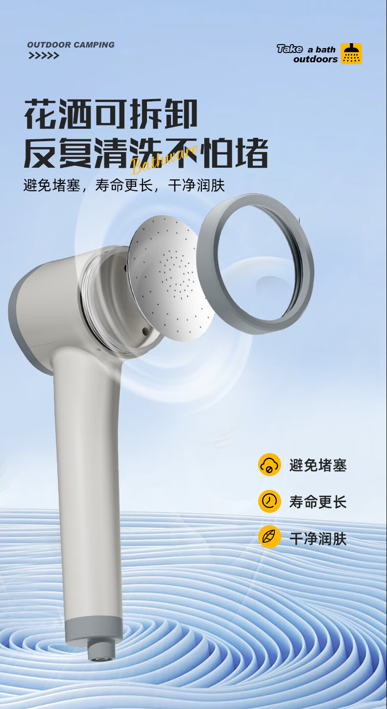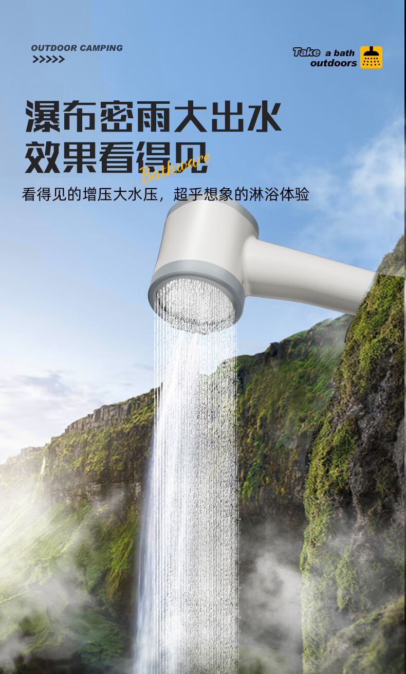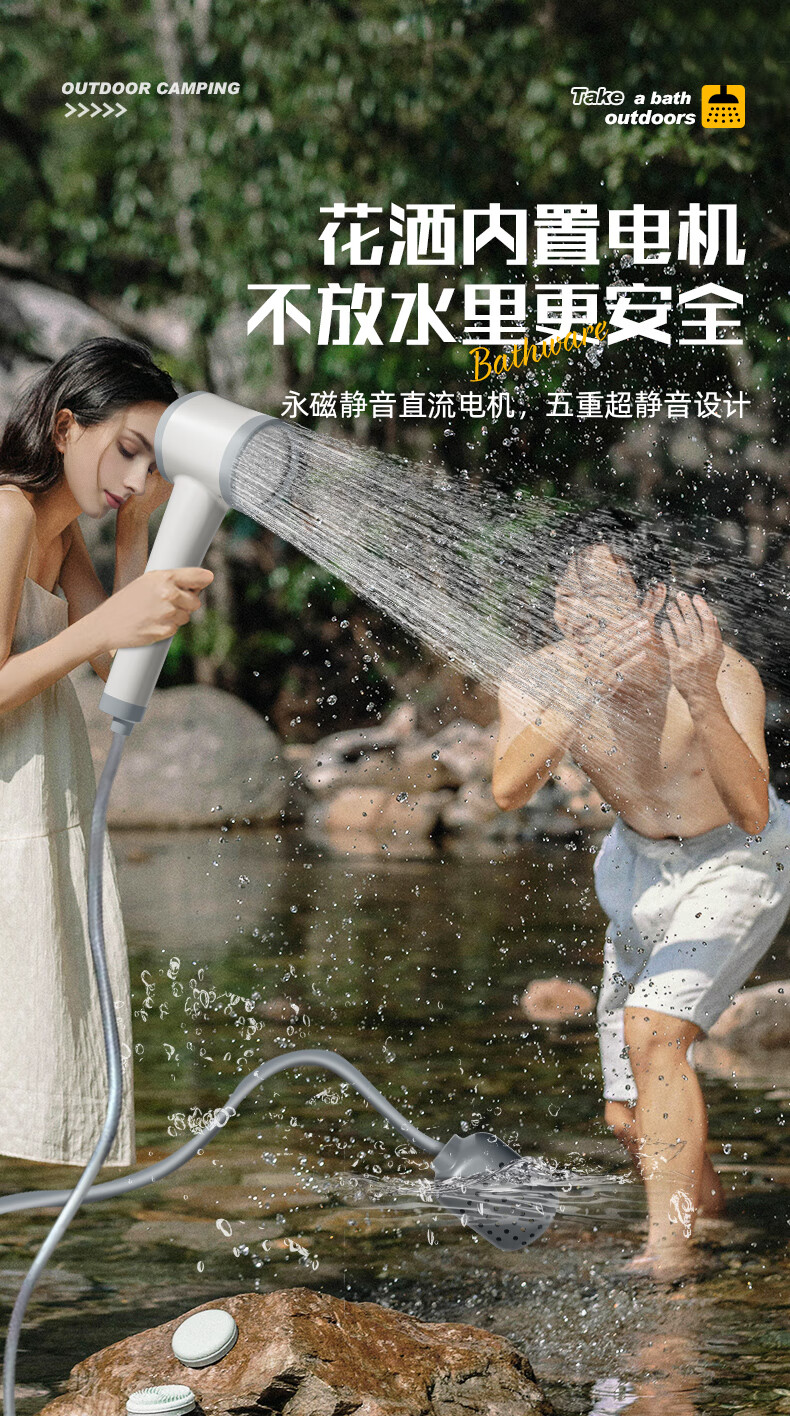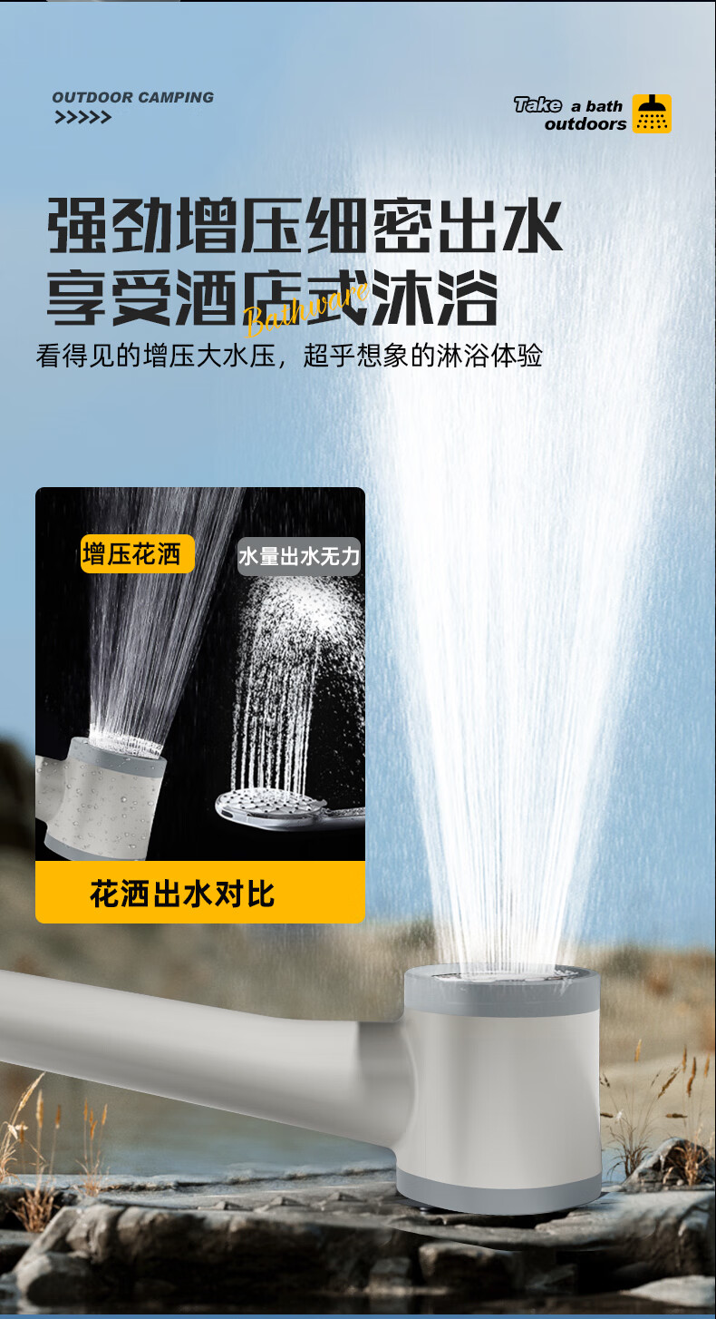 便携式智能充电一体花洒户外移动洗澡神器简易学生宿舍增压淋浴器 免安装户外花洒/测温/超长续航 2000毫安/水电分离-3.7V安全电压