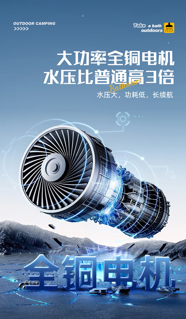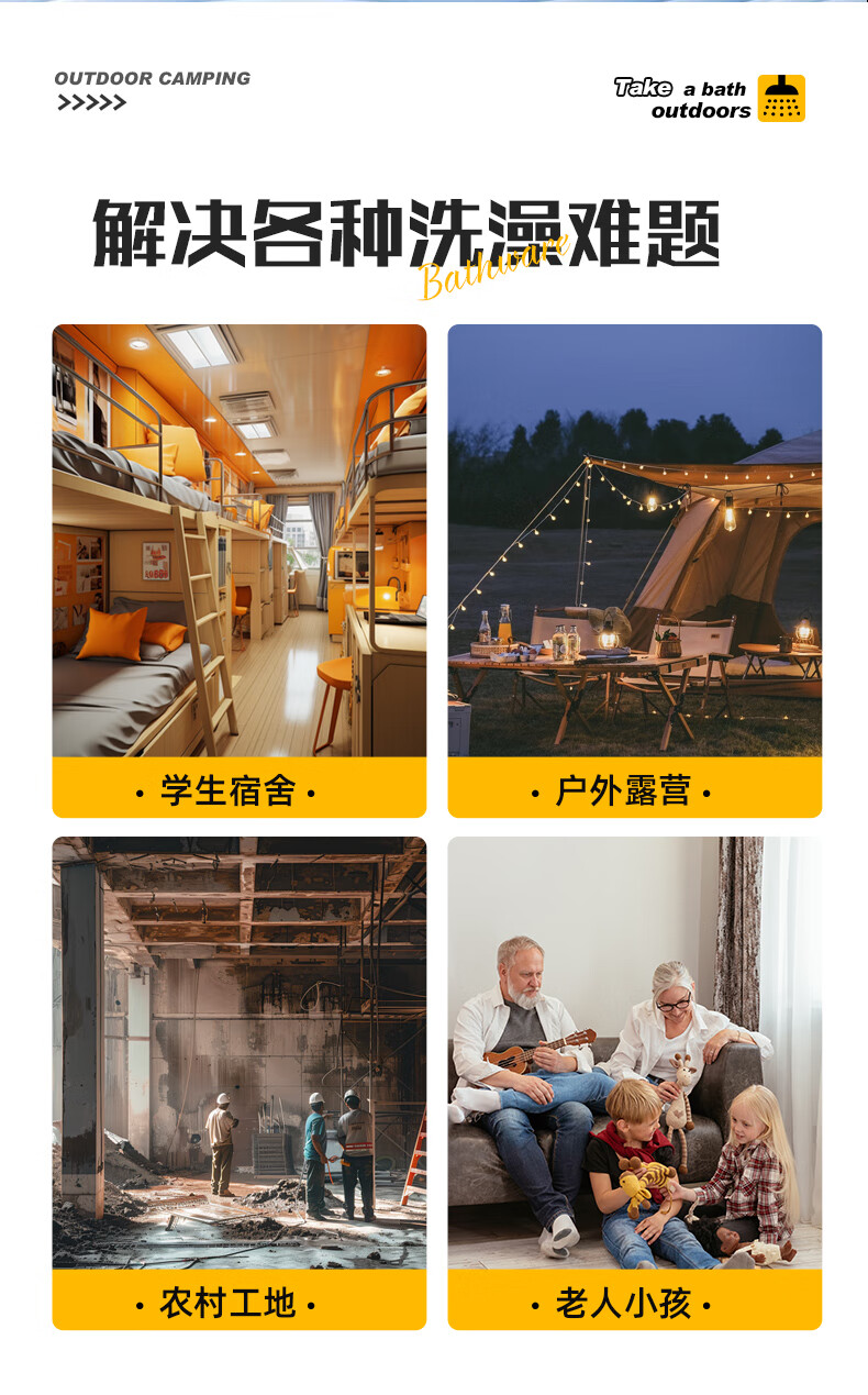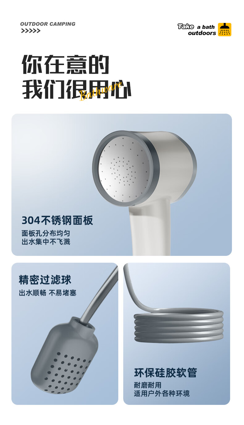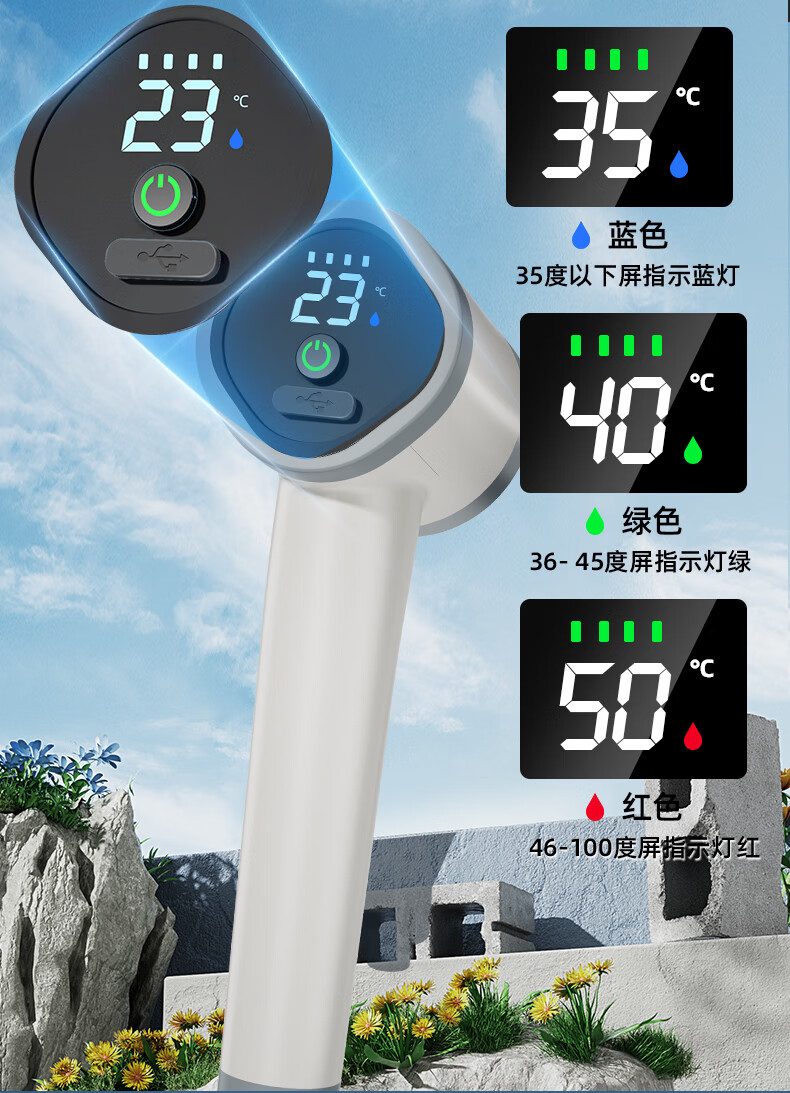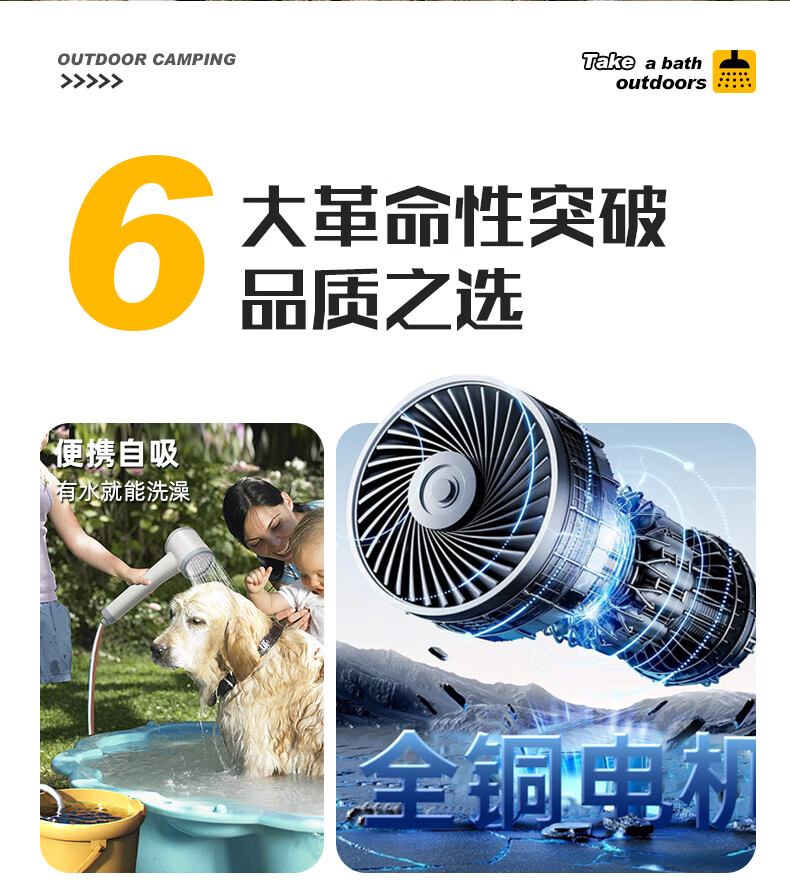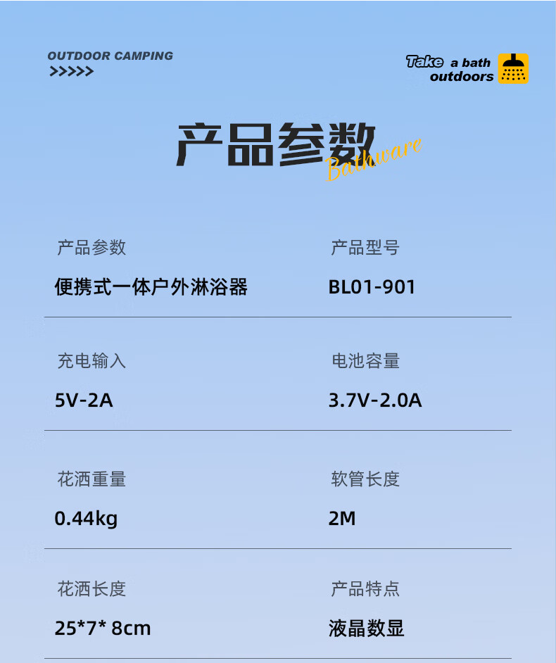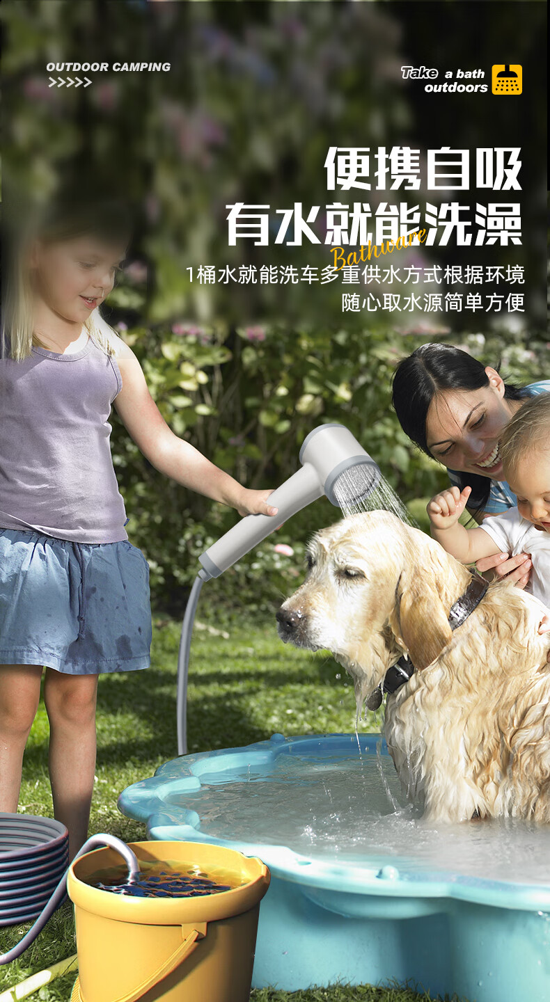 便携式智能充电一体花洒户外移动洗澡神器简易学生宿舍增压淋浴器 免安装户外花洒/测温/超长续航 2000毫安/水电分离-3.7V安全电压