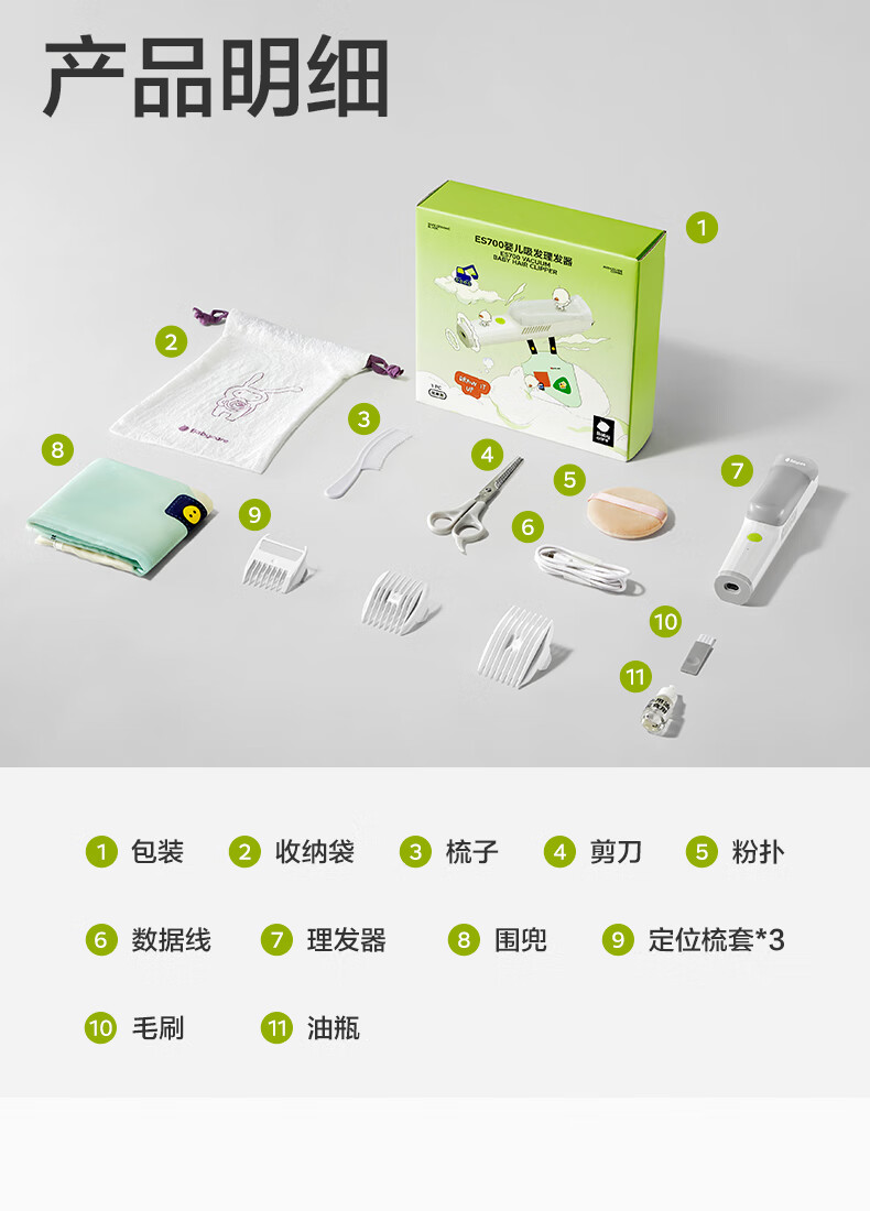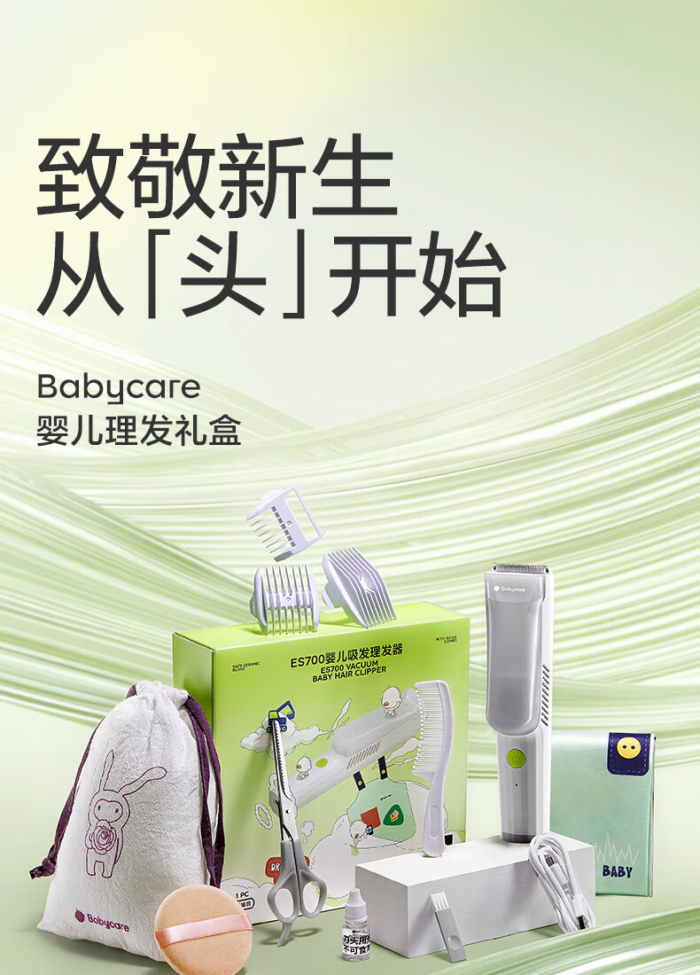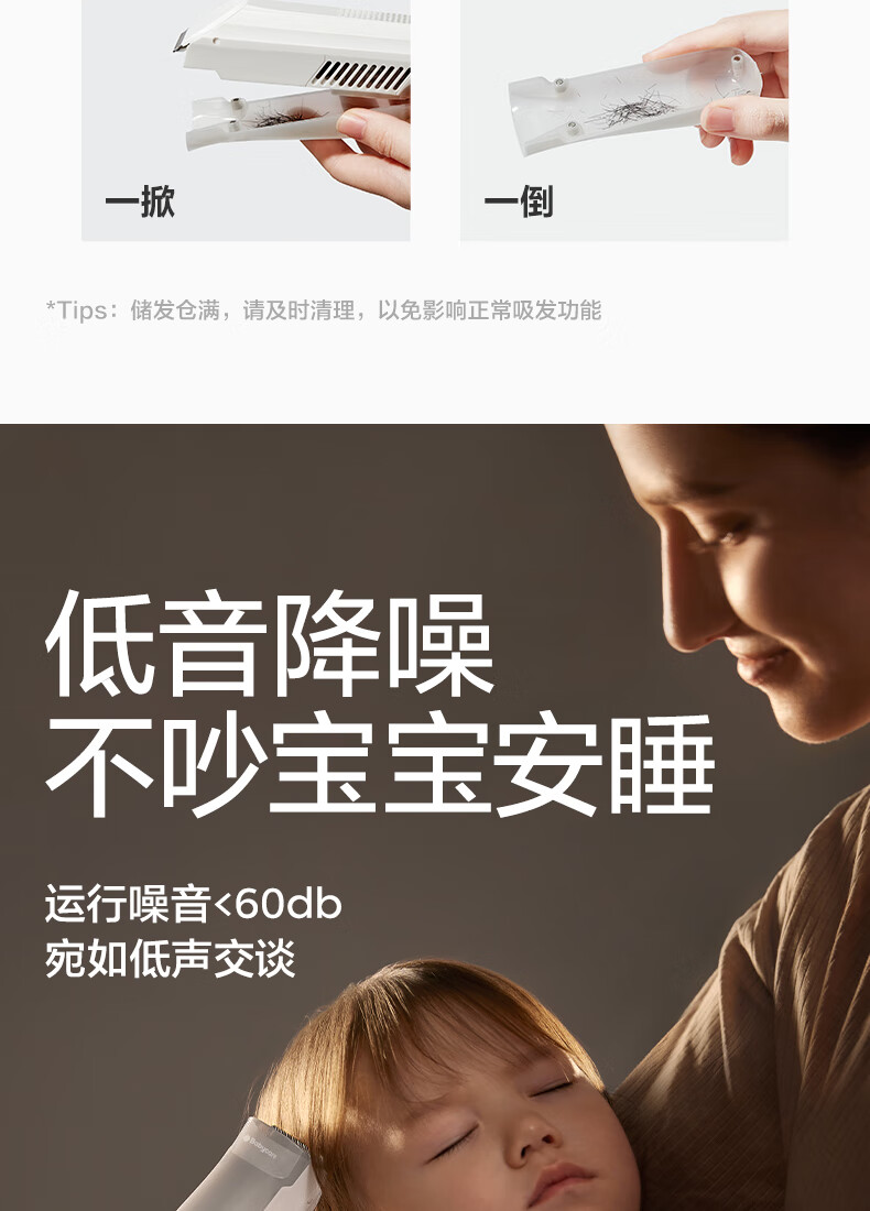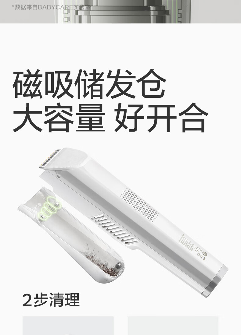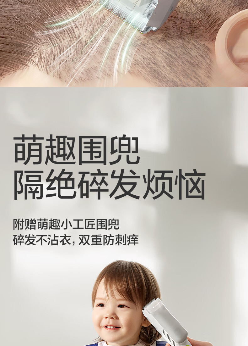 babycare婴儿理发器整机防水低音升级自动吸发剃头儿童专用0-3岁 原点白