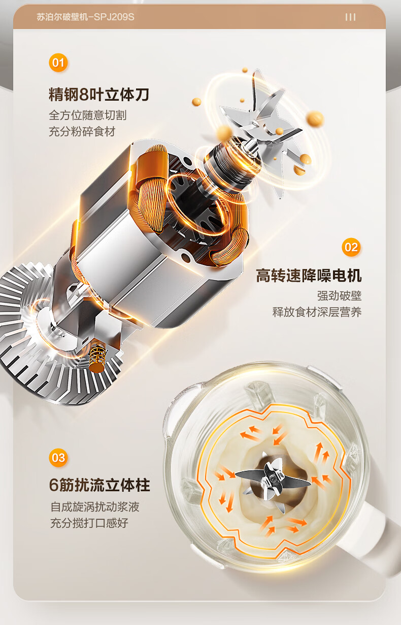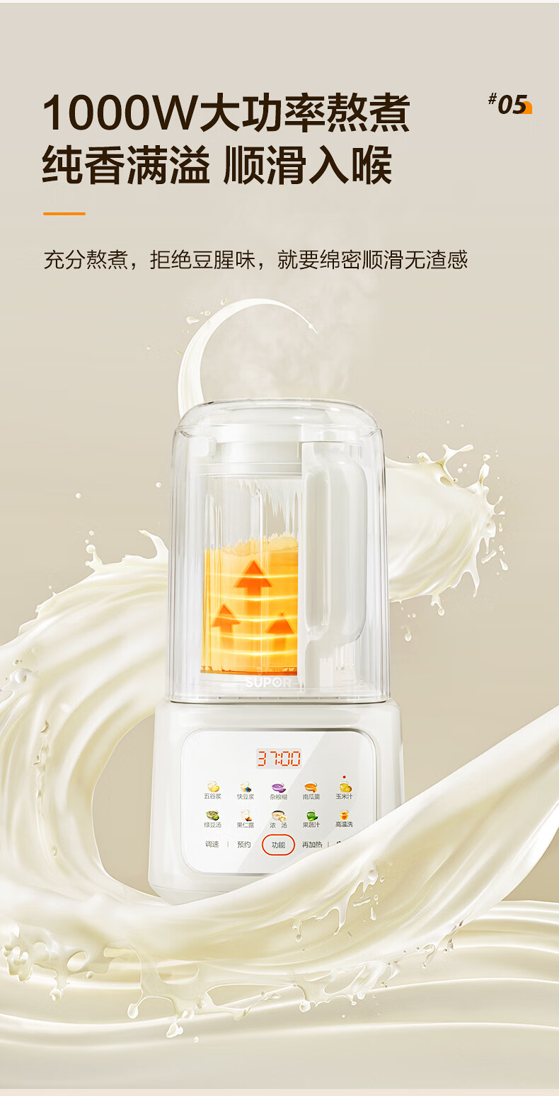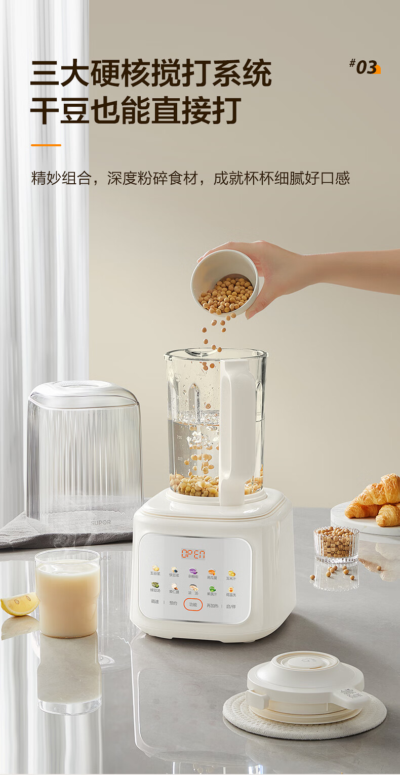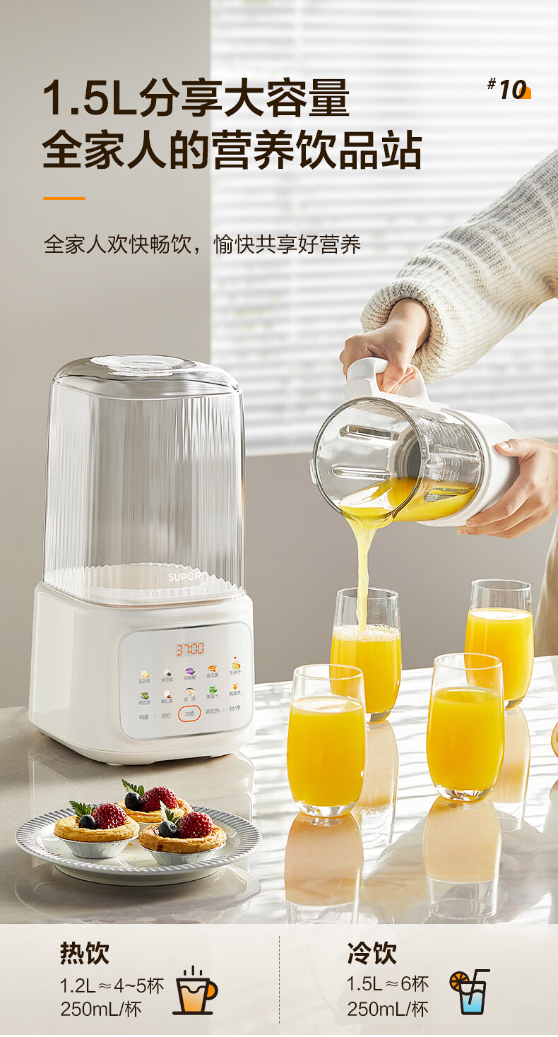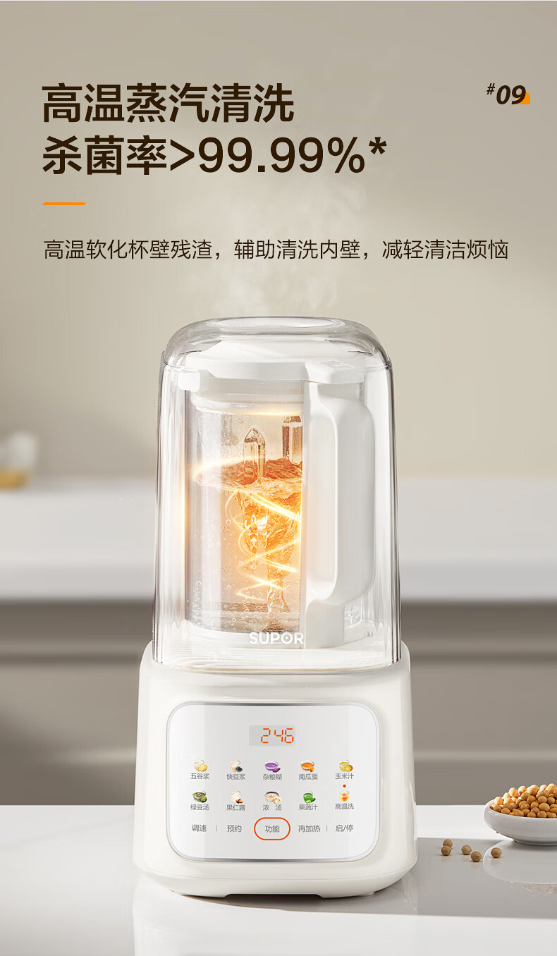 苏泊尔(SUPOR)轻音破壁机 1.5L低音有罩降噪家用豆浆机 预约加热免滤全自动辅食料理机 破冰碎冰榨汁机 SPJ209S