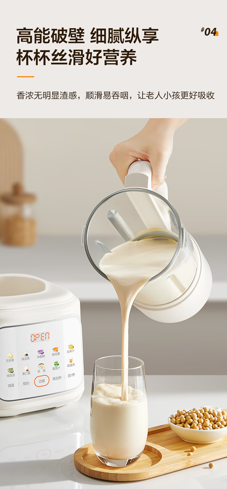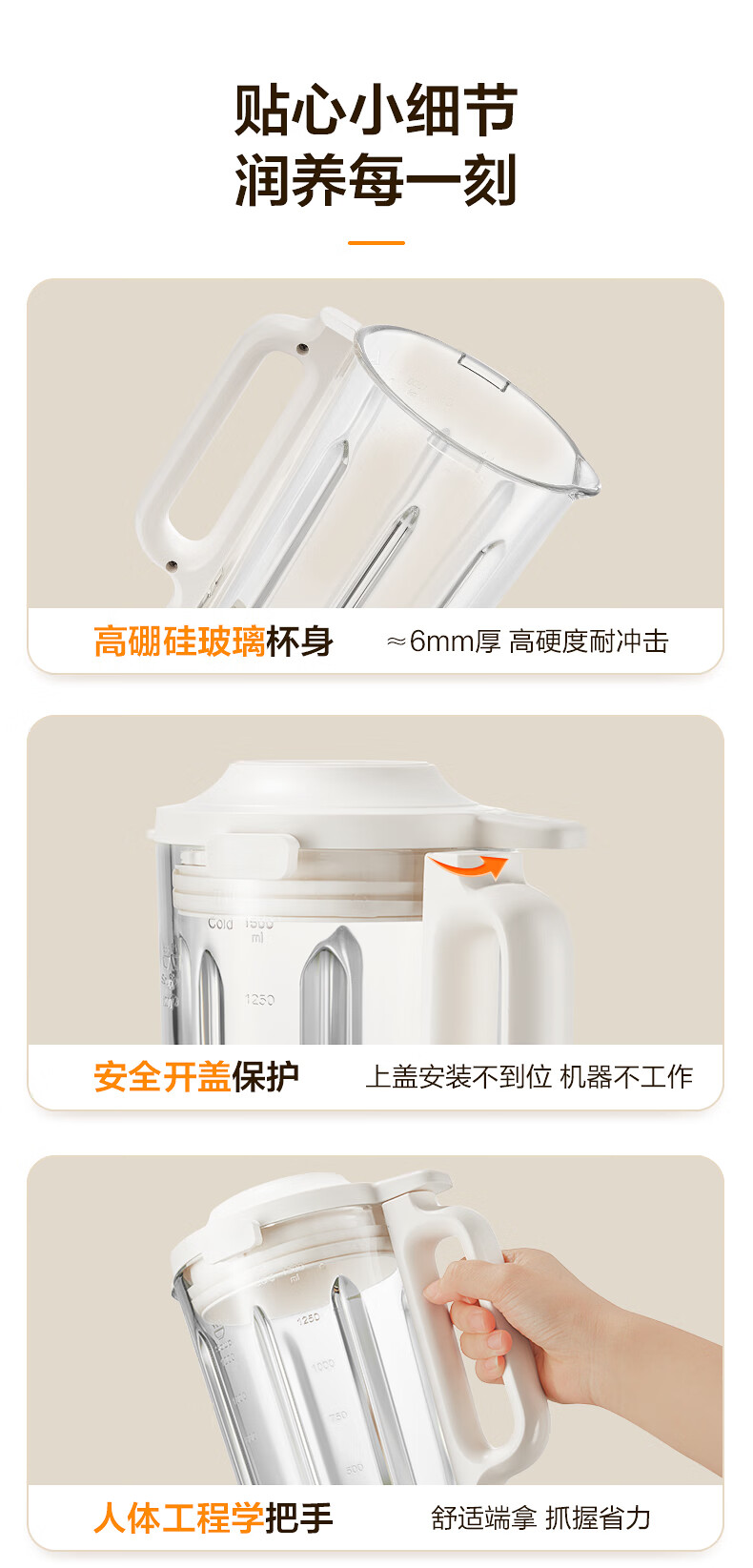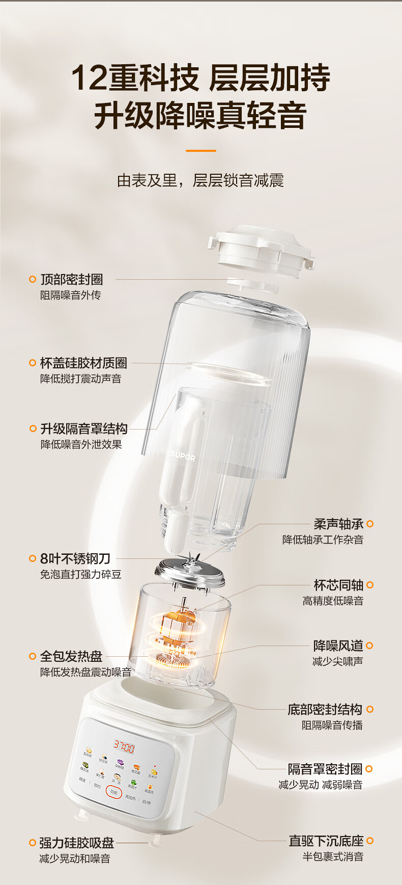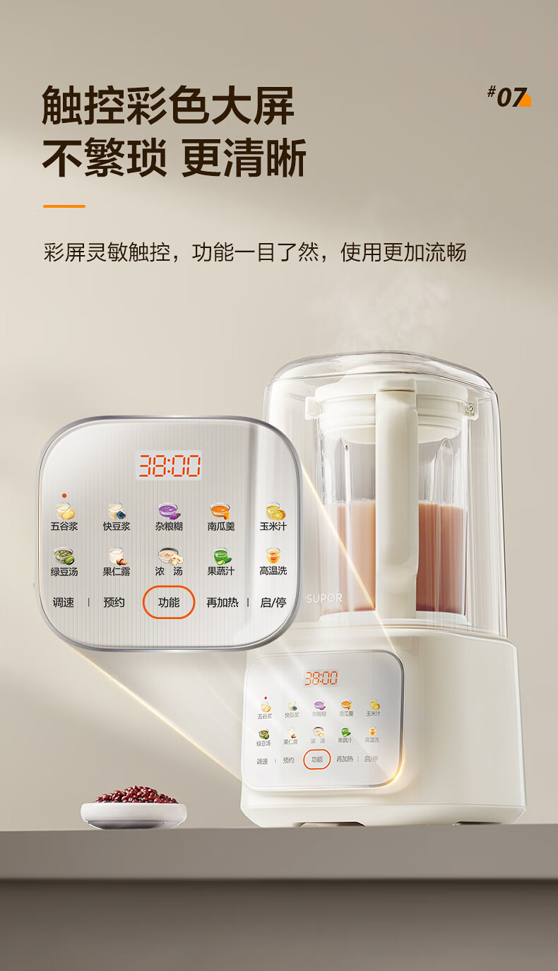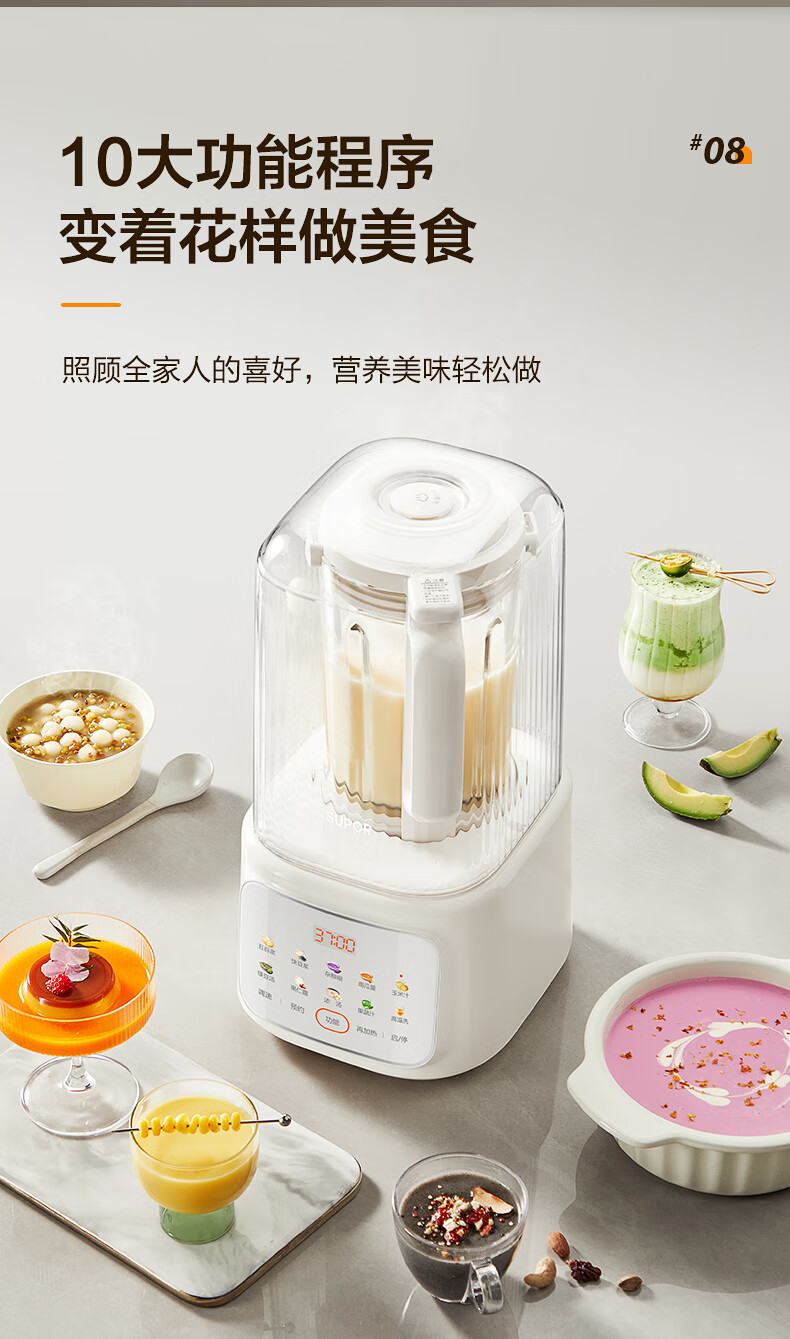 苏泊尔(SUPOR)轻音破壁机 1.5L低音有罩降噪家用豆浆机 预约加热免滤全自动辅食料理机 破冰碎冰榨汁机 SPJ209S