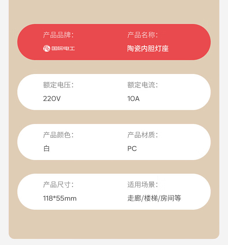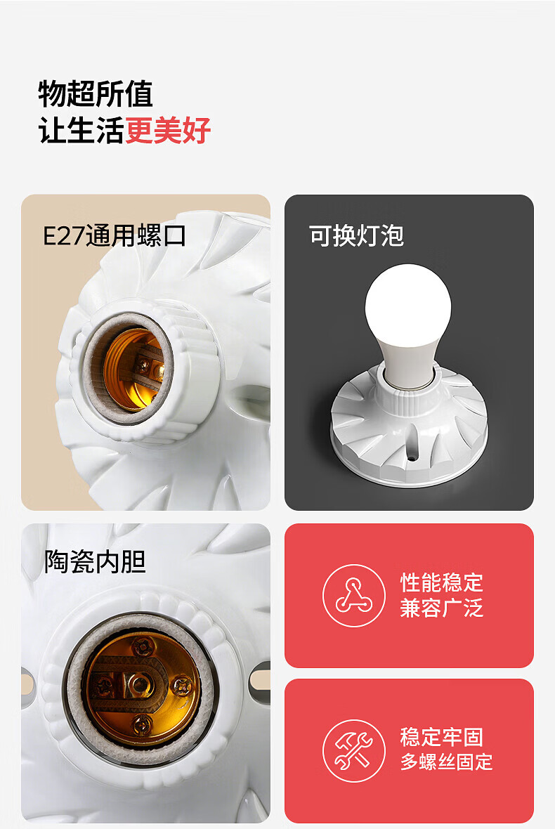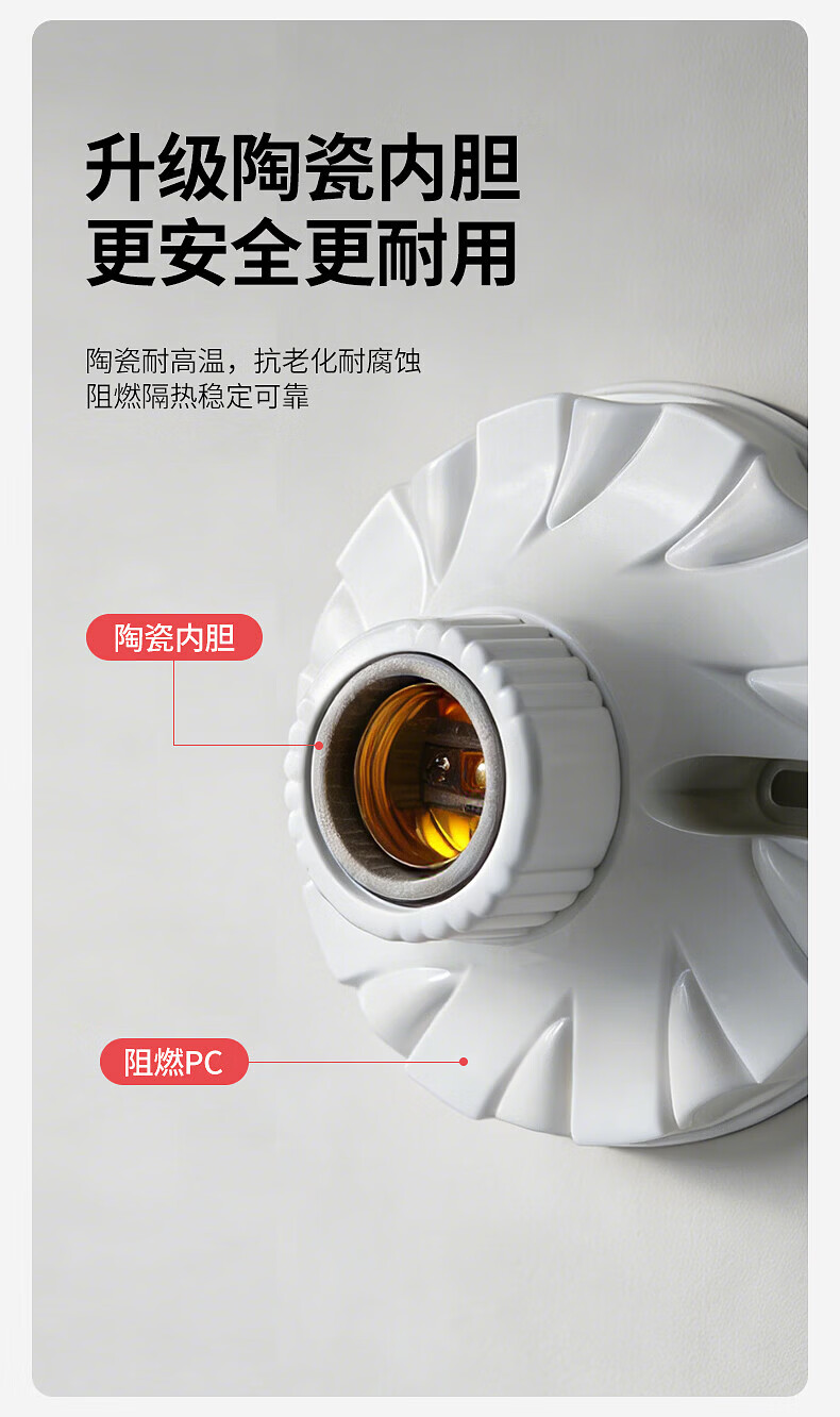 国际电工(FDD)灯头灯座家用E27螺口通用型明装LED节能灯泡明线陶瓷内胆灯座 (陶瓷内胆)方形灯座 1只装