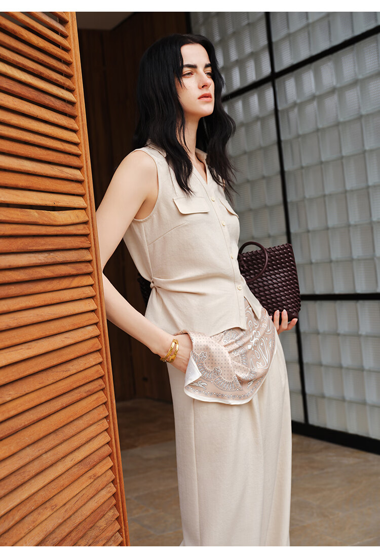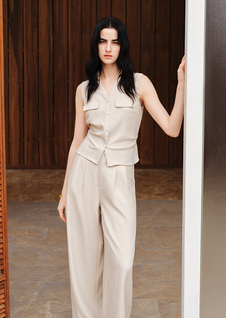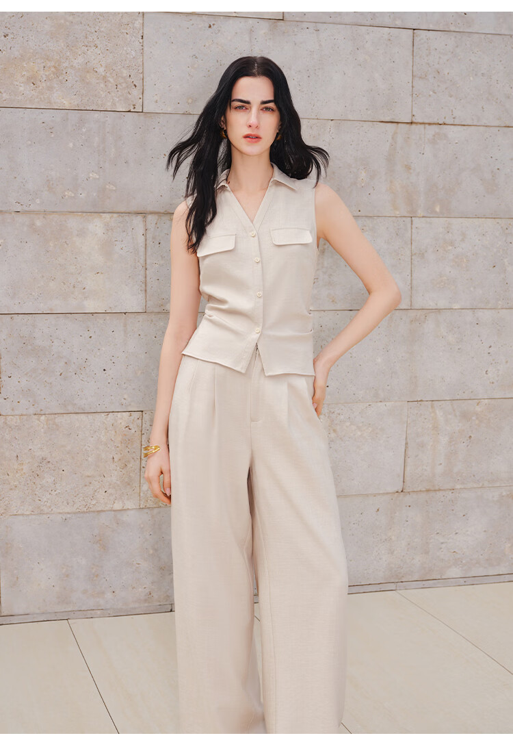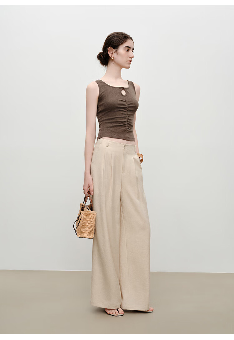 晚白【新品】2026年春款时尚纯色上衣亲肤透气宽松休闲背心女 浅杏色 S