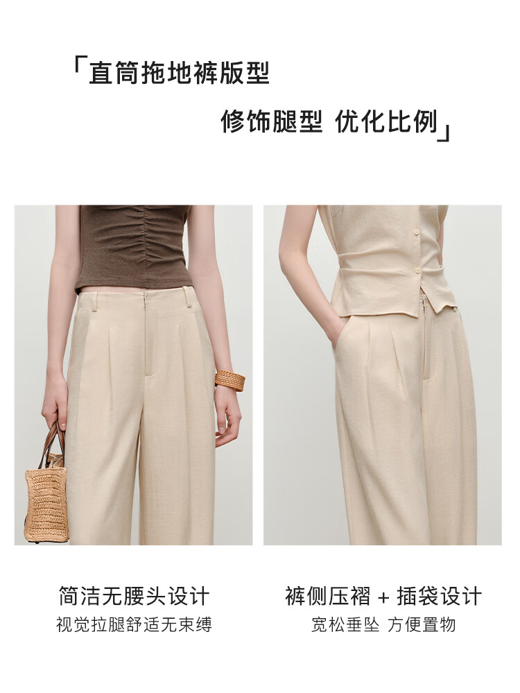 自巧小个子高腰遮胯显瘦直筒休闲裤女2026夏季新品拖地裤子 雅白色休闲裤 S (尺码:3)