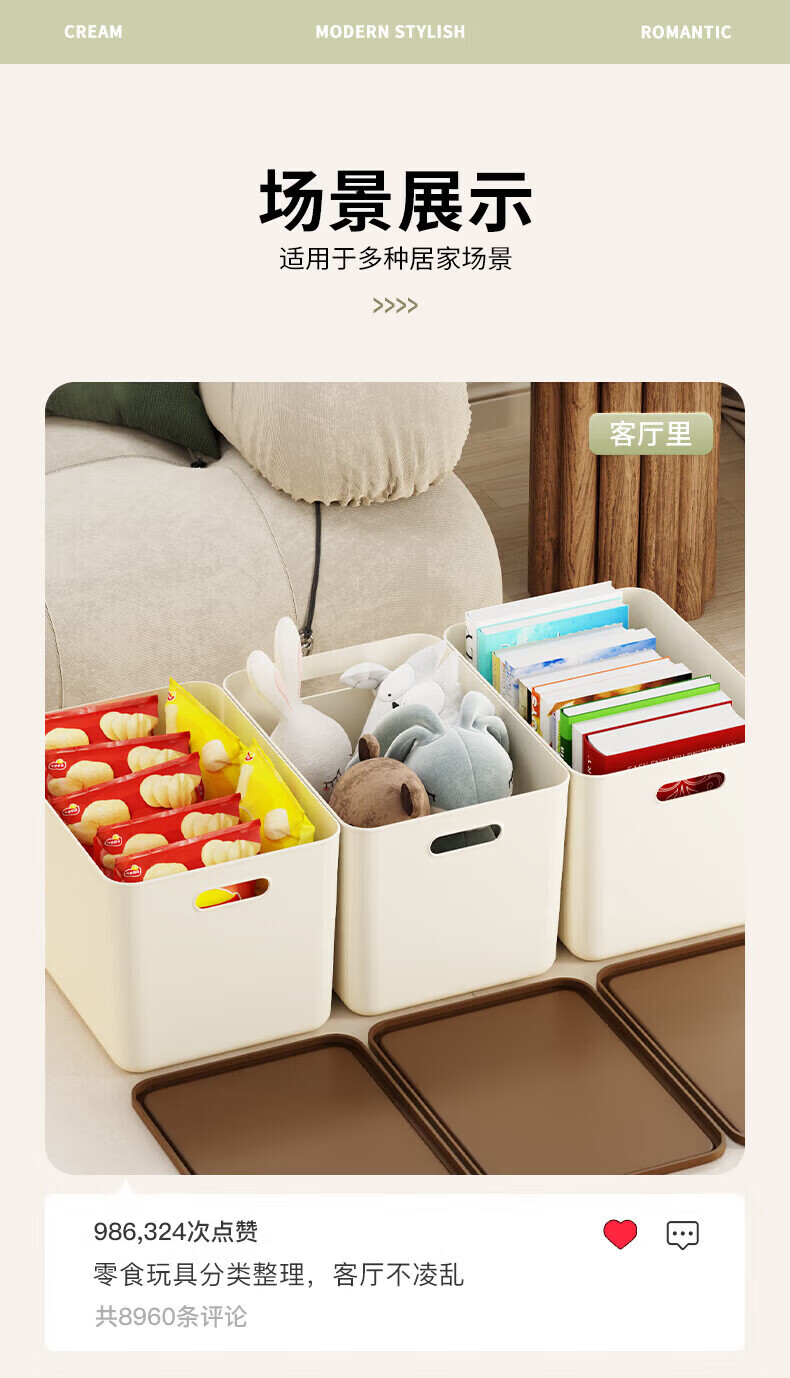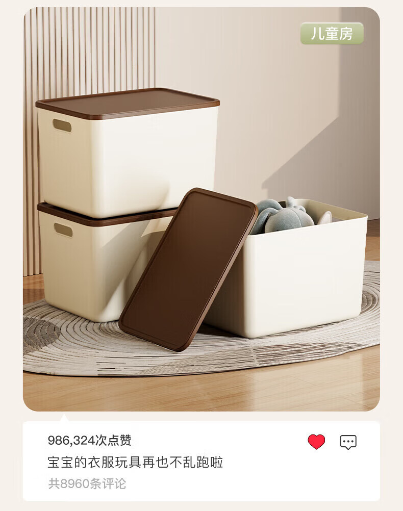 茶花收纳盒桌面小盒子收纳格置物防尘储物盒家用 1个装【6L】衣柜/桌面收纳盒