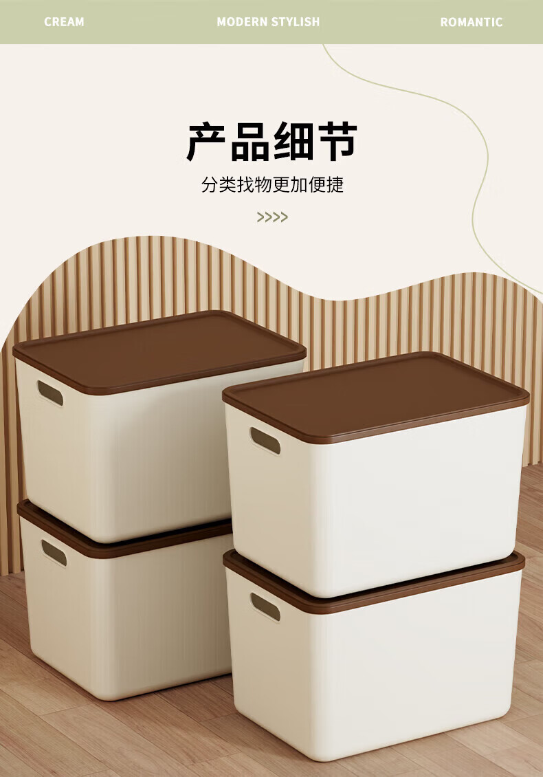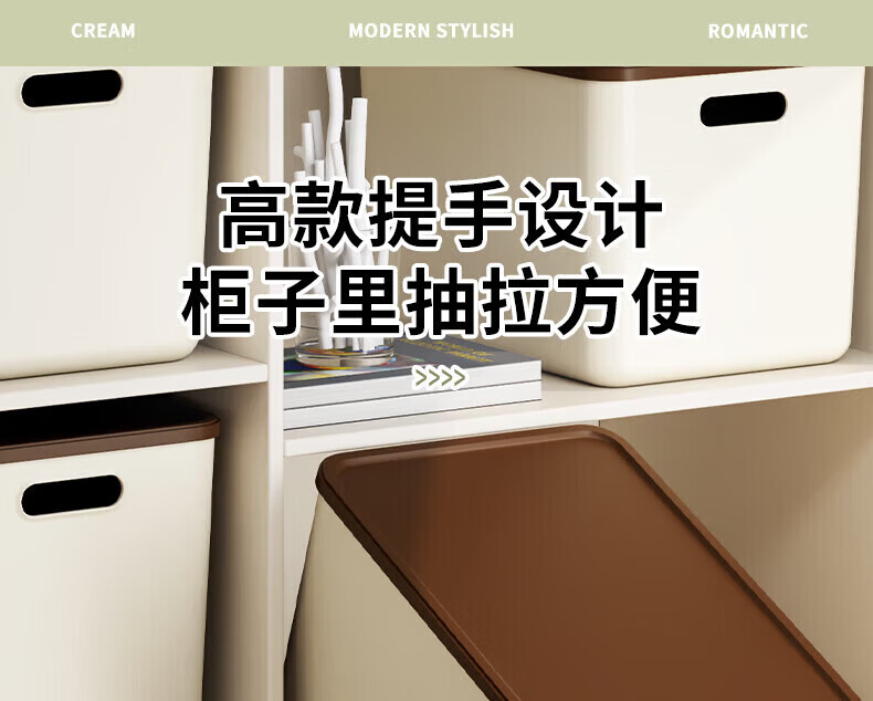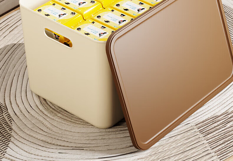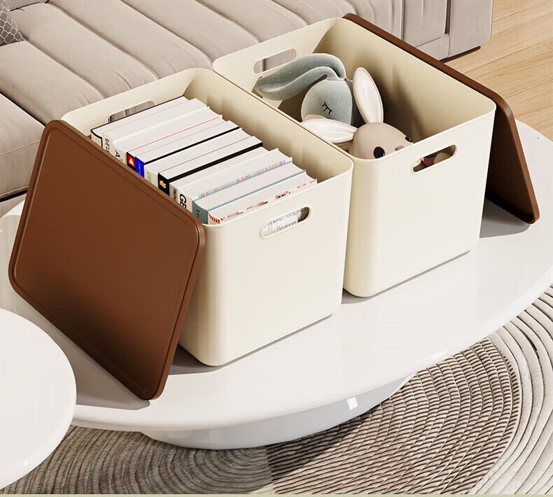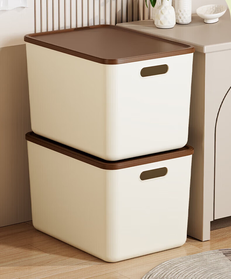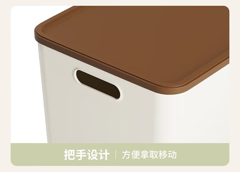 稻草熊(DOCOXO)家用塑料收纳箱带盖简约桌面储物篮透明整理置物筐化妆品洗漱用品 咖啡色带盖【4个装含狗头贴】