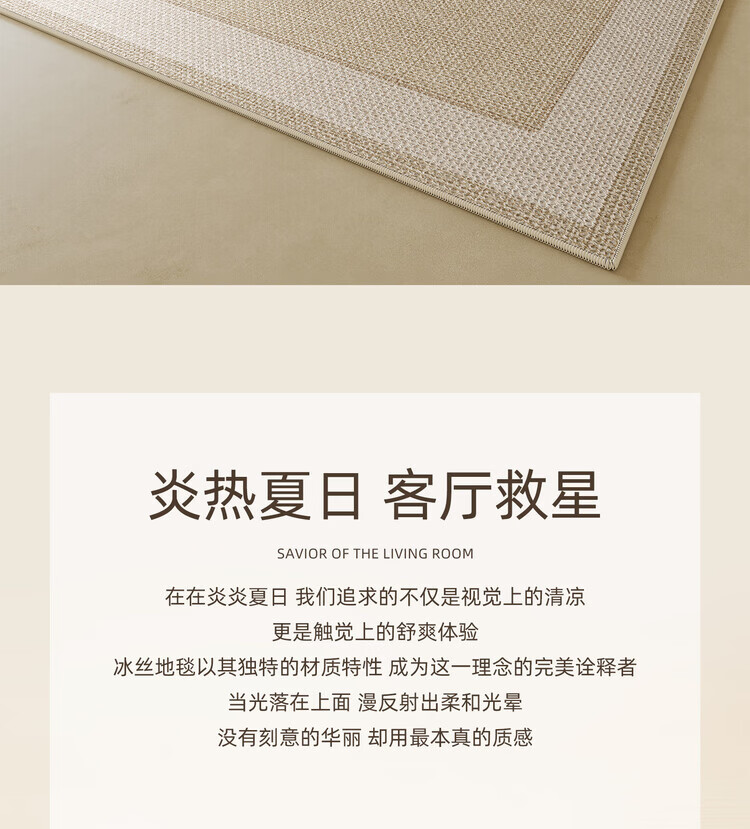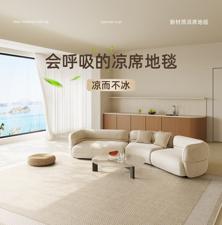 像素客厅地毯2026新款凉席地垫夏季冰丝轻奢高级感房间榻榻米免洗可擦 宜沐-15780 150*200【设计师原创设计】